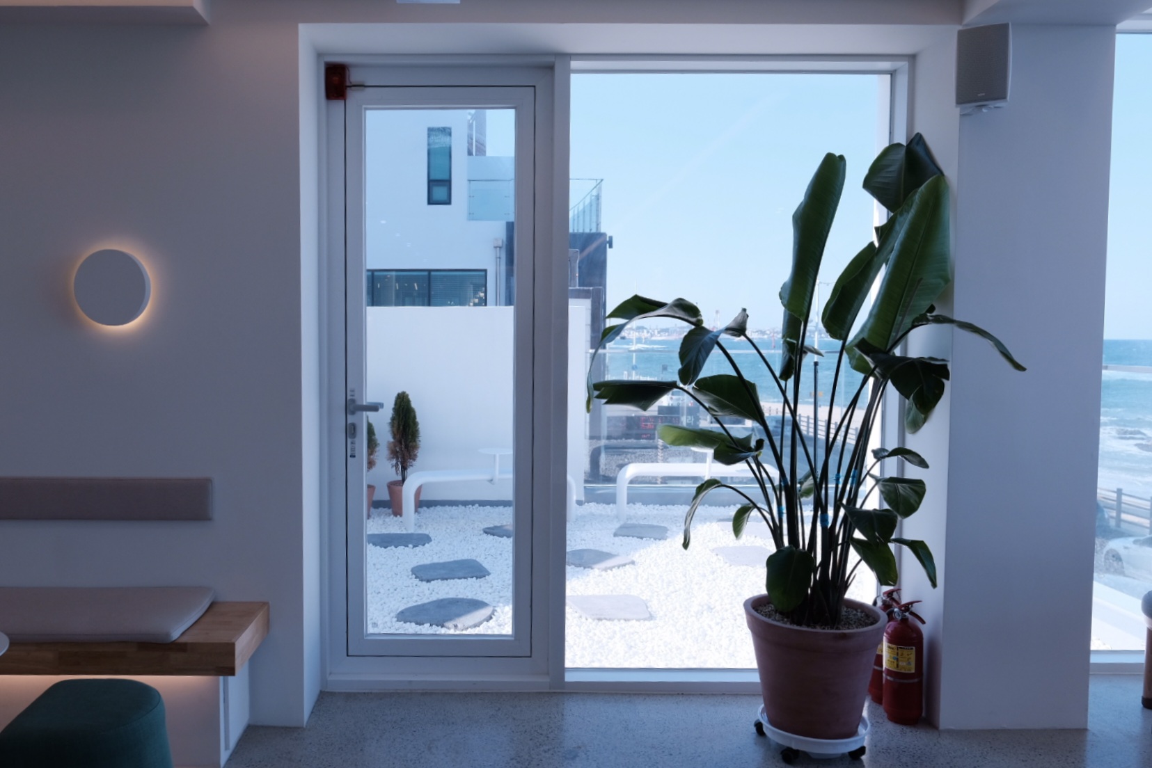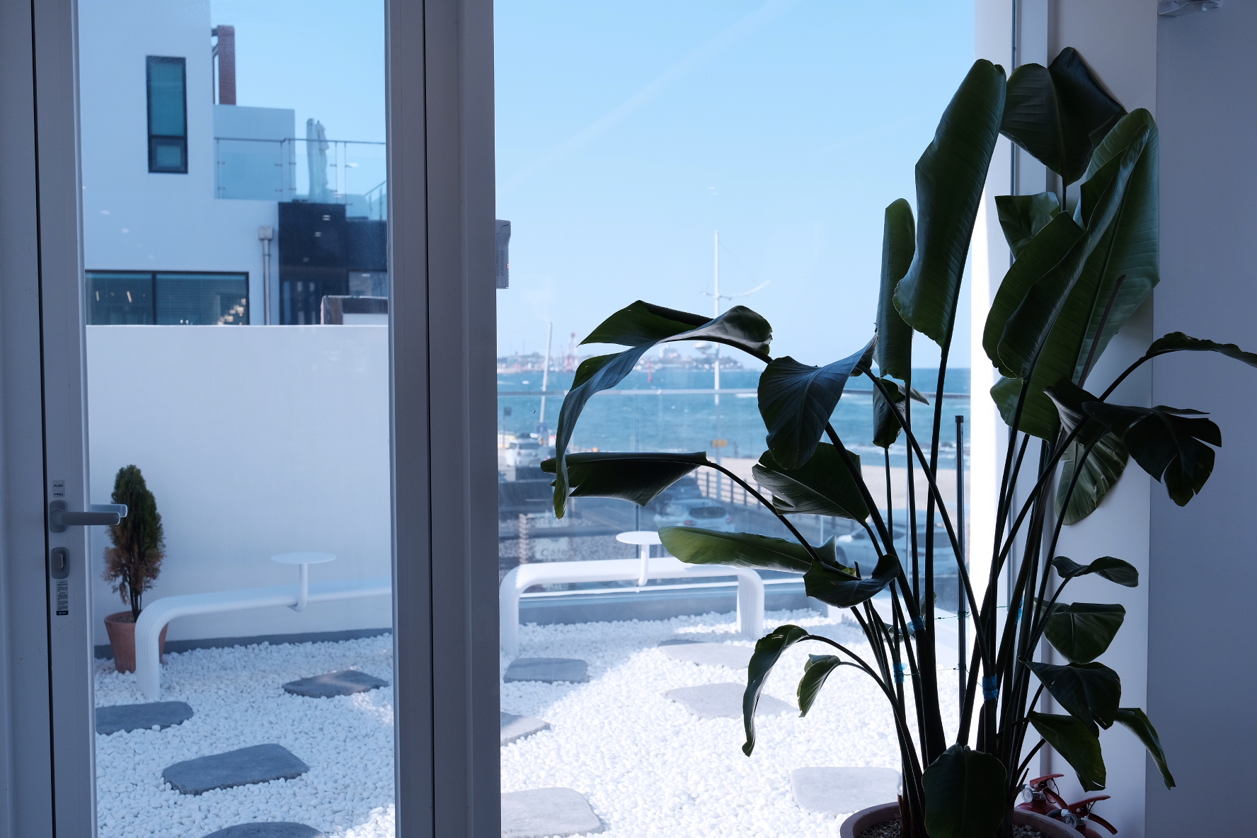 2층에 올라가 문을 여는 순간 딱! 눈 앞에 시원하게 펼쳐진 바다를 보는 순간 탄성이 절로 나왔습니다. 사실 해안을 따라 걸으면서도 볼 수 있는 바다인데, 왜 오션뷰를 보면 본능적으로 감탄하게 되는지 신기하긴 합니다.