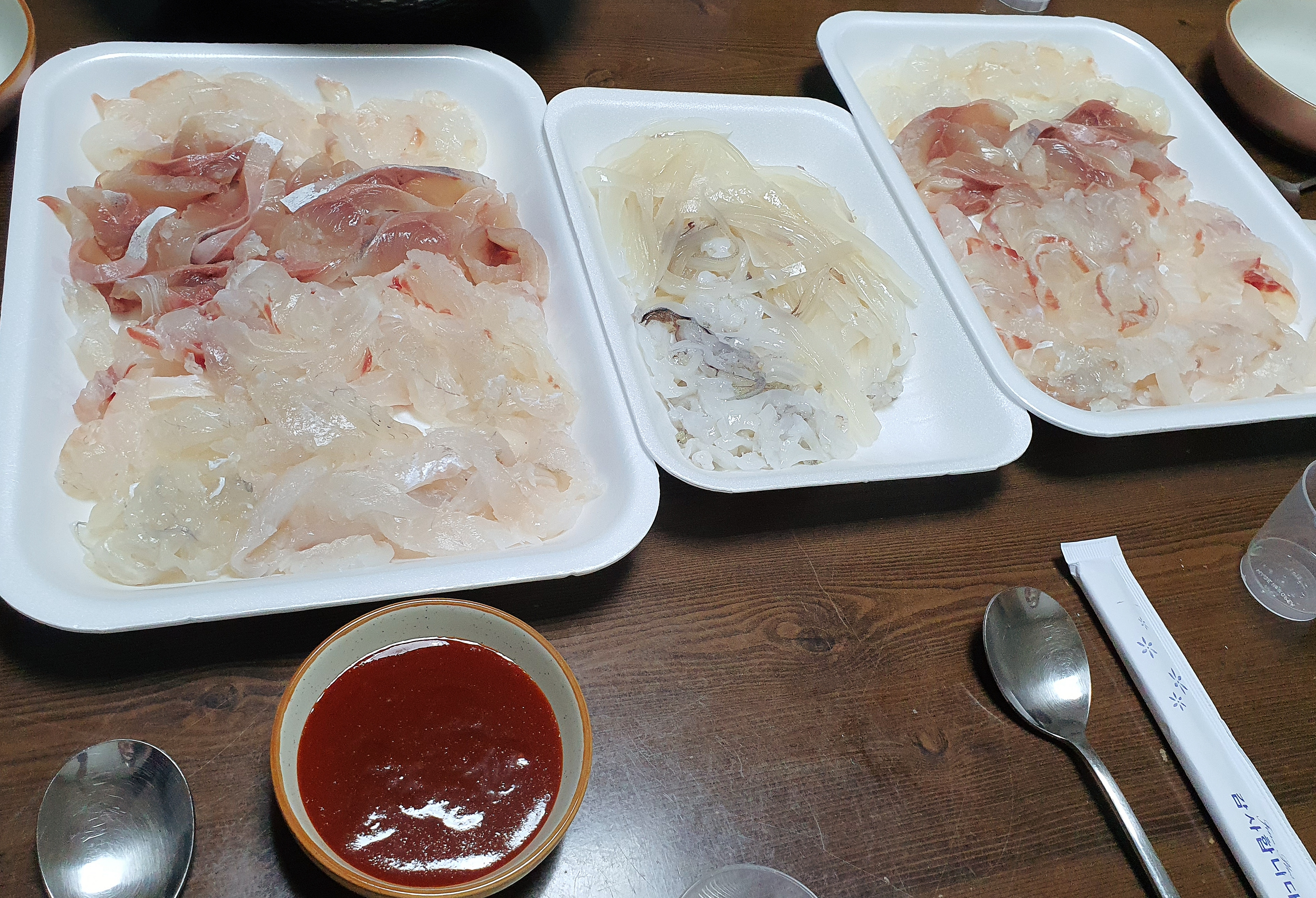 모둠회는 쥐치, 광어, 오징어, 참돔, 우럭 그리고 잿방어로 구성되었습니다. 6만 원에 다양한 회를 아주 배부르게 먹었답니다. 소문으로만 듣던 주문진 수산시장은 정말 좋았습니다. 다음에 또 가고 싶네요!