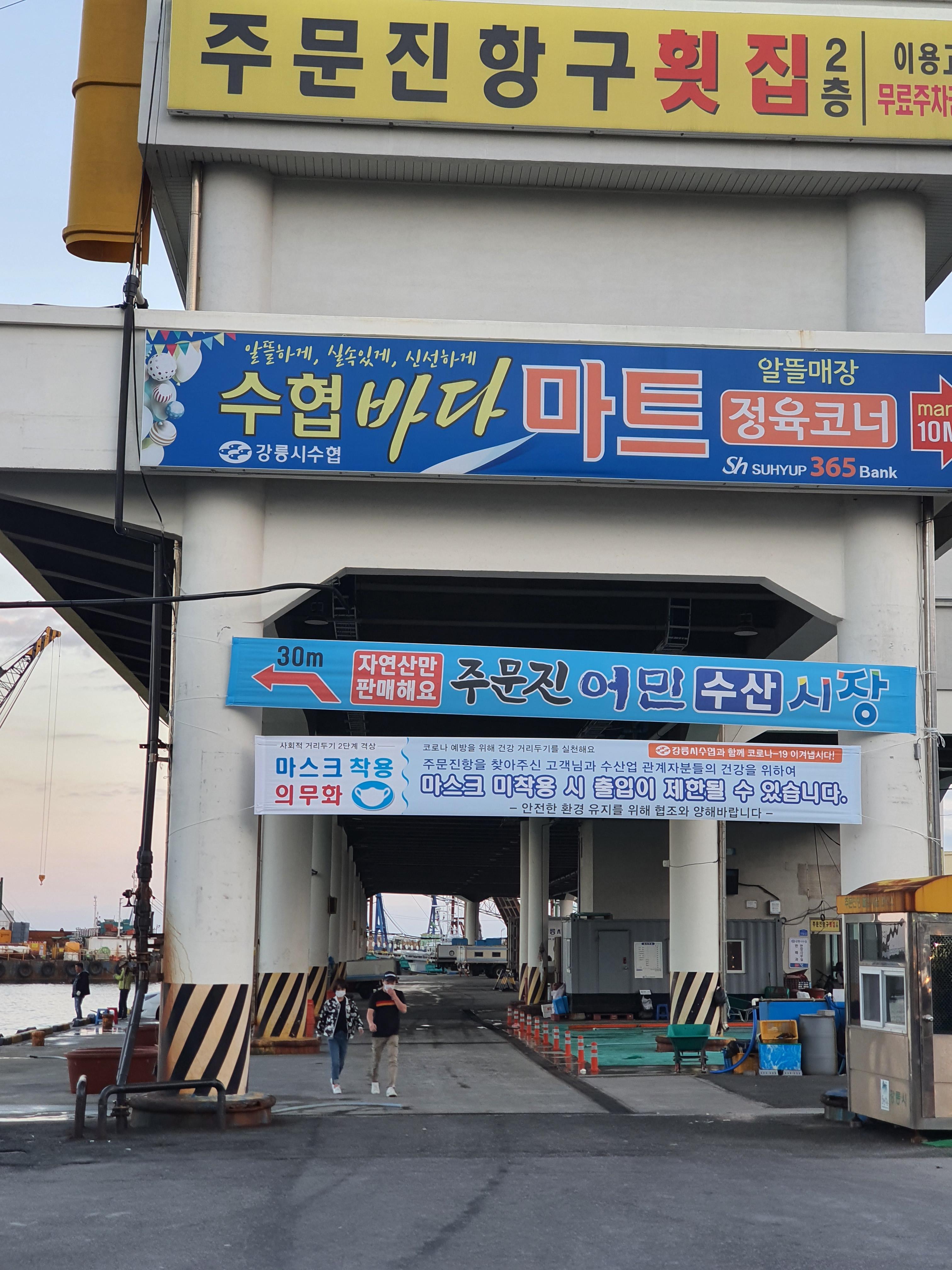 풍물시장을 가볍게 스캔했던 이유가, 바로 자연산만 판매하는 주문진 어민수산시장도 가보려고 했기 때문입니다. 주문진까지 왔으니 맛있는 자연산을 먹고 싶긴 했지만, 고민 중이었어요. 가격도 비쌀뿐더러 생선이 얼마나 나와있는지도 모르니까요.