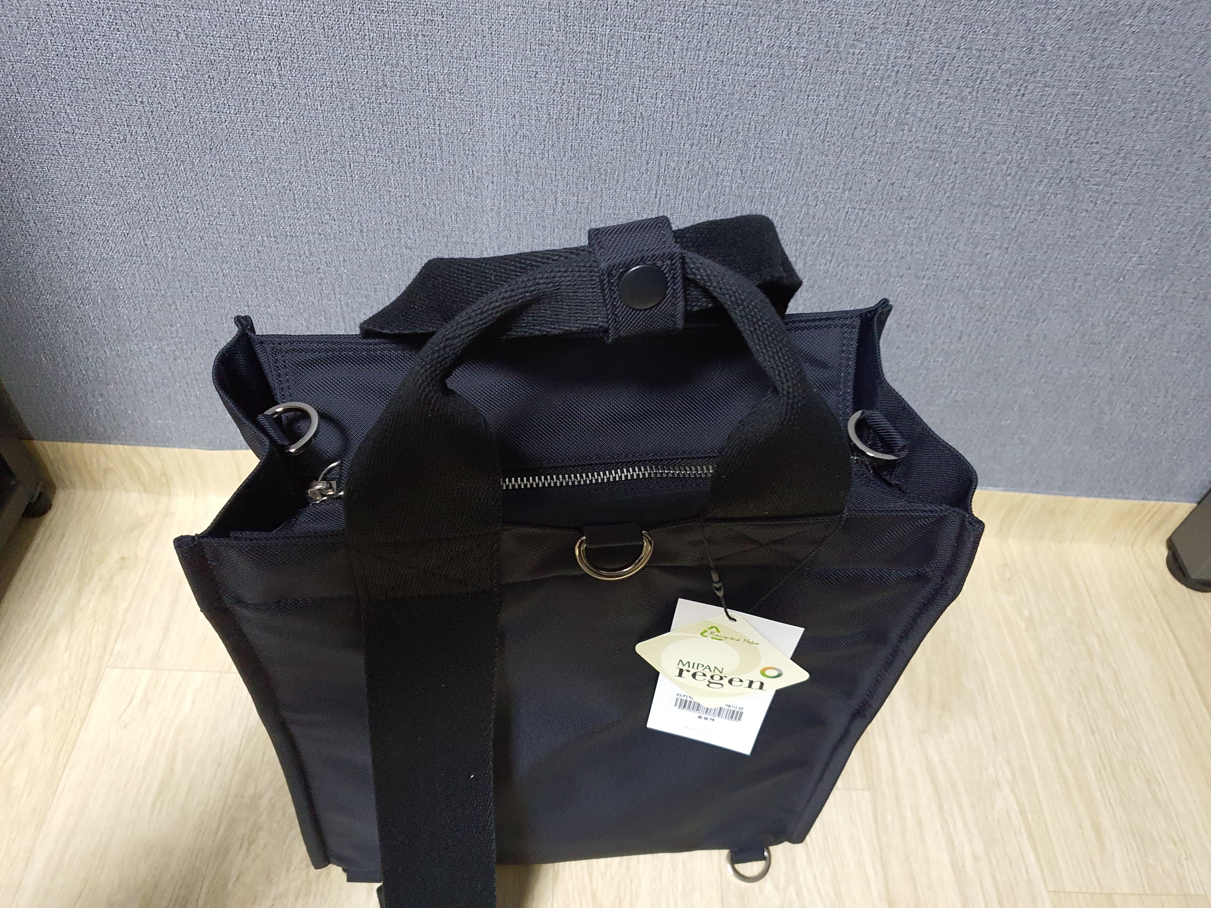 가방 무게는 578g으로 다른 에코백들처럼 정말 가벼운 가방이에요. 딱 한 가지 아쉬운 점은 앞주머니가 없어서 지갑이나 휴대폰을 넣다 뺐다하기 조금 불편합니다. 그래도 이제 태블릿을 잘 들고 다닐 수 있을 것 같습니다 :)