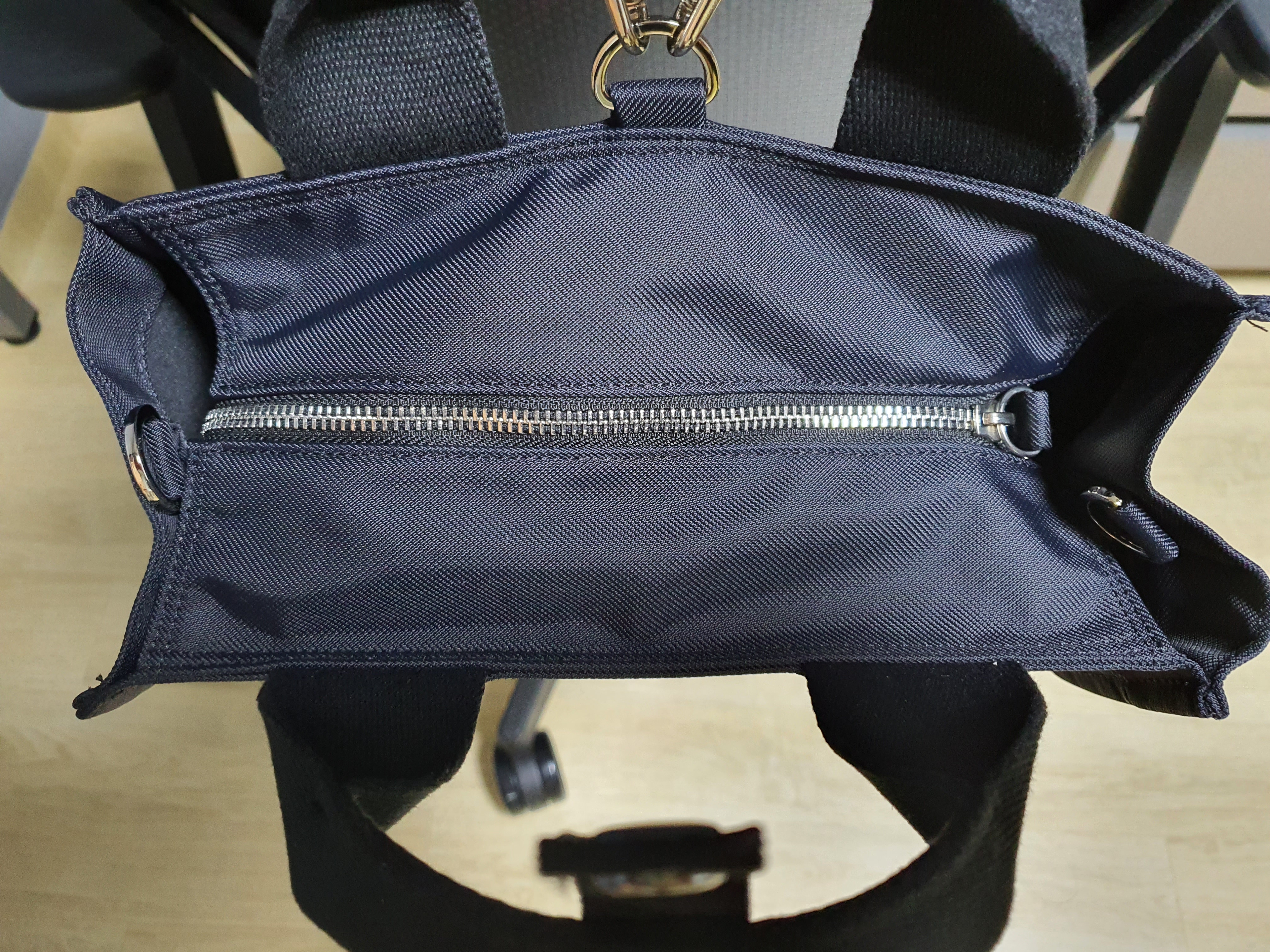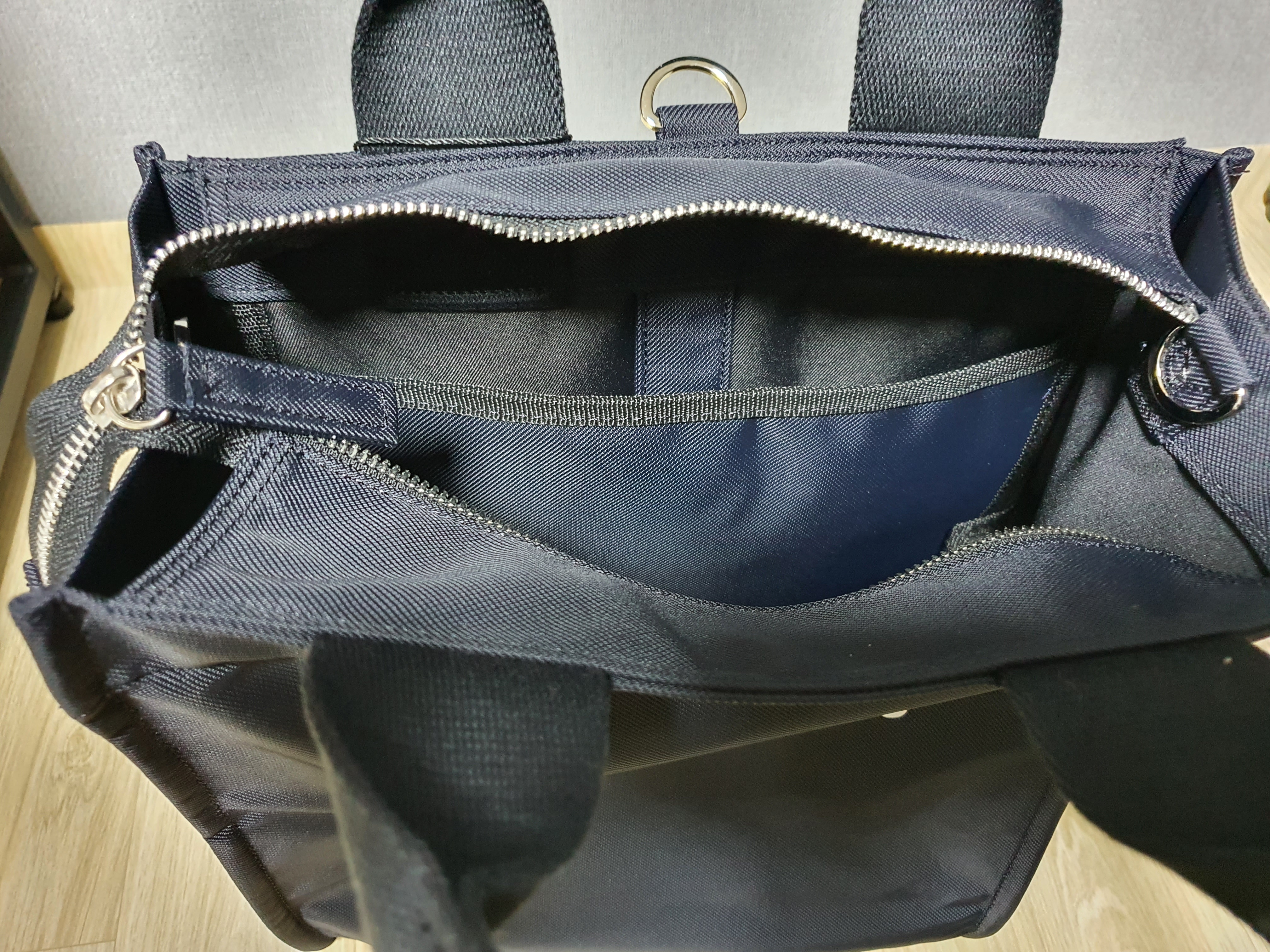 이 가방은 3way로 멜 수 있습니다. 끈을 뒤에 연결하면 백팩, 옆에 연결하면 숄더백, 끈을 떼고 토트백으로 들고 다녀도 됩니다. 여러 가지 스타일로 다양하게 활용할 수 있다는 점이 마음에 들었어요.