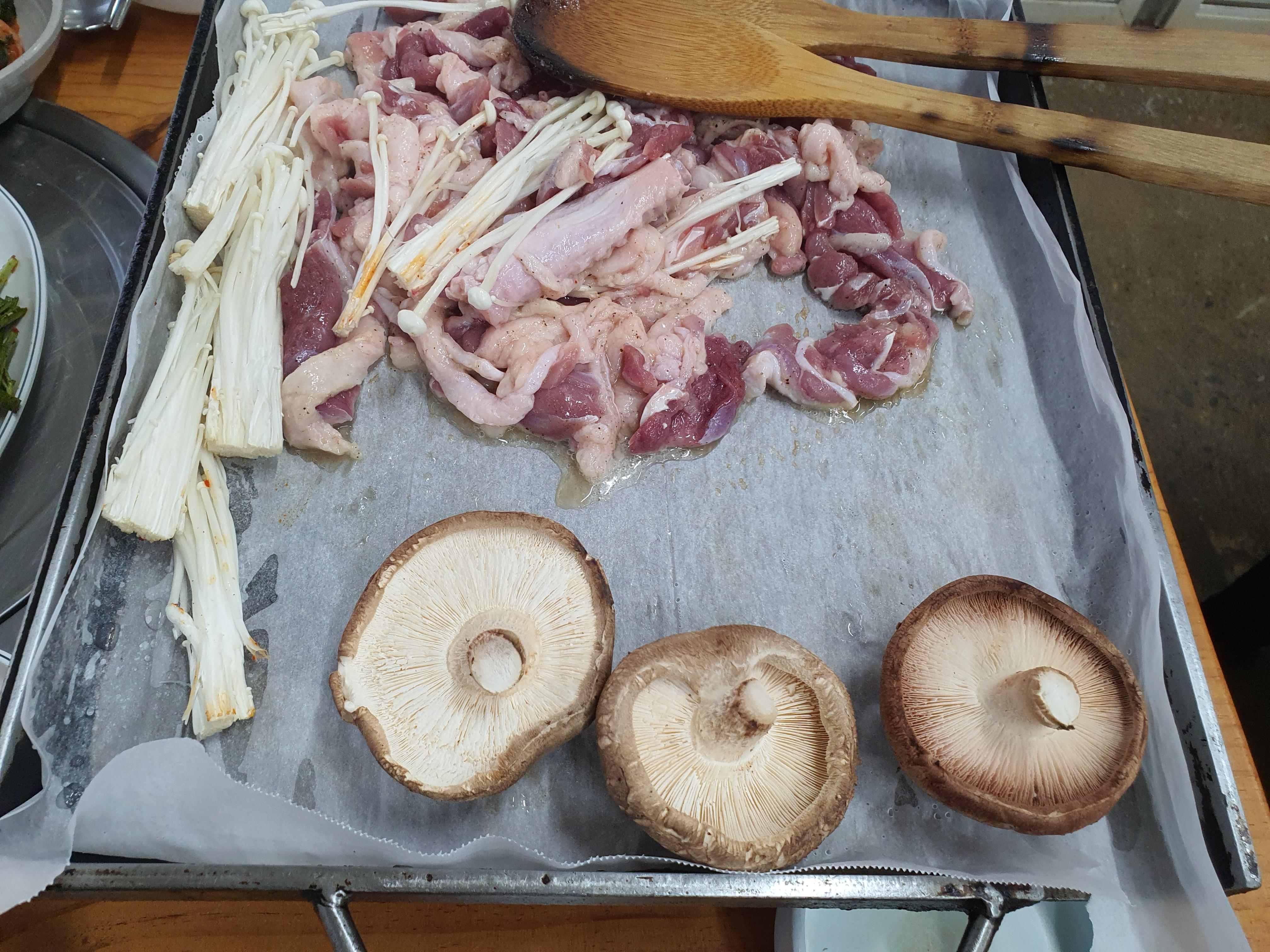 다음에는 오리불고기입니다. 로스구이에 채소들과 고추장 양념을 해서 매콤달콤해서 맛있었습니다. 특히 살코기만 발라져 나오는 다른 부위와 달리 뼈채로 구워서 잘라주는 날개는 별미였습니다.