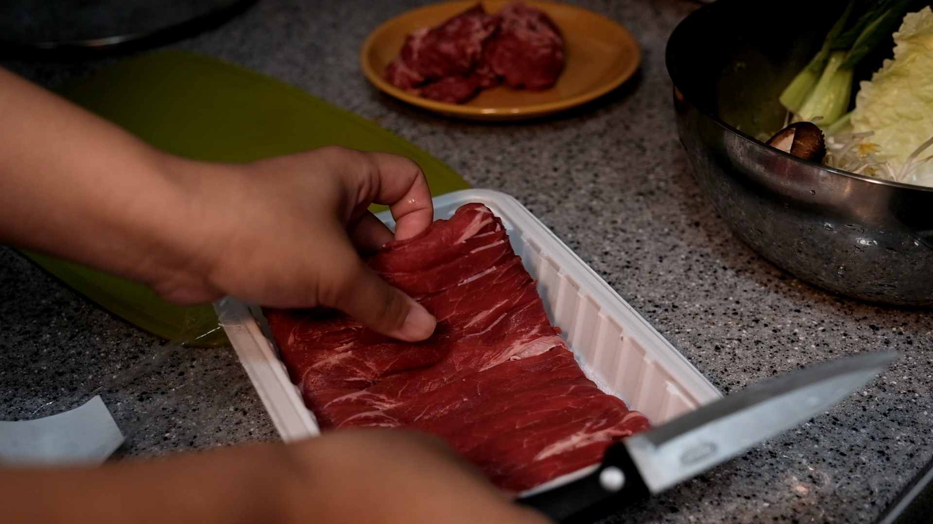 먼저, 설명서대로 키트 안의 고기와 추가로 구입한 샤브샤브용 고기를 키친타월을 이용하여 핏기를 제거하여 줍니다. 고기가 푸짐하게 들어간 요리를 생각하니 벌써부터 기대가 되네요.