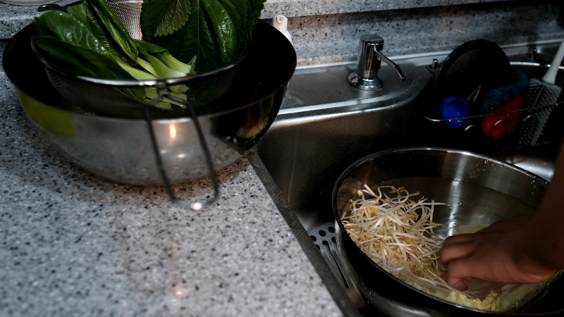 다음은 키트 안의 숙주나물, 청경채, 배추, 버섯 등을 포장지를 벗겨 세척해 줍니다. 물론 세척 후 진공 포장된 깨끗한 채소지만 저희는 그냥 세척해서 요리에 사용해 주었습니다. 남편이 식품 전공자라 위생에 각별히 신경 쓰는 편이기 때문에, 모든 재료는 무조건 세척 후 사용합니다.