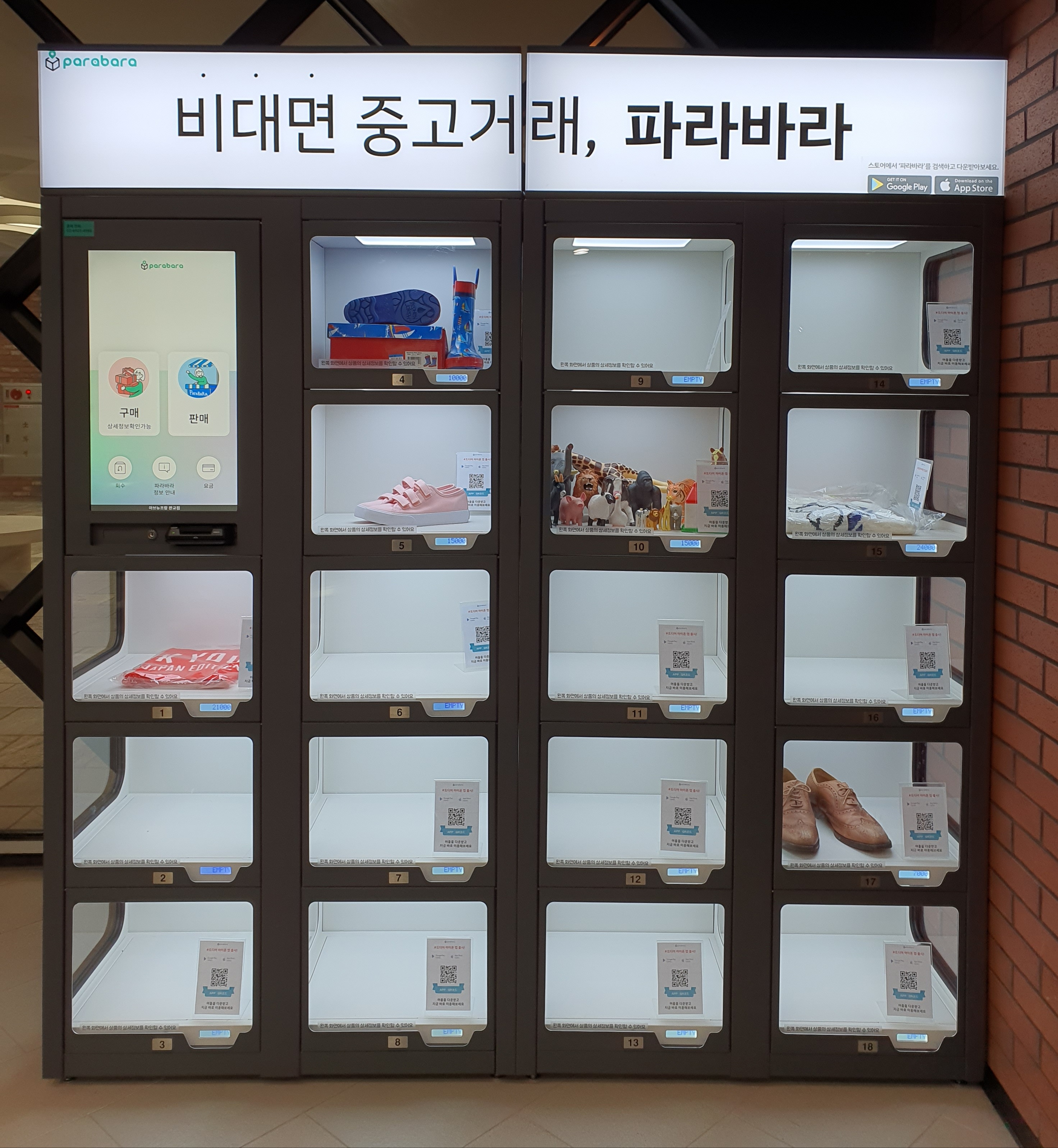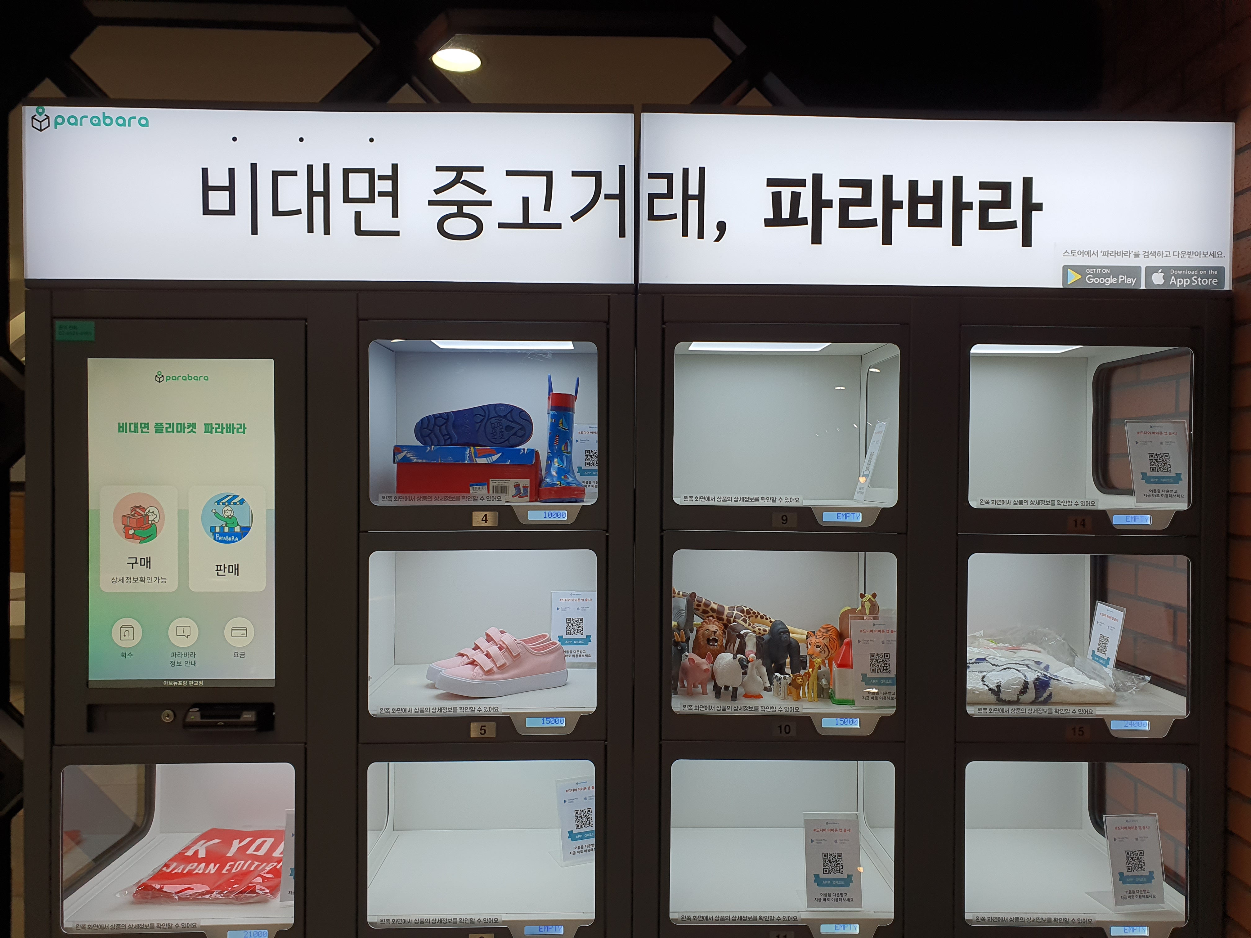 아비뉴프랑 2층에 설치되어 있었는데요. 총 18칸 중에 6칸에 물건이 들어있었습니다. 대부분의 물건의 상태도 아주 좋아 보였어요. 그래서인지 당근마켓보다는 가격을 제대로 쳐준다는 느낌을 받았습니다.