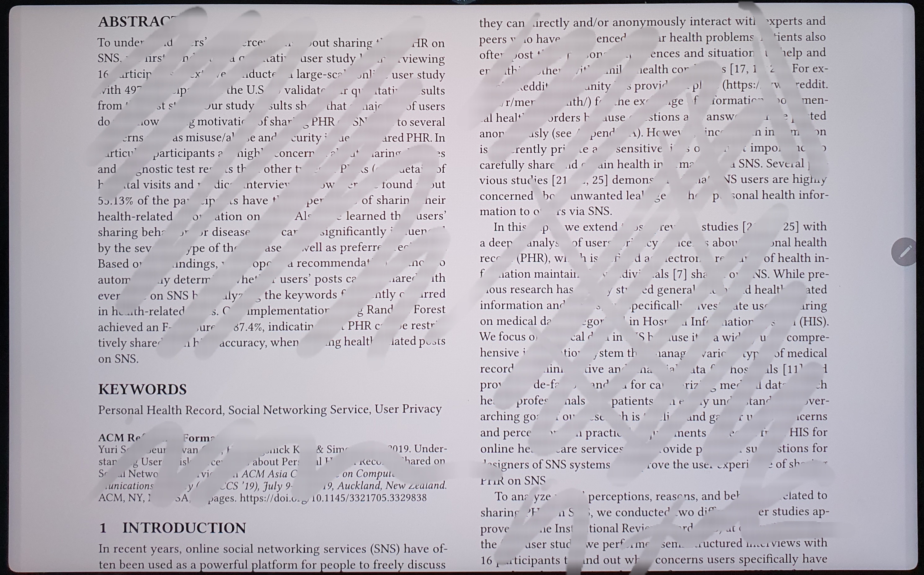 11인치 태블릿인 갤럭시탭으로 논문을 보기 적절한지 궁금해 하시는 분들이 많은 것 같아서 준비했습니다. 스크린샷이 아니라 직접 사진을 찍었습니다.