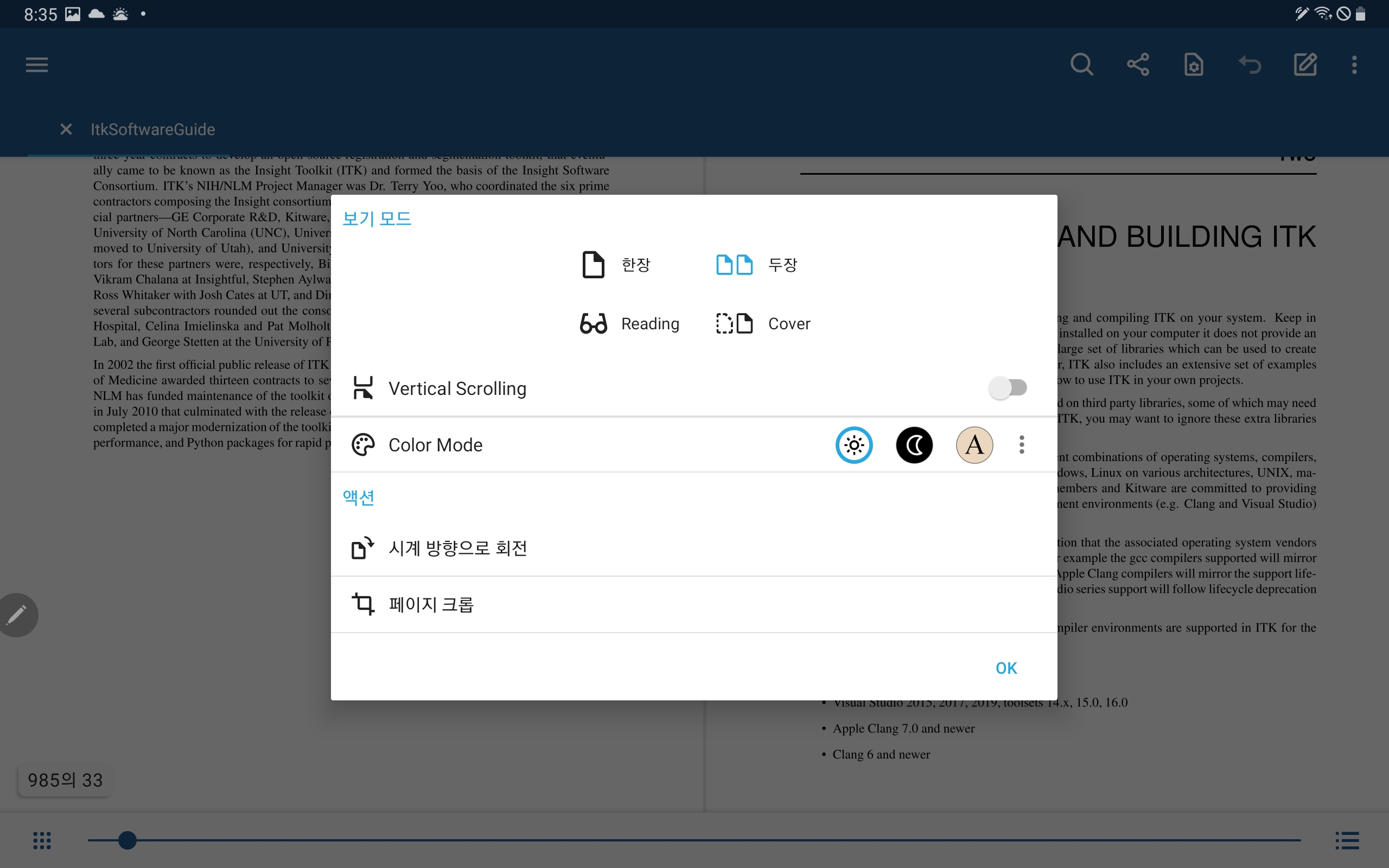 XODO에서는 아래와 같이 듀얼뷰로 pdf를 볼 수 있습니다. 글씨가 작아서 눈이 안 좋으신 분들은 조금 힘들 것 같긴 합니다.