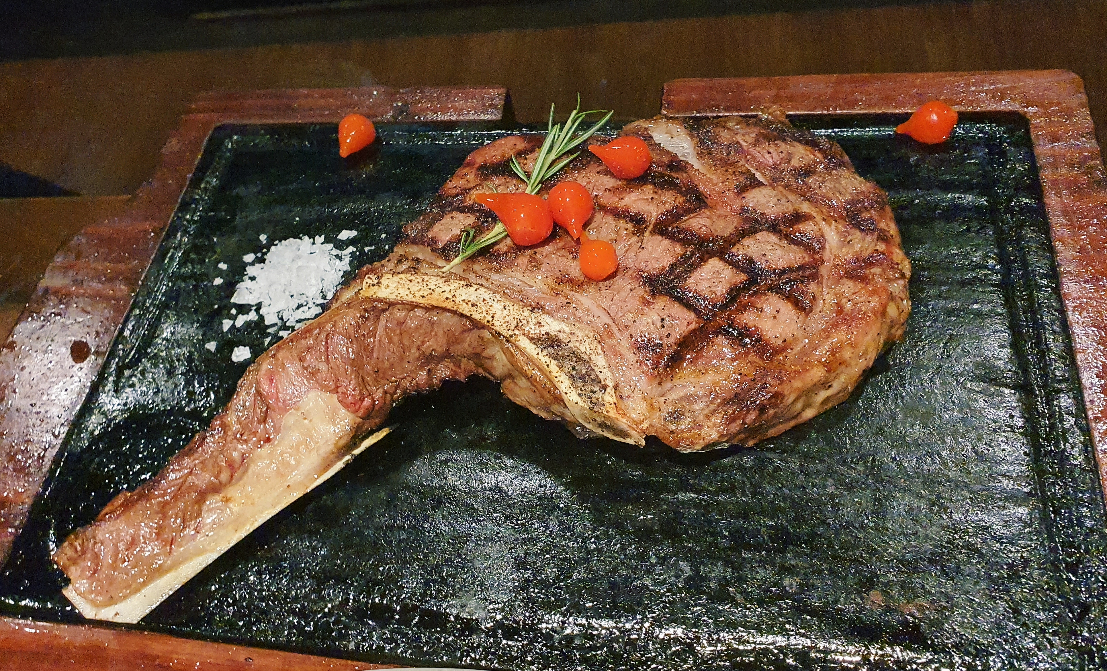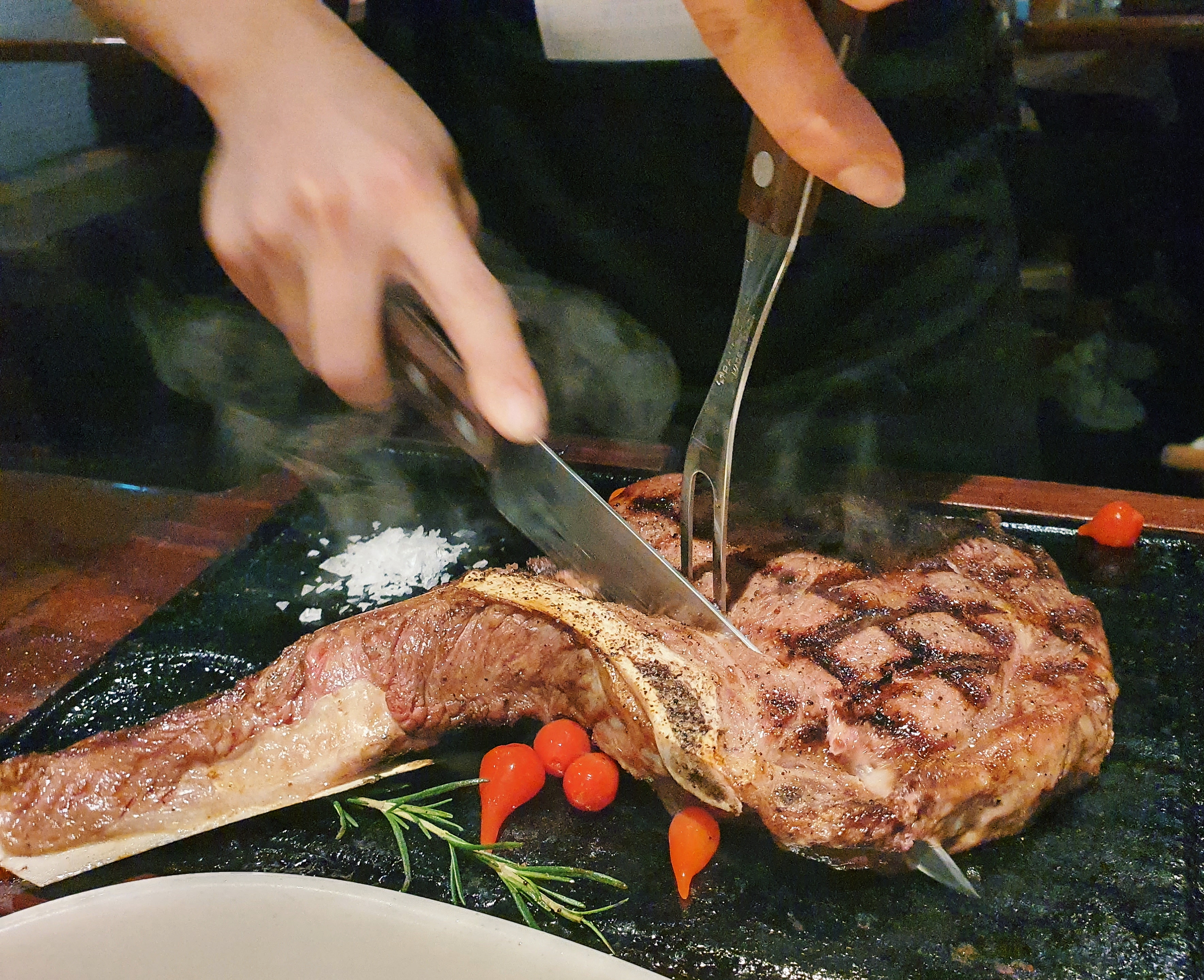 오늘의 메인 메뉴!!! 미디엄으로 구운 토마호크 스테이크가 등장했습니다. 760g이라서 크진 않지만, 둘이서 먹기에는 적당해 보였어요.