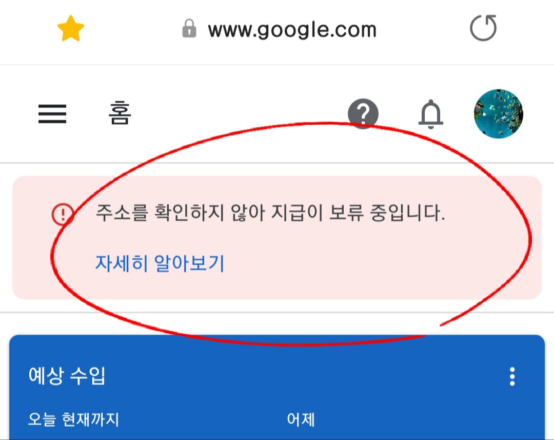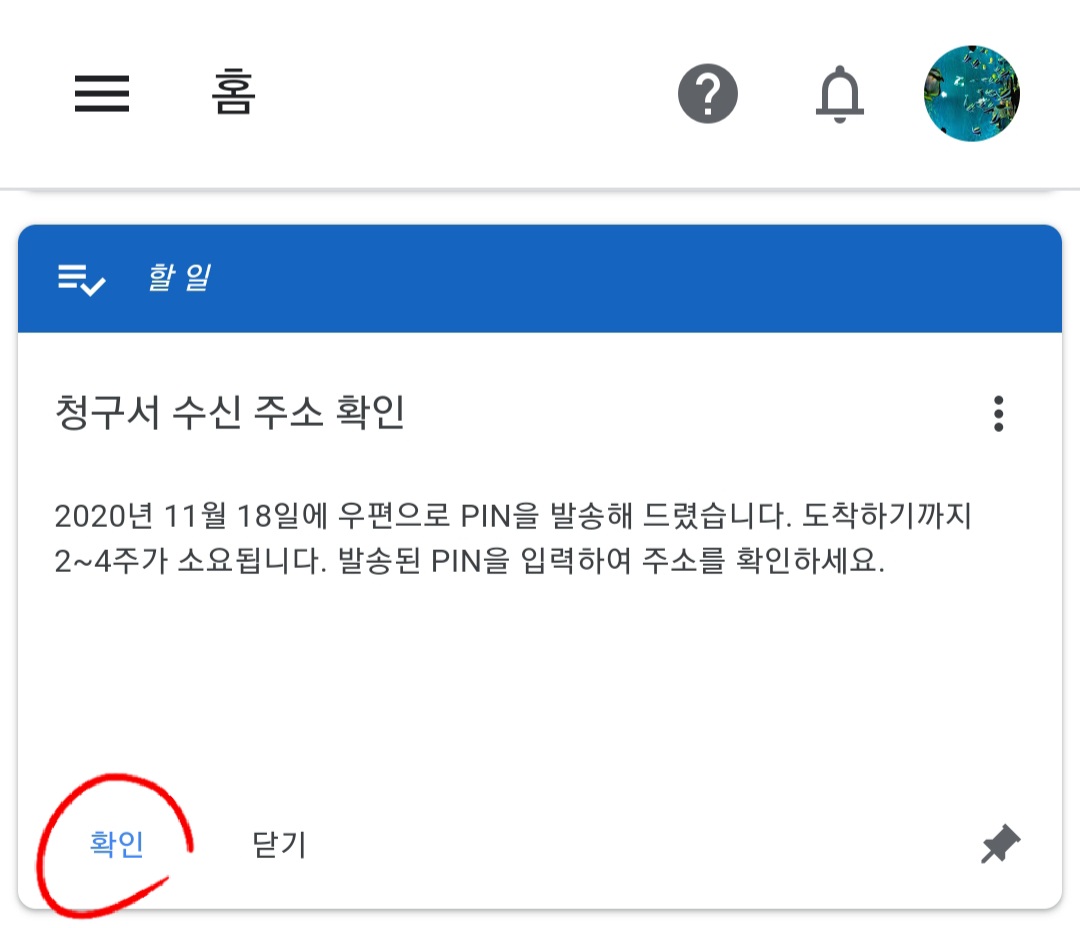 모바일 애드센스 화면에서, 쭉 내려가면 청구서 수신 주소 확인이 있습니다. 여기서 핀번호를 입력하면 됩니다.