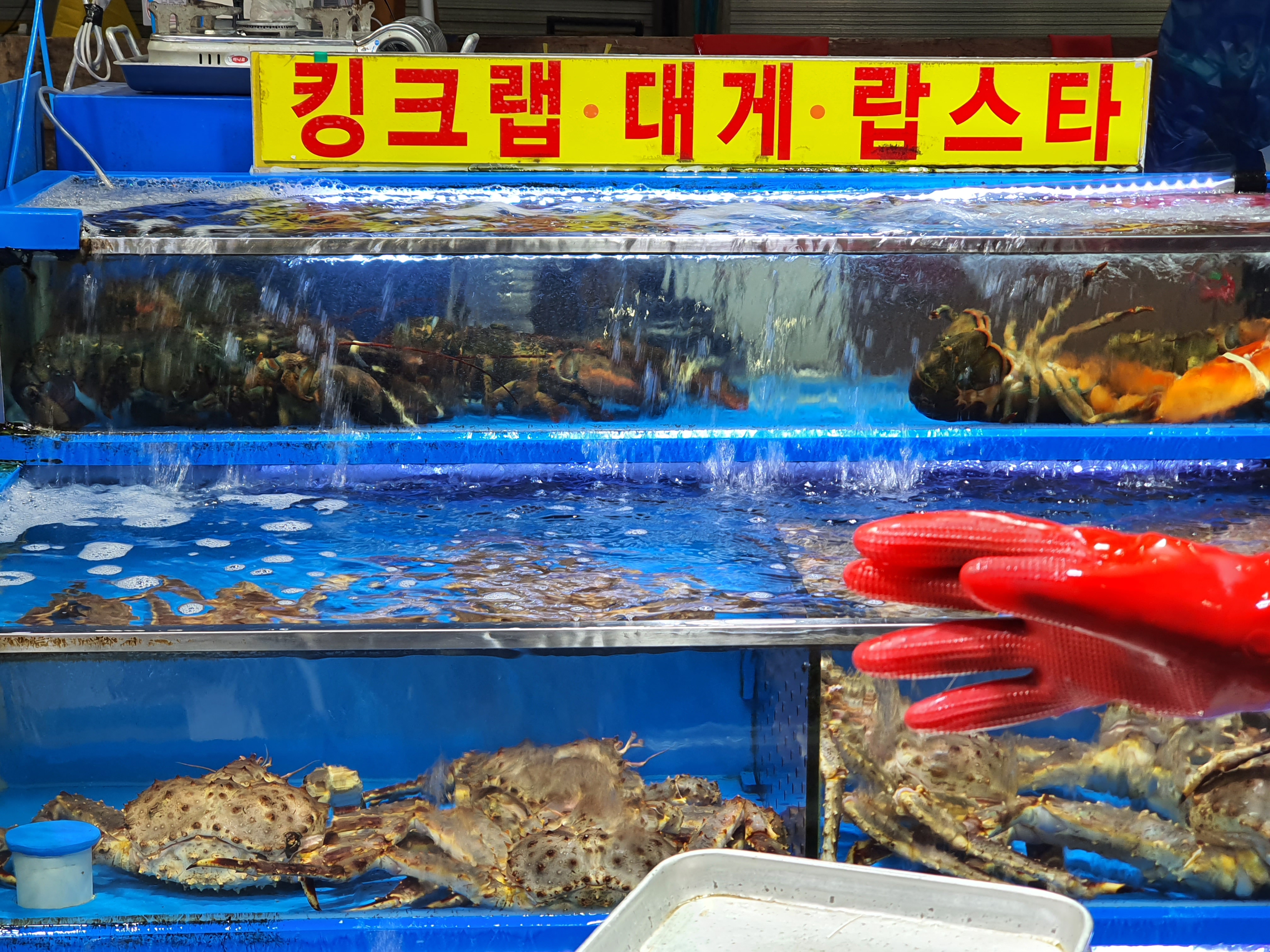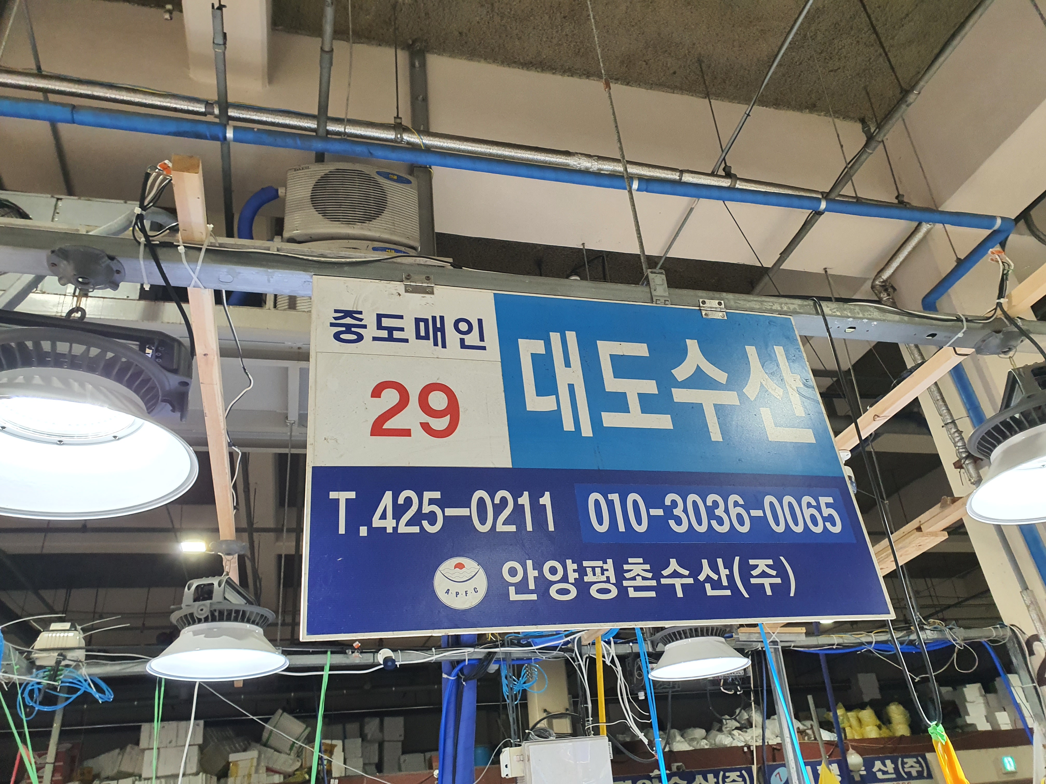 랍스터를 사러 농수산물시장으로 갔어요. 11월에 킹크랩을 먹었을 때 방문한 가게는 12월에 또 갔었는데, 이런저런 일이 있어서 이제는 안 갑니다. 인어교주해적단 어플로 다른 가게를 열심히 찾았어요. 갑각류 파는 곳이 그렇게 많지는 않은데요, 여러 군데를 돌아보고 '대도수산'으로 결정했습니다.