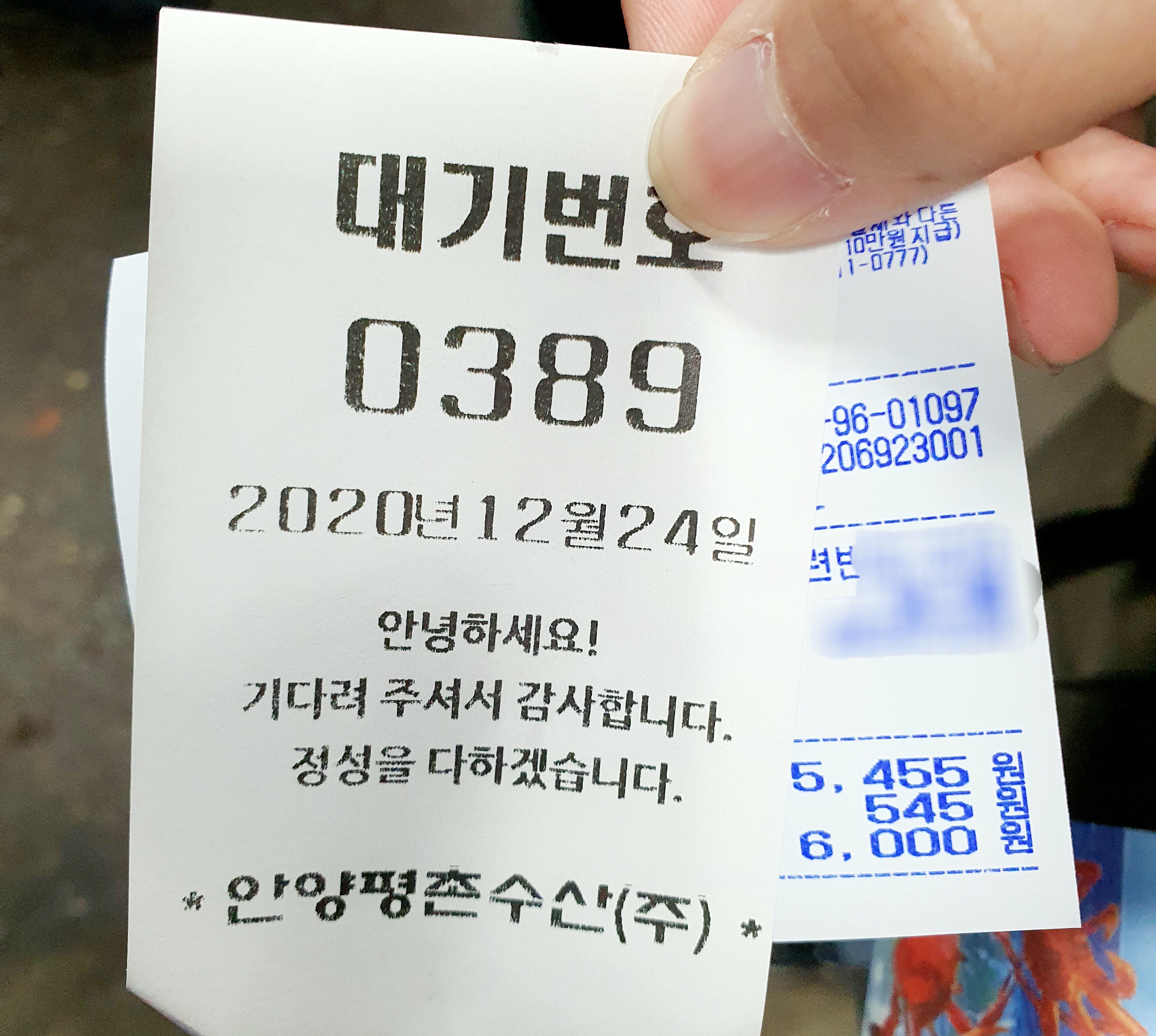 대기번호표는 잃어버리면 돌려받을 수 없기 때문에 절대 잃어버리면 안됩니다!! 랍스터 손질비 6,000원을 결제하였습니다.