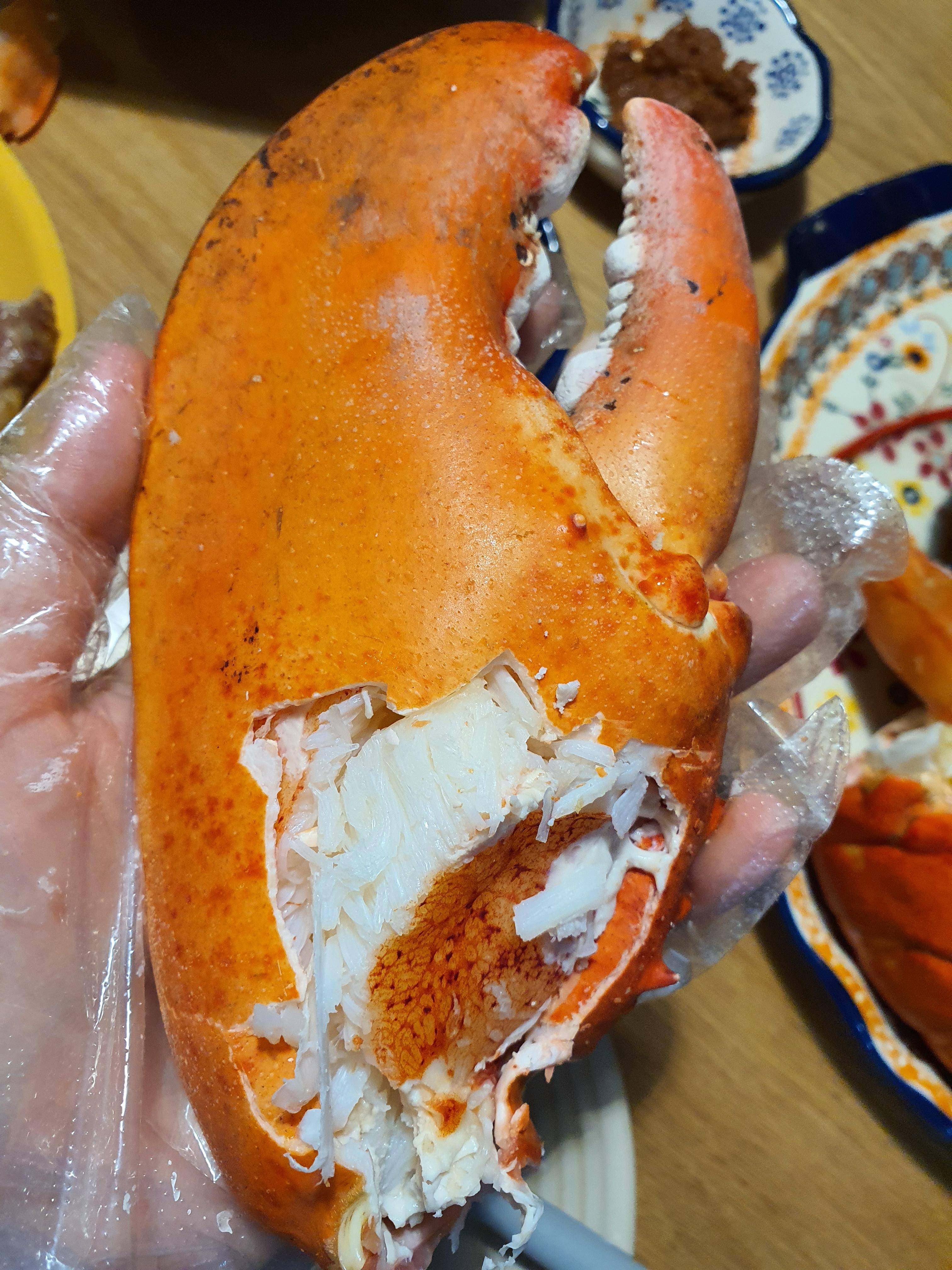 랍스터는 살수율이 굉장히 좋았어요. 집게 안에 살이 꽉 차있었습니다. 랍스터는 게보다 식감이 탱글탱글했어요. 살이 으깨지는 것 없이 단단해서 발라 먹기 참 쉽습니다. 감칠맛은 확실히 킹크랩이 좋고, 탱글탱글하고 쫄깃한 식감을 즐기려면 랍스타가 좋을 것 같습니다.