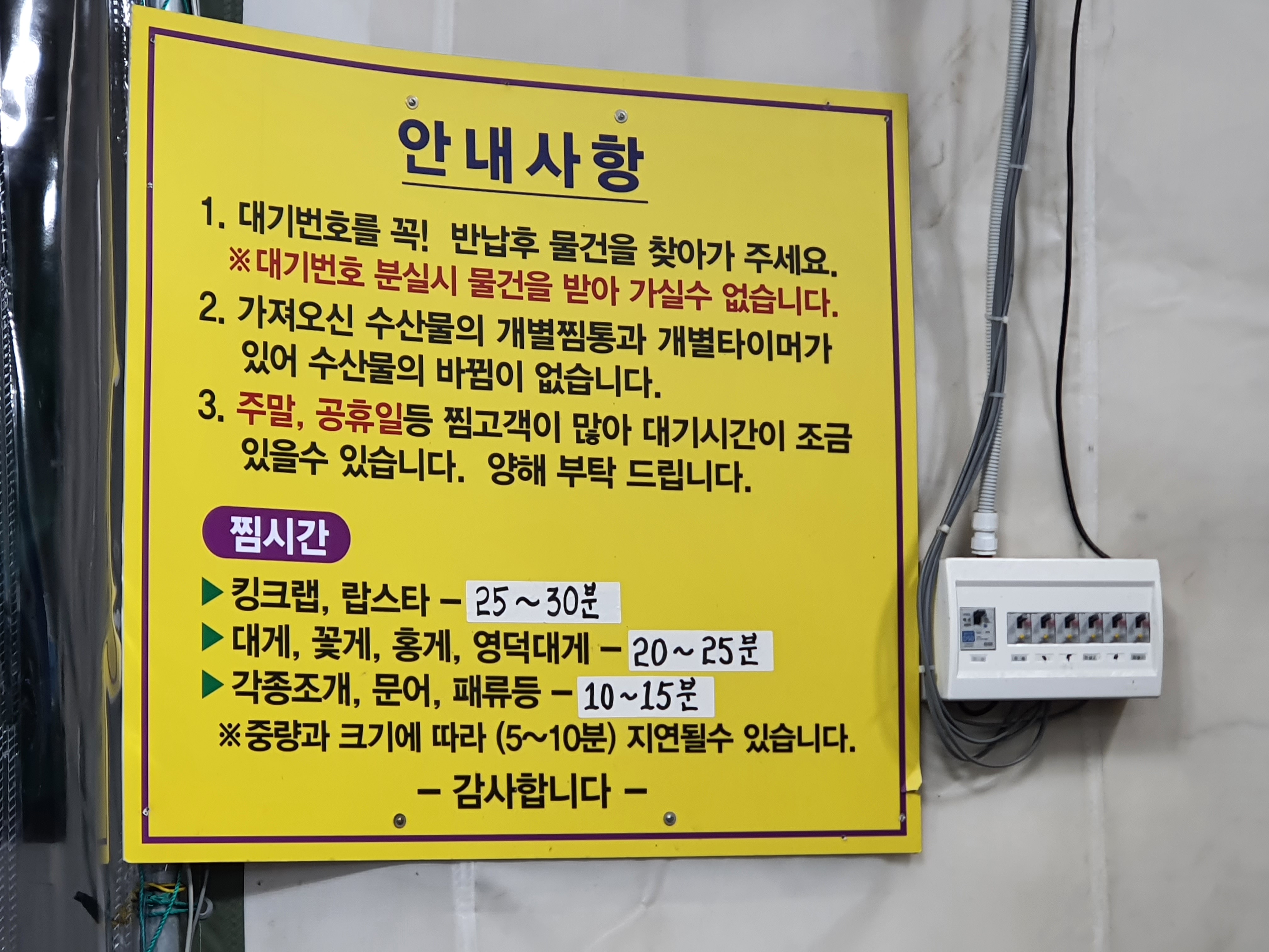 찜시간은 킹크랩과 랍스터는 넉넉히 30분은 잡아야 됩니다. 주말이나 공휴일처럼 대기가 밀려있으면 더 오래 걸릴 수도 있지요.