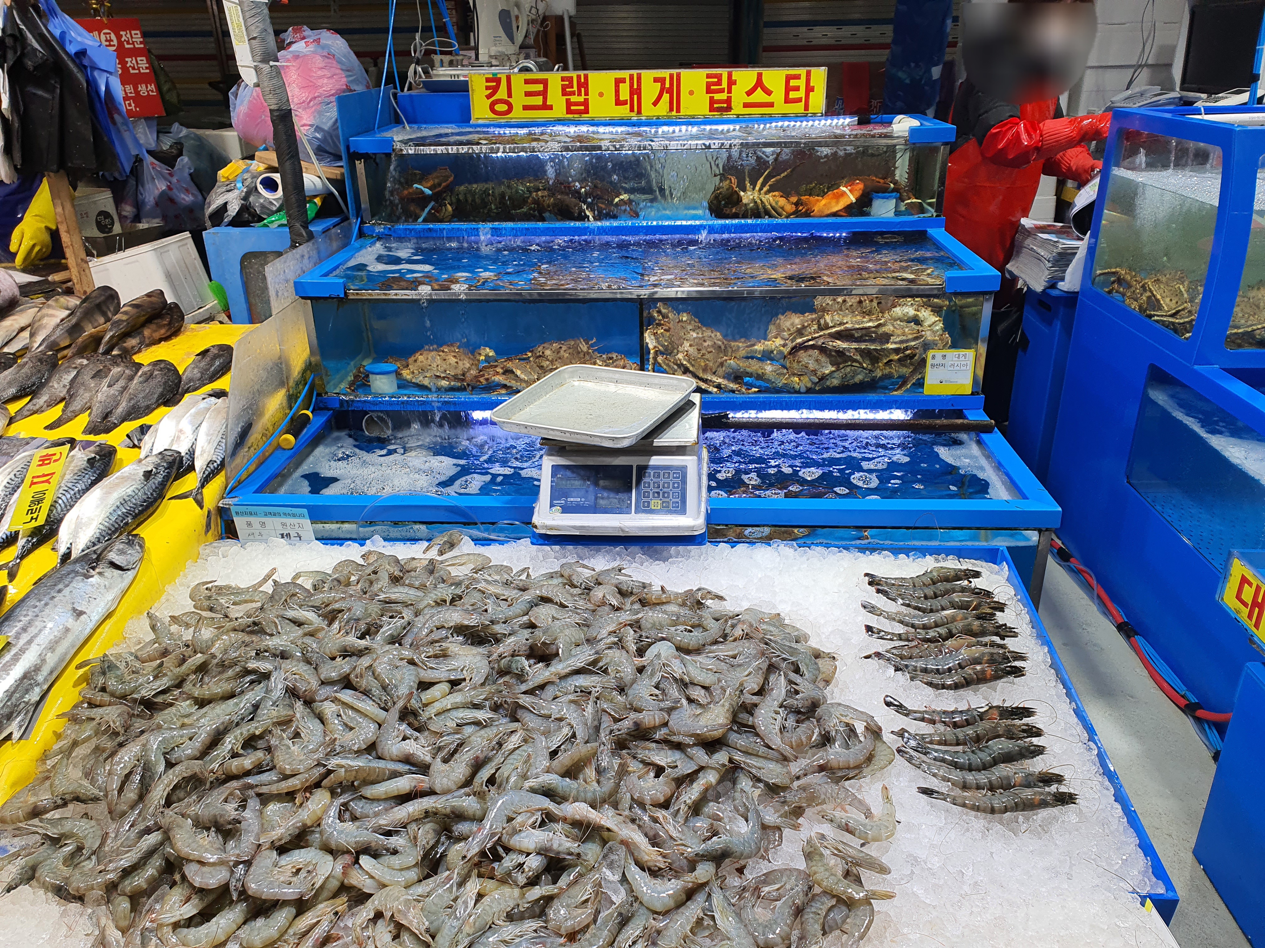 크리스마스이브인 데다가 거의 8시 다 되어서 방문을 했기 때문에, 시장 전체적으로 수조가 많이 비어있는 편이었어요.