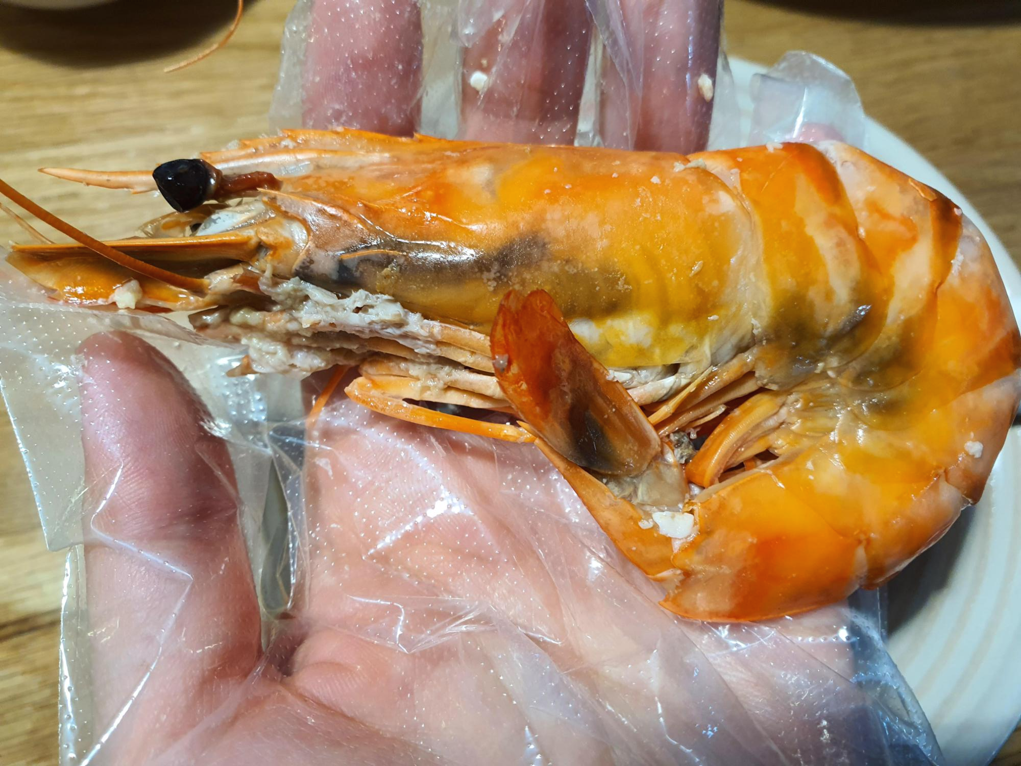 타이거 새우가 제 손바닥만 합니다. 타이거 새우는 역시나 맛있었습니다. 다만 좀 푸석했는데... 새우를 오래 찌면 탱글한 식감이 사라지고 퍽퍽하고 푸석해진다고 합니다. 새우는 보통 10~15분 정도 찌고 랍스터는 25~30분정도 찌는데요, 아마 랍스터와 같이 쪘을 수도 있겠다 싶더라고요. 굳이 몇 개 안 되는 서비스 새우를 따로 쪄 주지는 않을 것 같네요.