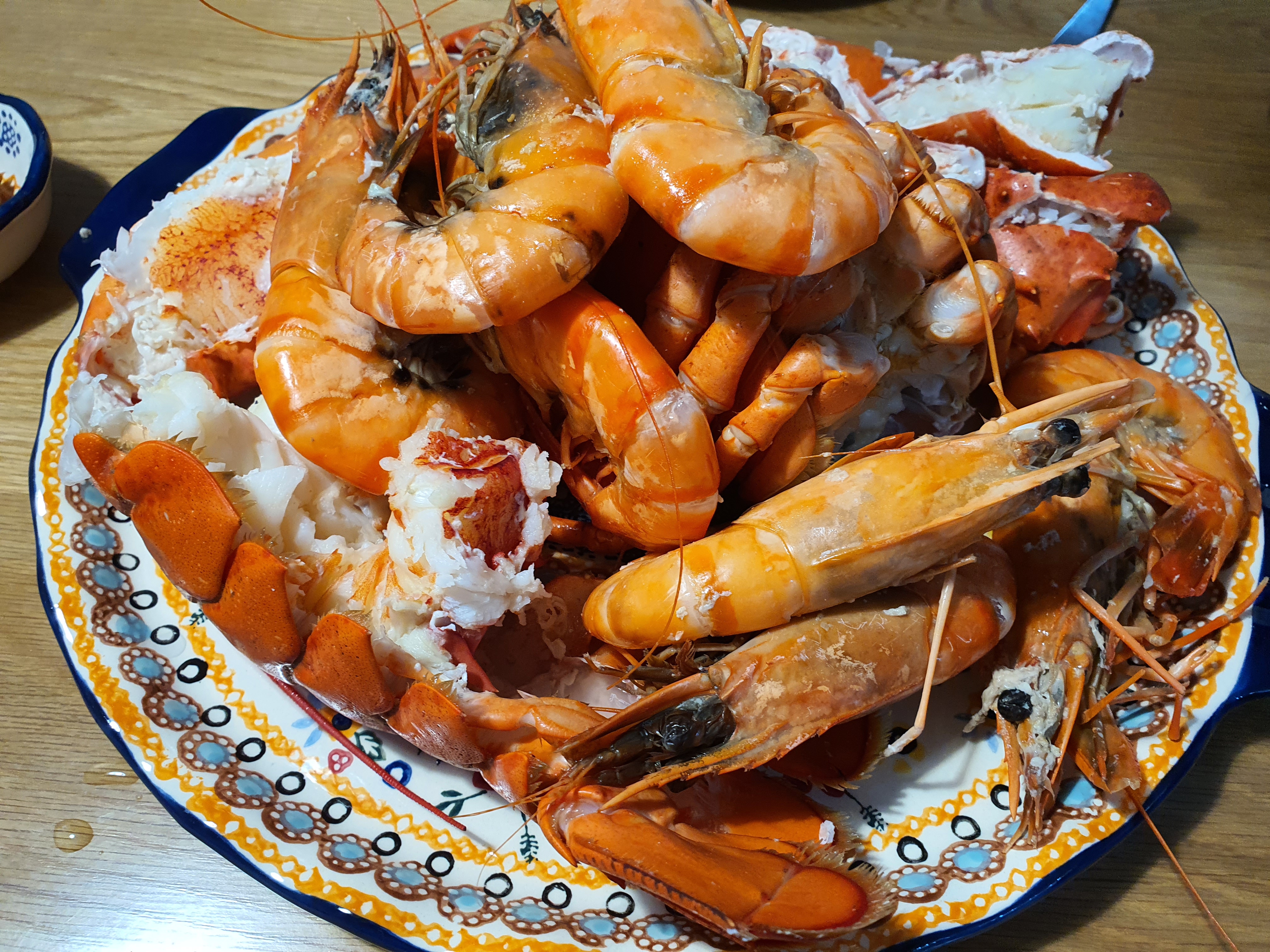 폴란드풍 거대 접시에 랍스터와 새우를 올려봅니다. 폴란드 그릇은 화려해서 연말 분위기에 정말 잘 어울리더라고요.