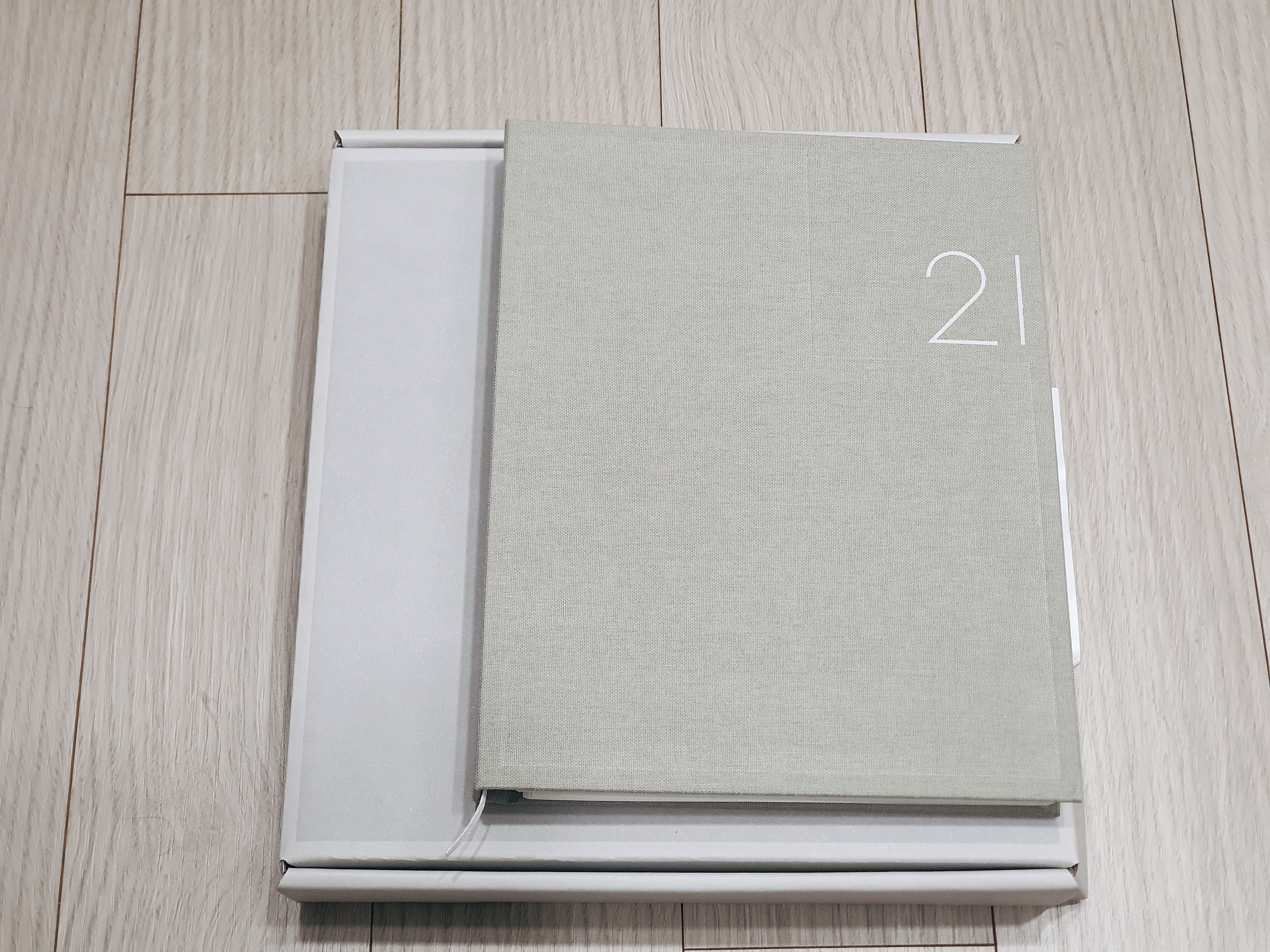 다이어리 패키징 박스를 열면, 다이어리가 비닐에 포장된 상태로 들어있습니다.