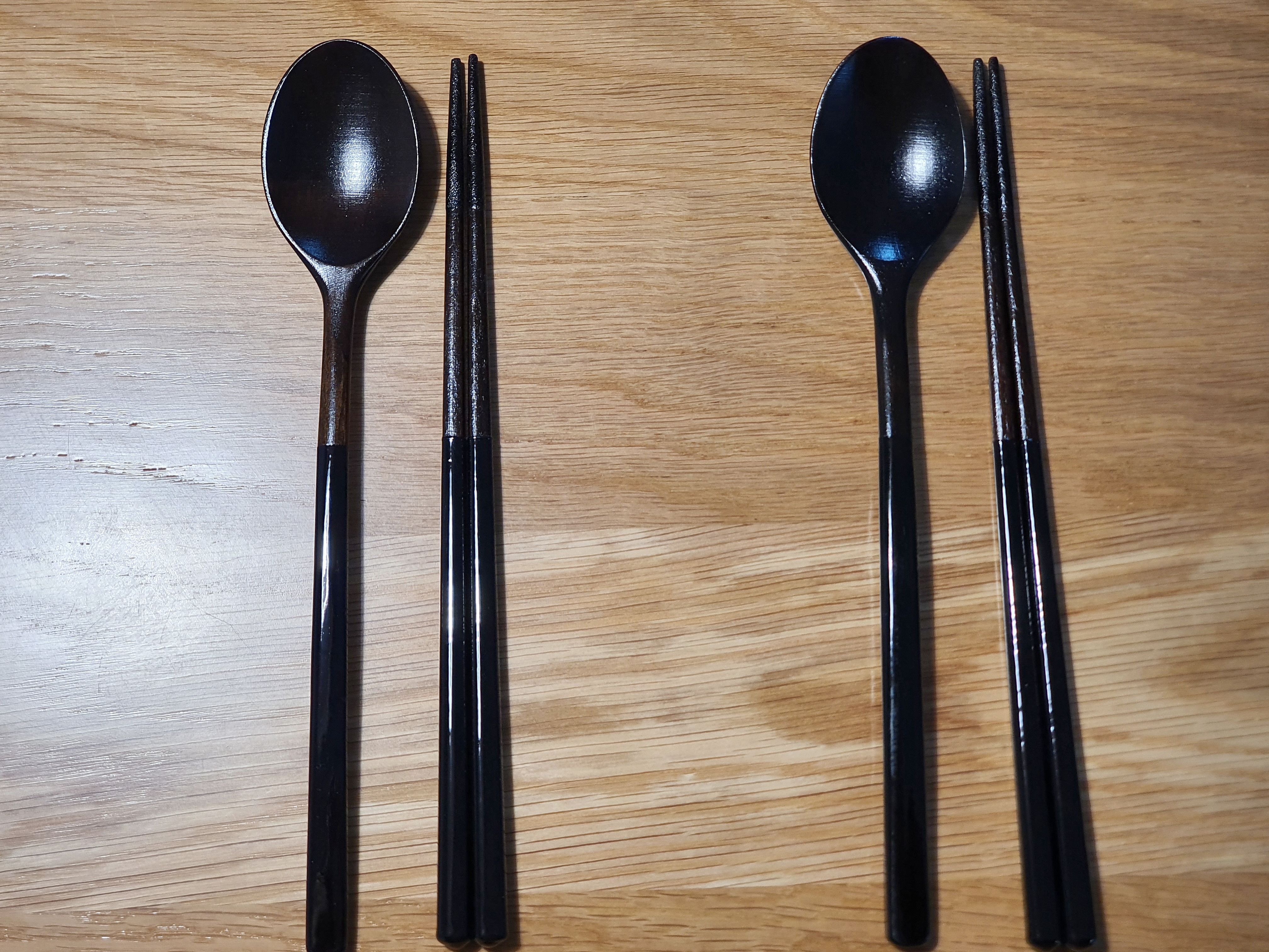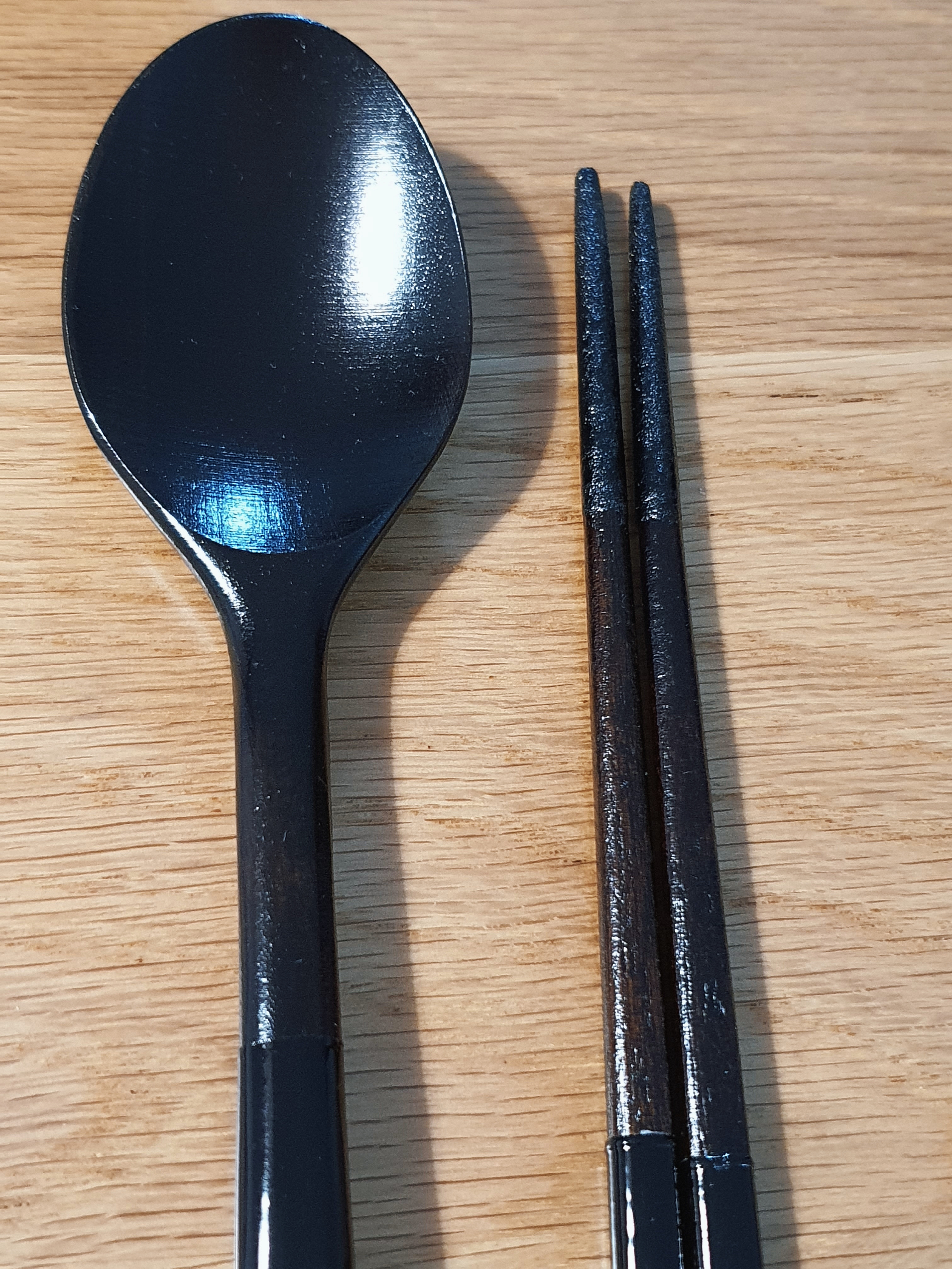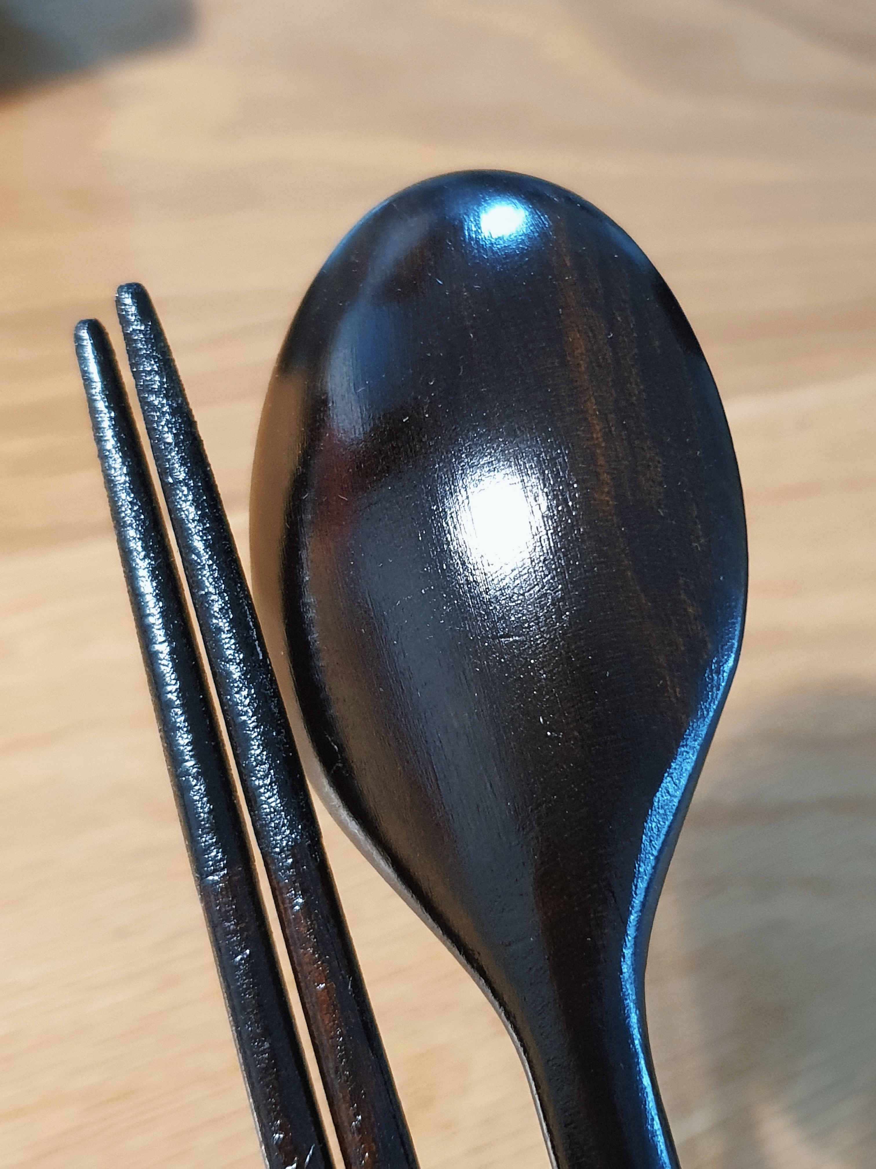 가격이 수저 1세트당 35,000원(인터넷 구입가는 더 쌉니다)으로 비싸서 4인 구성으로는 못 사고, 부부용으로만 마련했습니다. 일반 옻칠 수저보다 훨씬 고급스럽고 정성이 들어간 모양새가 마음에 들었어요.