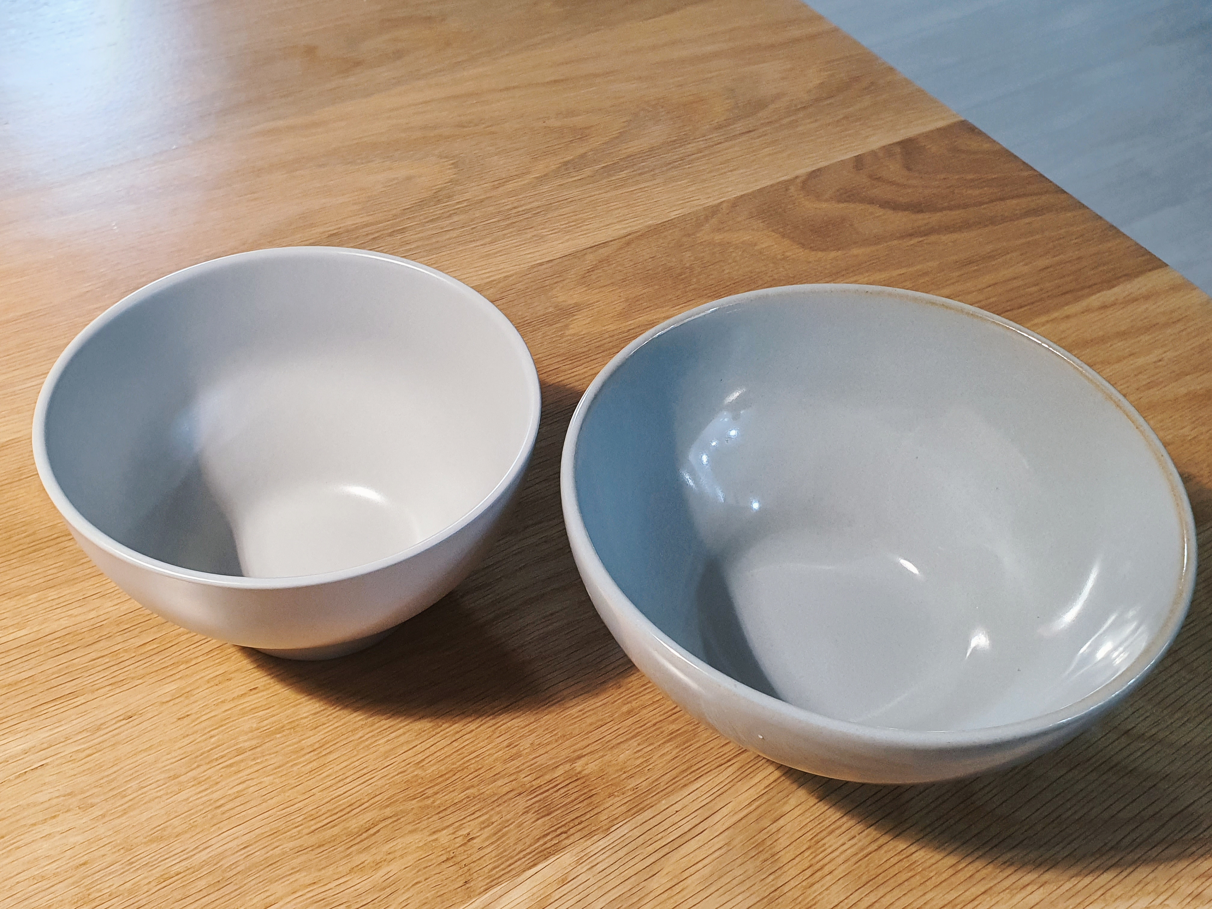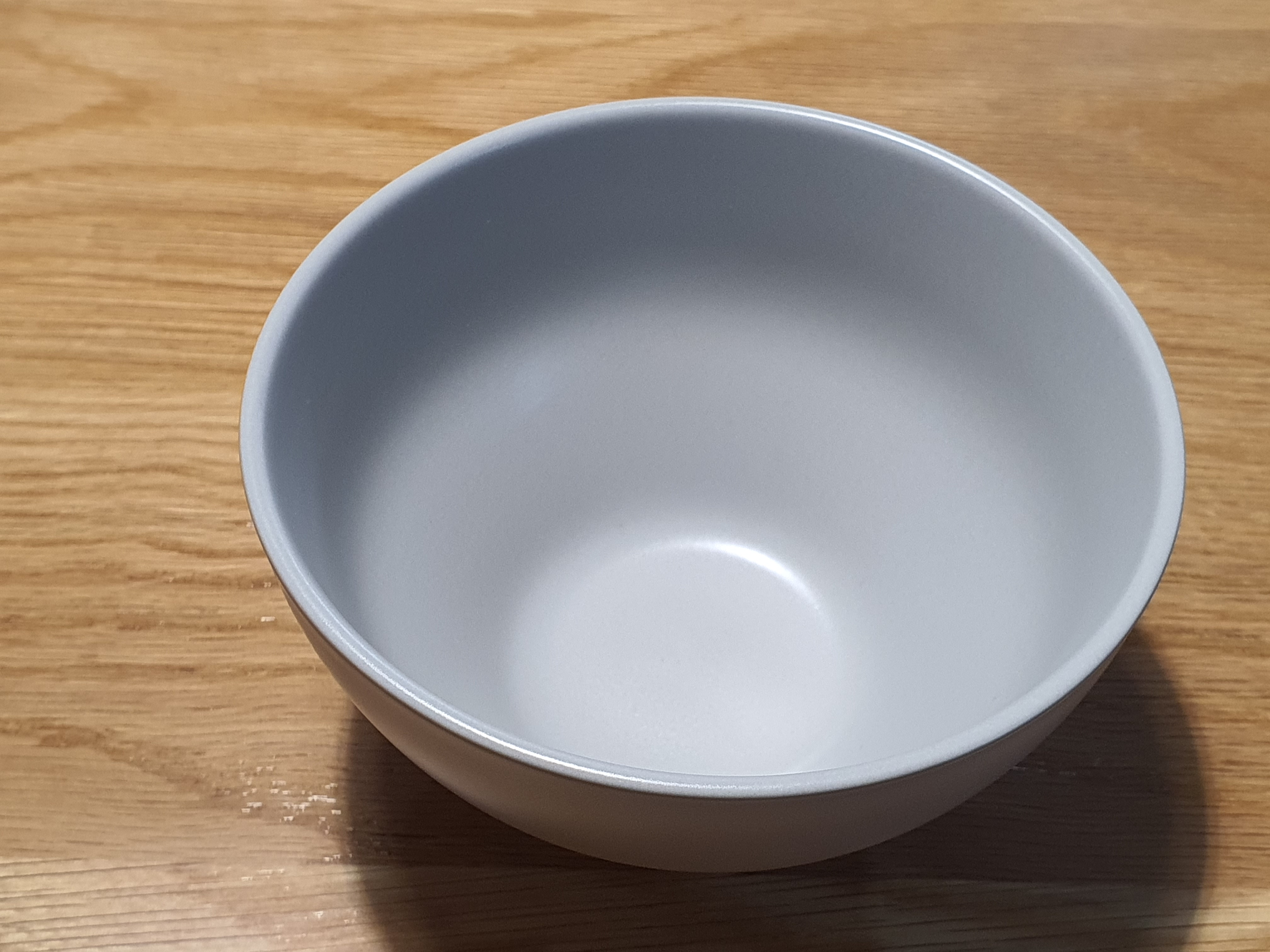 라이트 그레이 무광 그릇입니다. 정확하게 표현하자면 살짝 매끈하고 맨들맨들한 반무광이라서 제가 가지고 있던 유광 제품과 같이 놓아도 그럭저럭 봐줄만 했습니다.