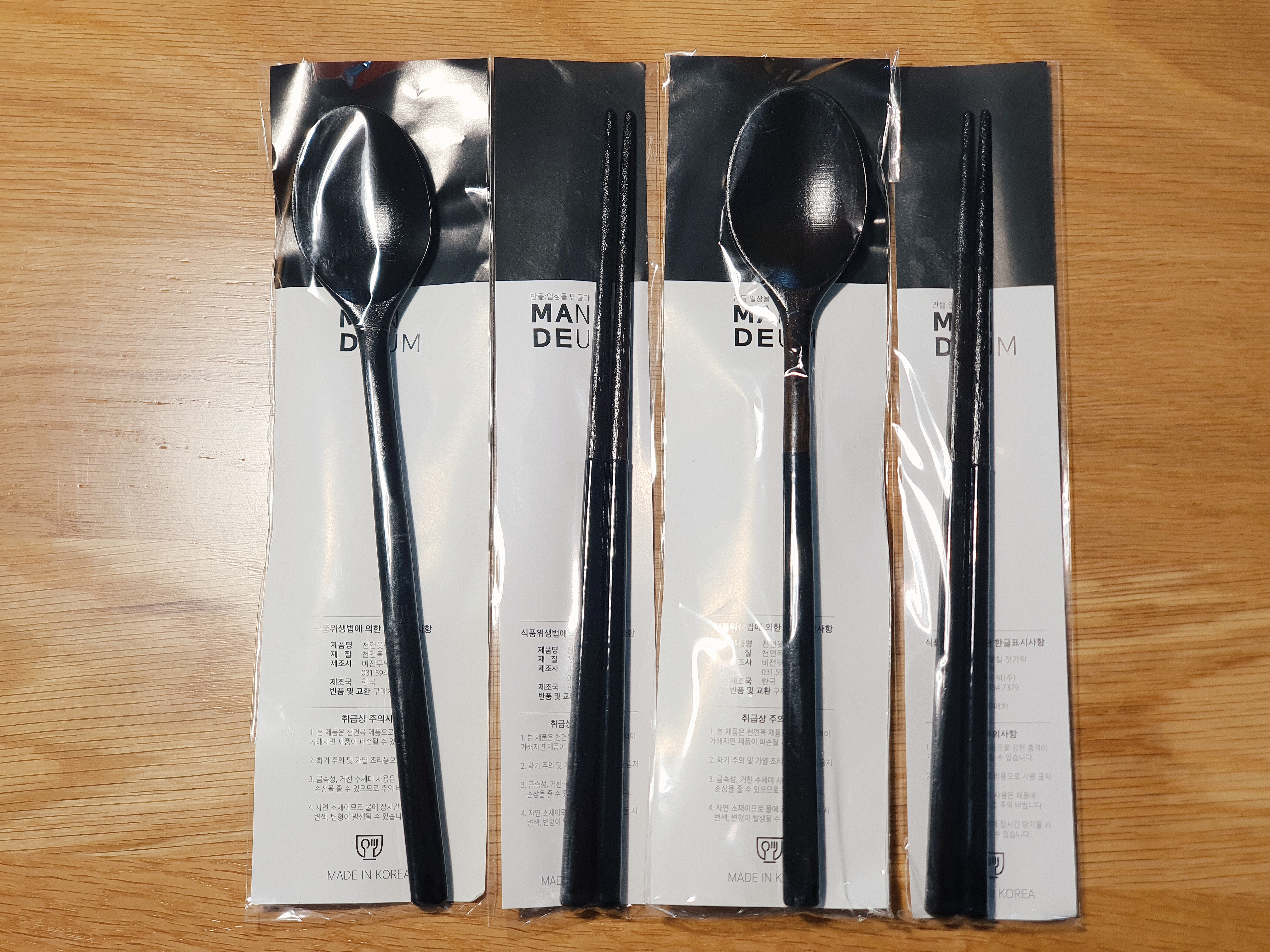 오랫만에 간 김에 수저세트도 함께 사왔습니다. 남편이 나무수저의 매력을 알아버려서, 요즘은 거의 나무 수저만 쓰고 있어요. 그런데 기존에 쓰던 나무수저가 그렇게 좋은 수저가 아니었고 칠도 약간 벗겨져서 남편이 먼저 바꾸자고 했습니다. 그러던 와중에 김성훈 도자기에서 이 블랙 수저를 보더니 완전 꽂혀버렸지요. 진회색, 회색, 화이트, 핑크색 수저도 있었지만, 저도 블랙이 예뻐보여서 블랙을 선택했습니다.