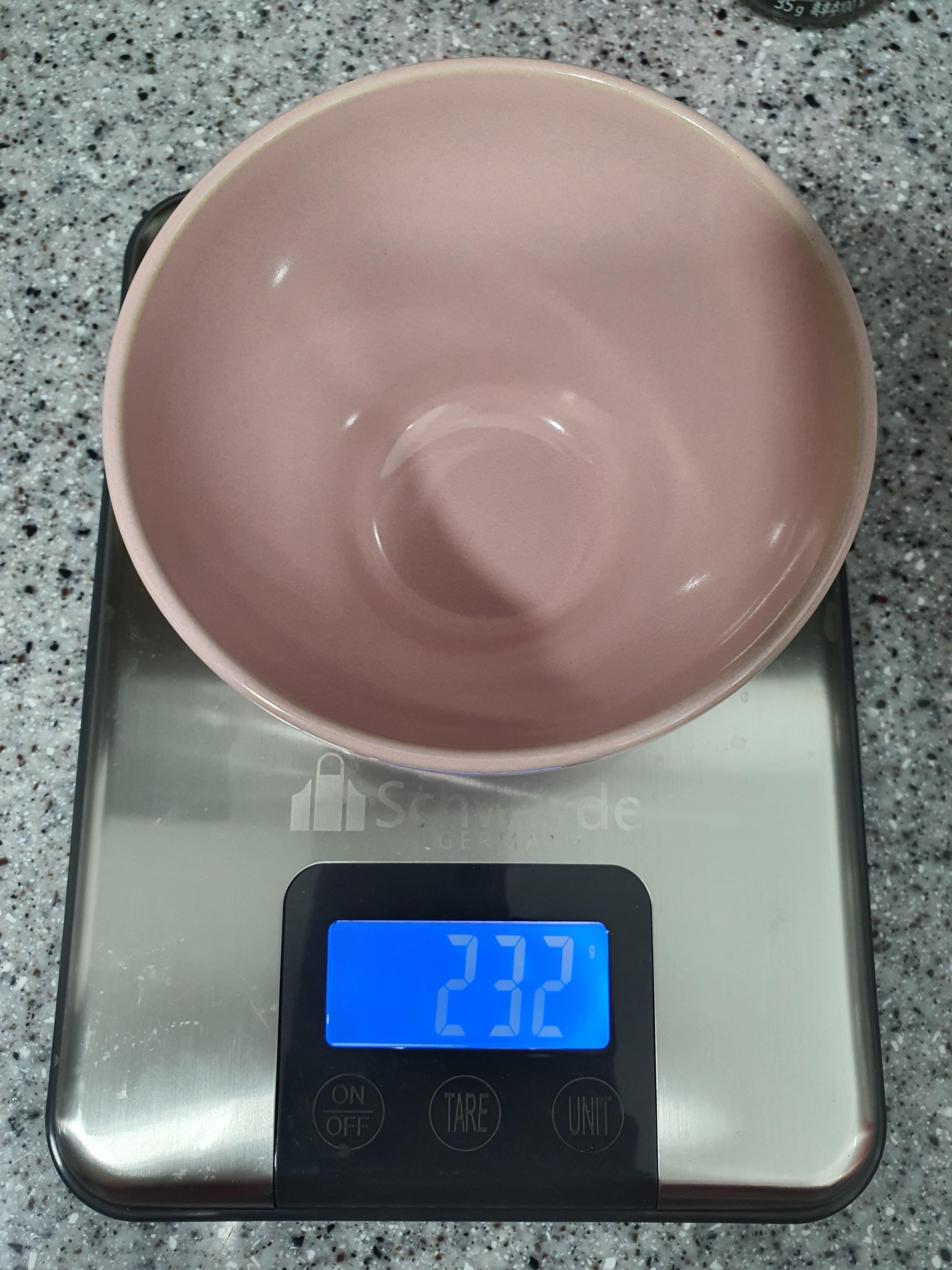 문득 새로 구입한 그릇이 더 가벼워 진 것 같아서 무게를 재 보고 싶어졌습니다. 아니나 다를까, 역시 새그릇이 제일 가볍습니다.
