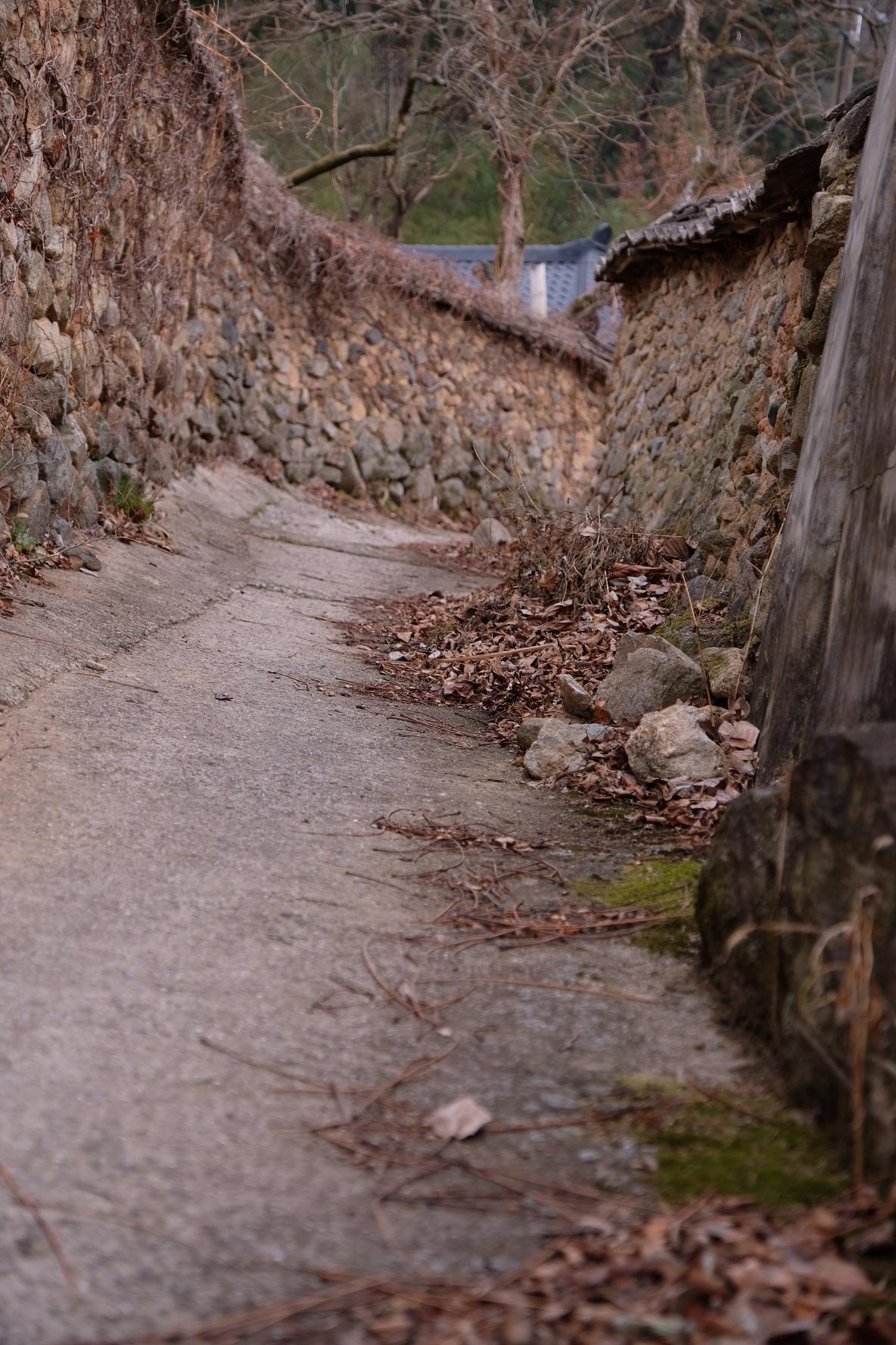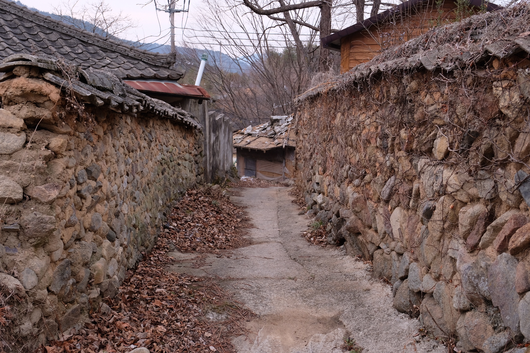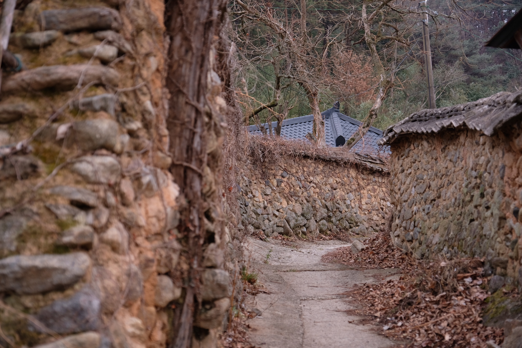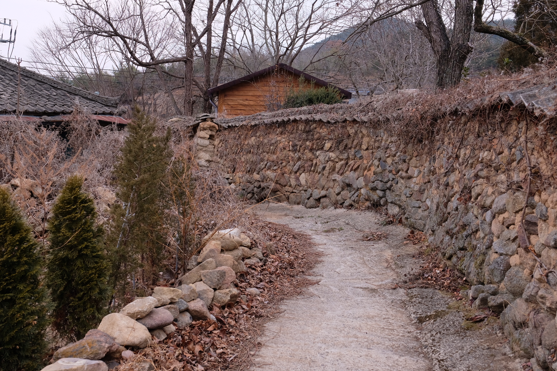 따뜻한 봄날에 만났다면 정말 예뻤을 것 같은 돌담길이에요. 겨울이라 조금은 쓸쓸한 풍경입니다.