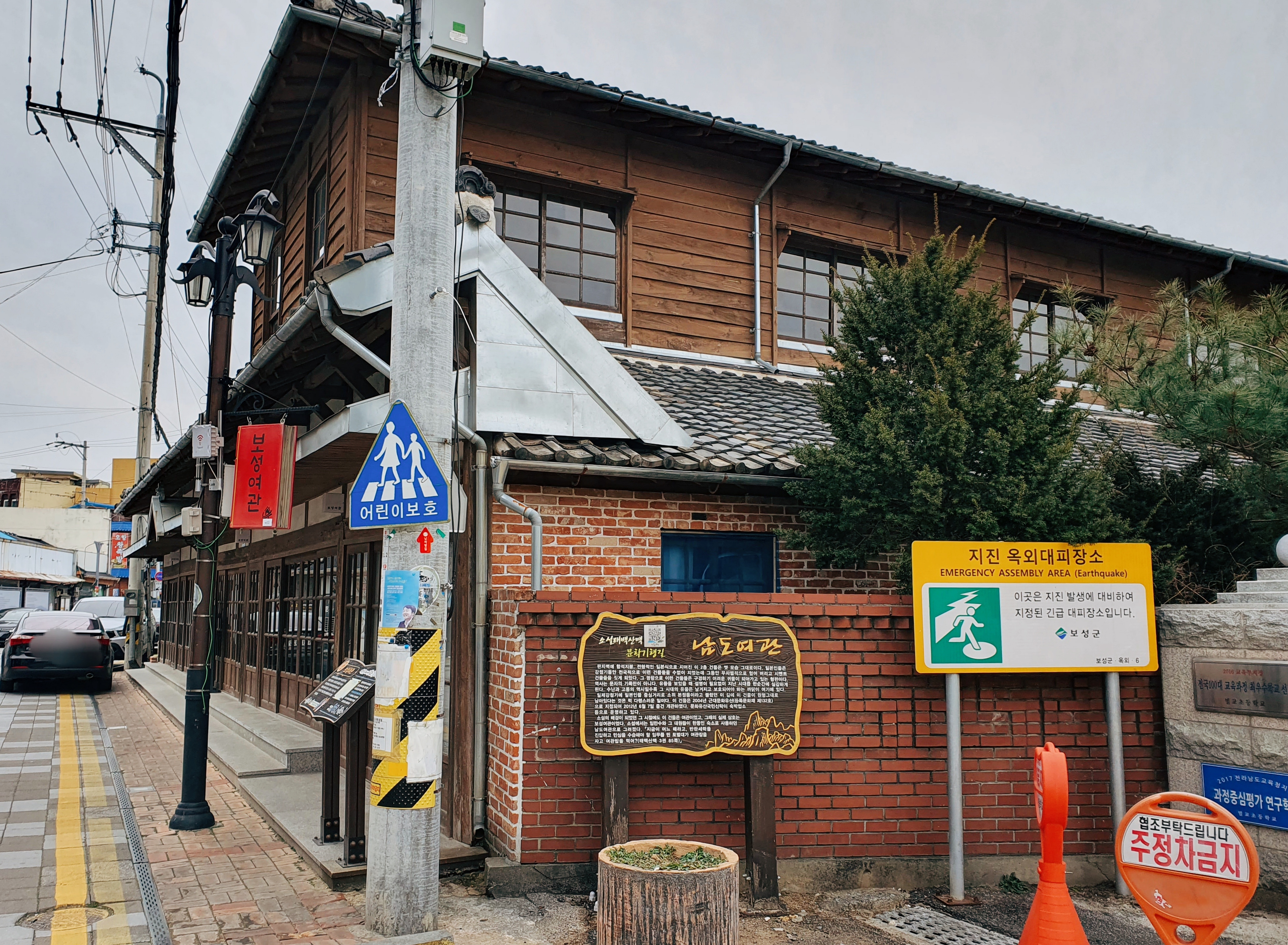 벌교에 꼬막 정식을 먹고 나오는 길에, 일본식 가옥과 한옥 양식이 섞인 건물이 늘어서 있는 거리를 만났습니다. 동네 풍경이 낯설고 신기해서 잠깐 동네 산책을 하다보니 보성여관을 만났습니다.