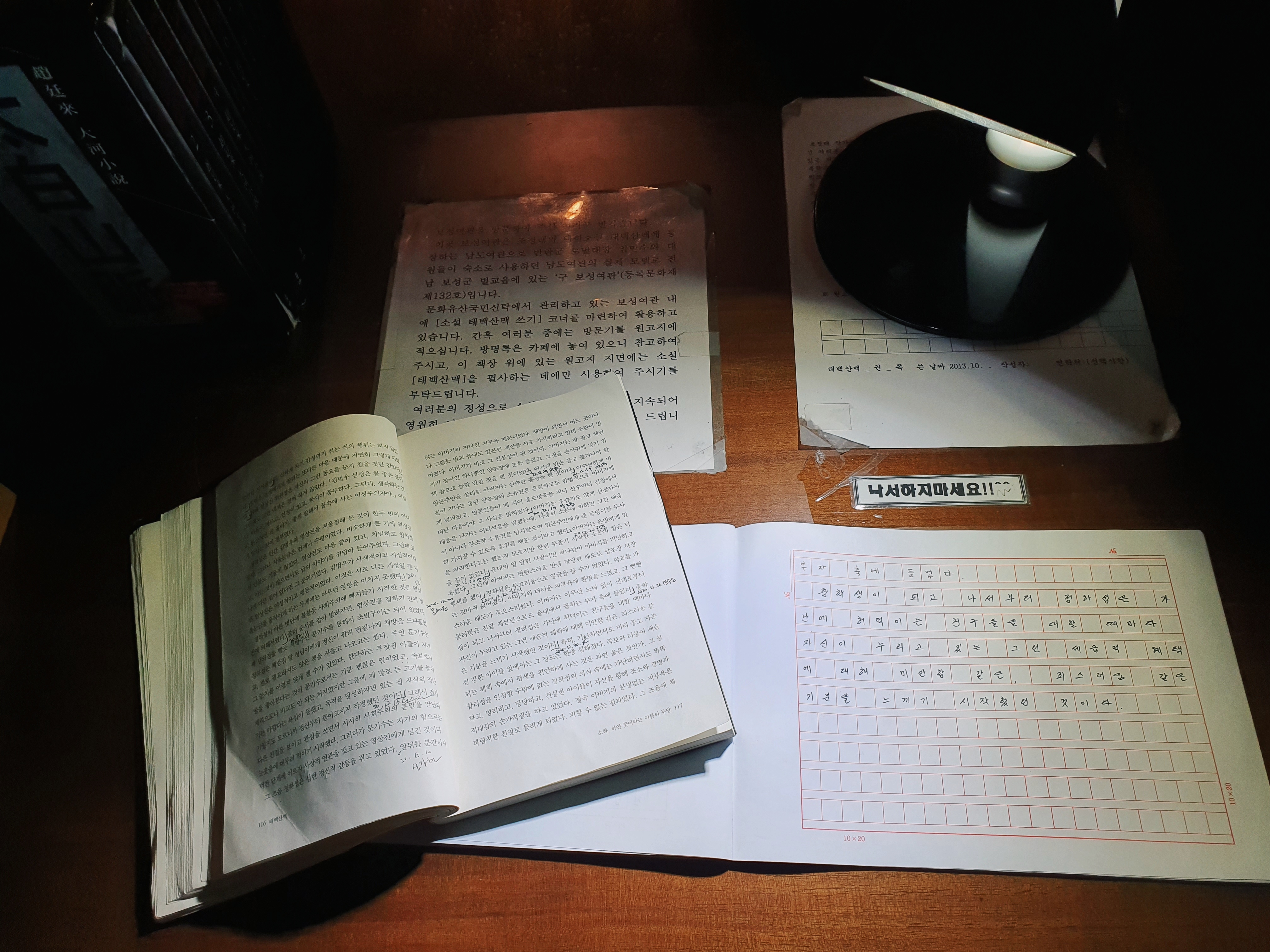 전시실 깊숙한 곳에는 태백산맥 소설을 누구나 직접 필사할 수 있는 공간이 있습니다. 앞서 쓰신 분들의 글씨체가 너무도 정갈해서...^^; 구경하다가 나왔습니다.