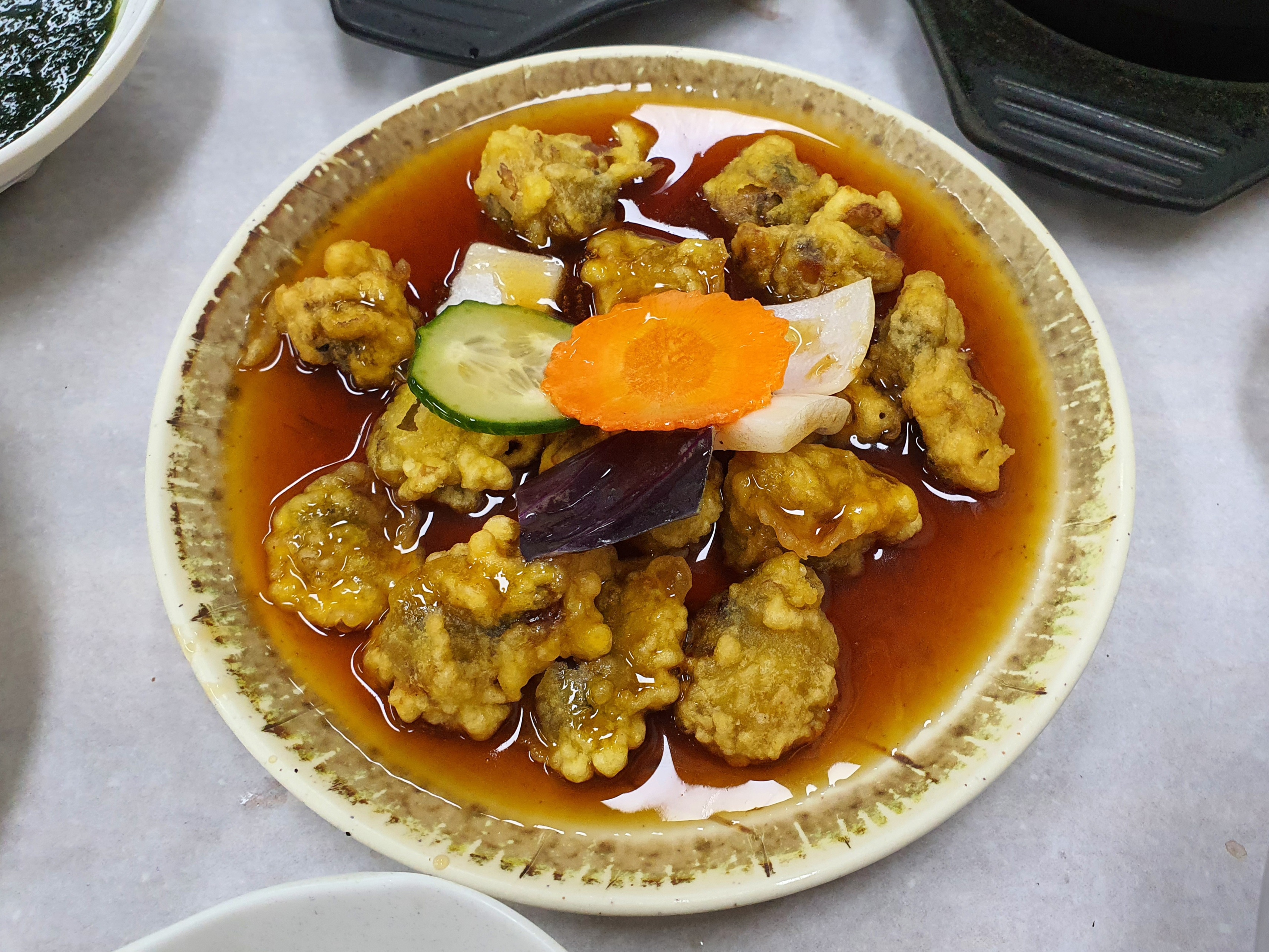 반찬 중에서는 매생이국이 꽤 맛있었습니다. 꼬막 탕수육은 바로 튀겨낸 게 아니라 맛이 조금 아쉬웠습니다.