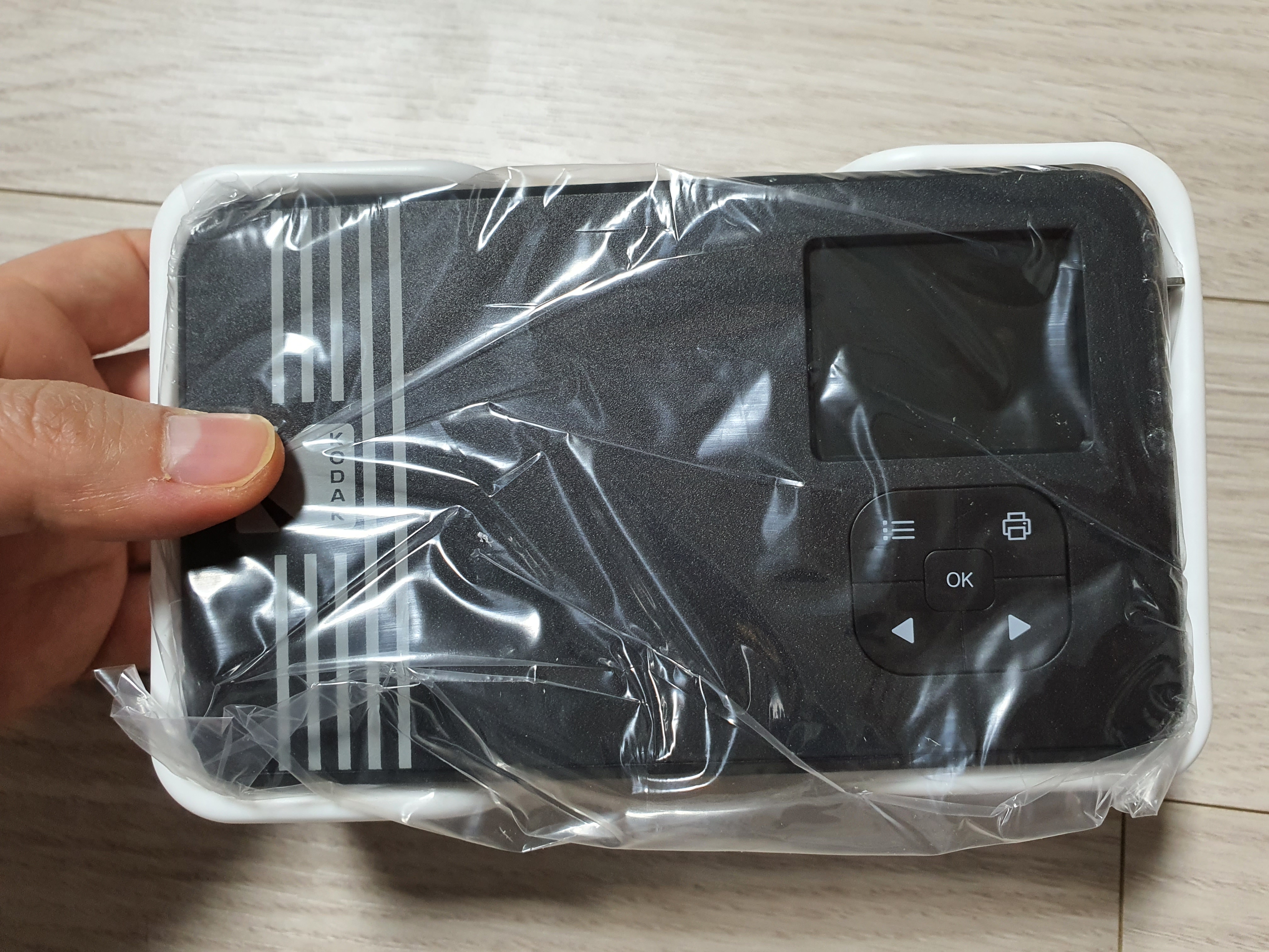 제품 뒷면에는 사진을 찍고 볼 수 있는 LCD창이 있습니다. 그리고 메뉴버튼, 프린트버튼, 좌우 이동 버튼, OK 버튼이 있어요.