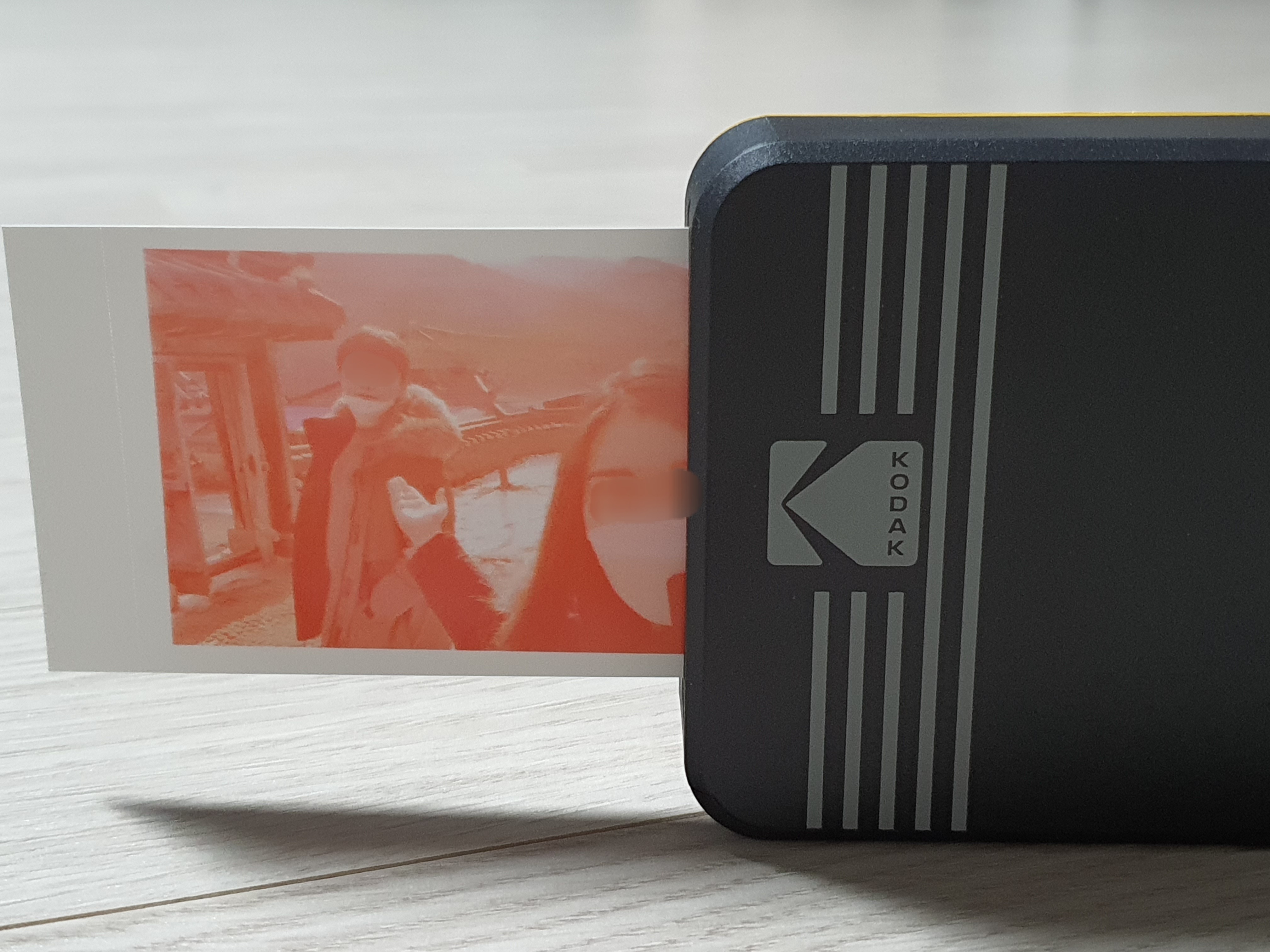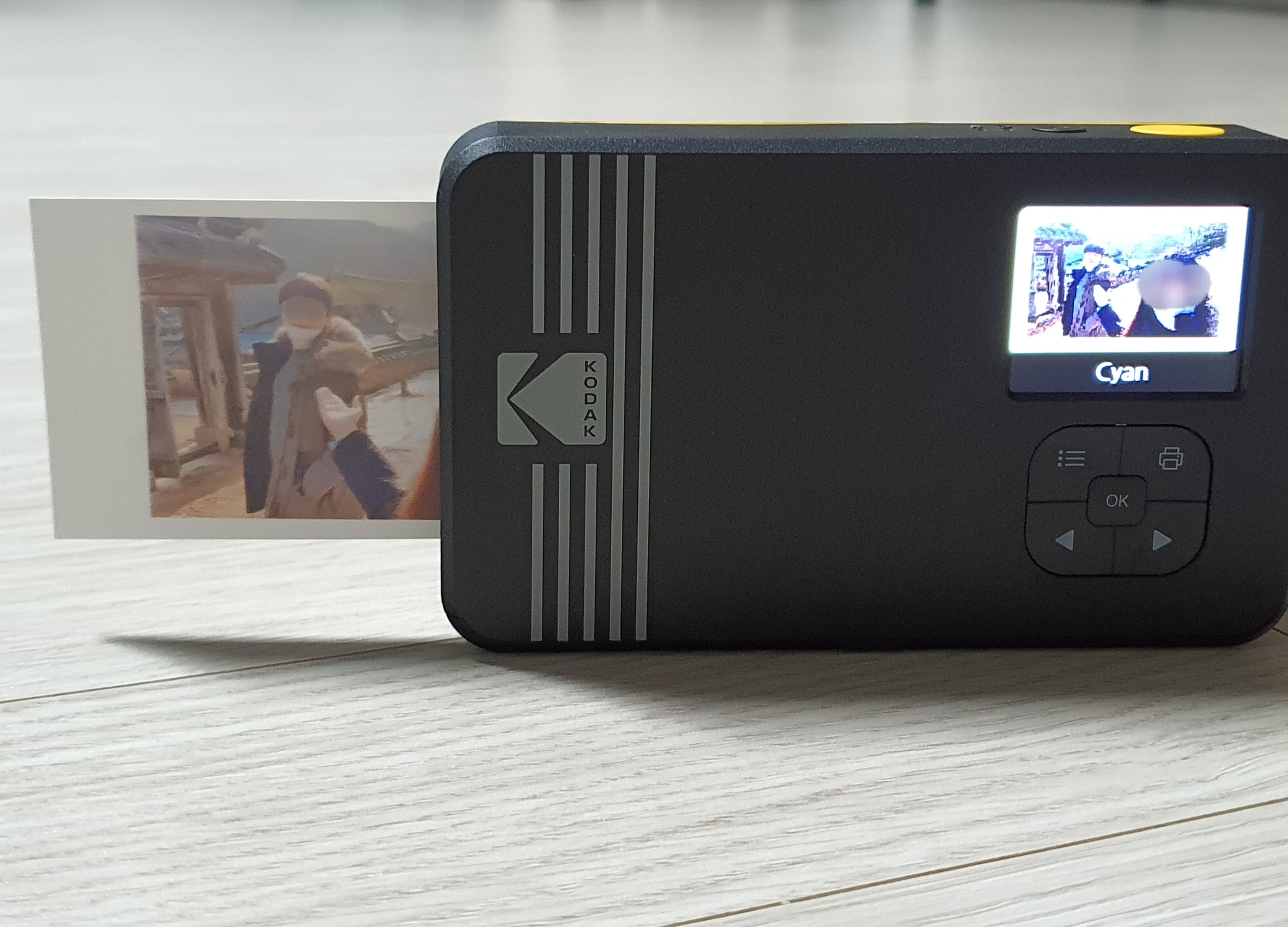 프린터는 염료승화형 (4PASS) 방식으로 인쇄한다고 합니다. CMYK (Cyan, Magenta, Yellow, Black) 색상을 한 번씩 인쇄하여 사진의 색상을 만들어 냅니다. 처음에는 노란색 사진이 잠깐 나왔다가 다시 들어가더니, 붉은색이 덧입혀진 사진 나오고, 과정이 반복되면서 점점 사진이 완성되어가는 모습을 볼 수 있습니다.