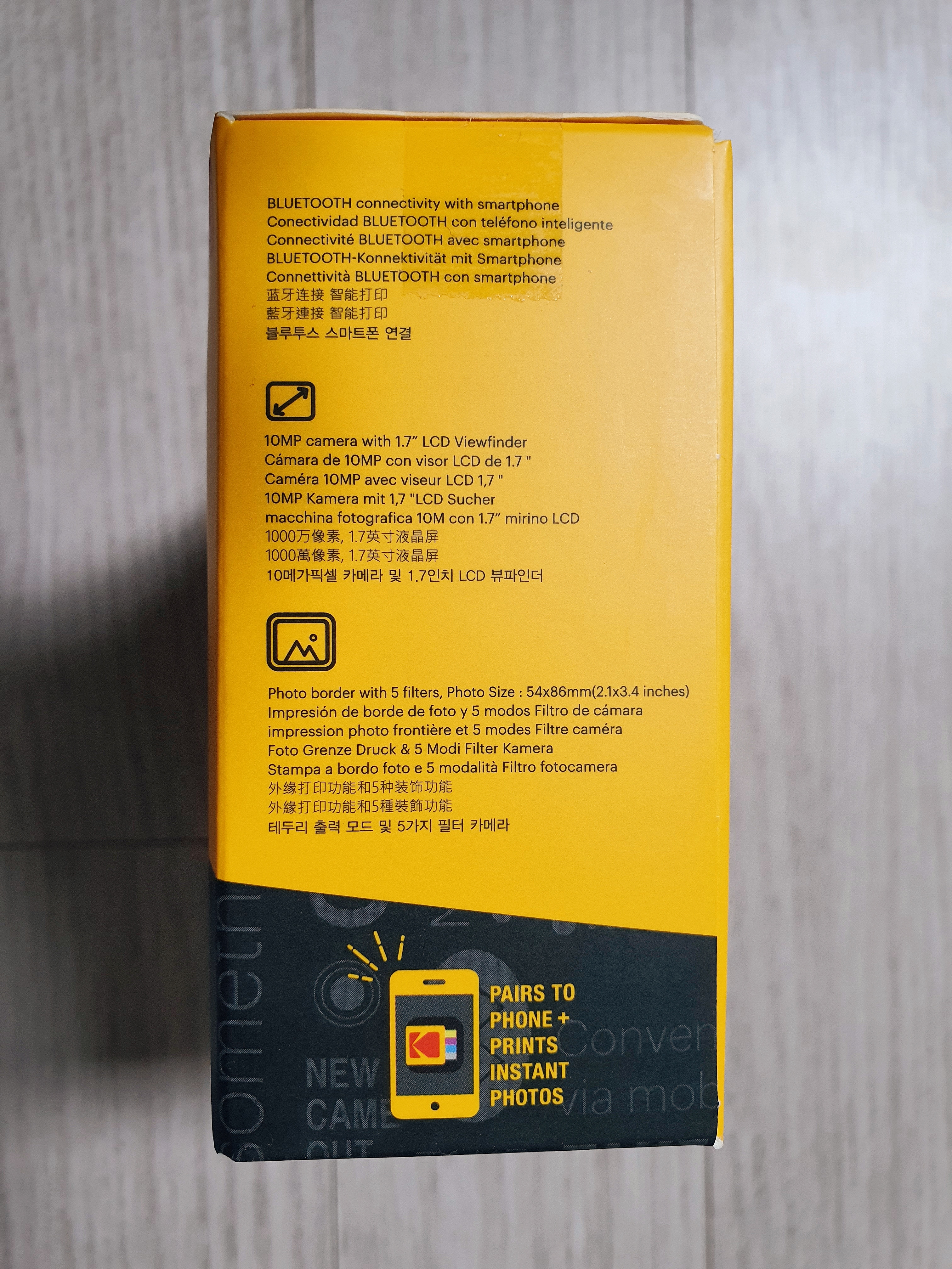 미니샷2 안에 8팩 포토페이퍼가 미리 들어있습니다. 카메라는 휴대폰과 블루투스로 연결해서 사진을 프린트할 수 있습니다.