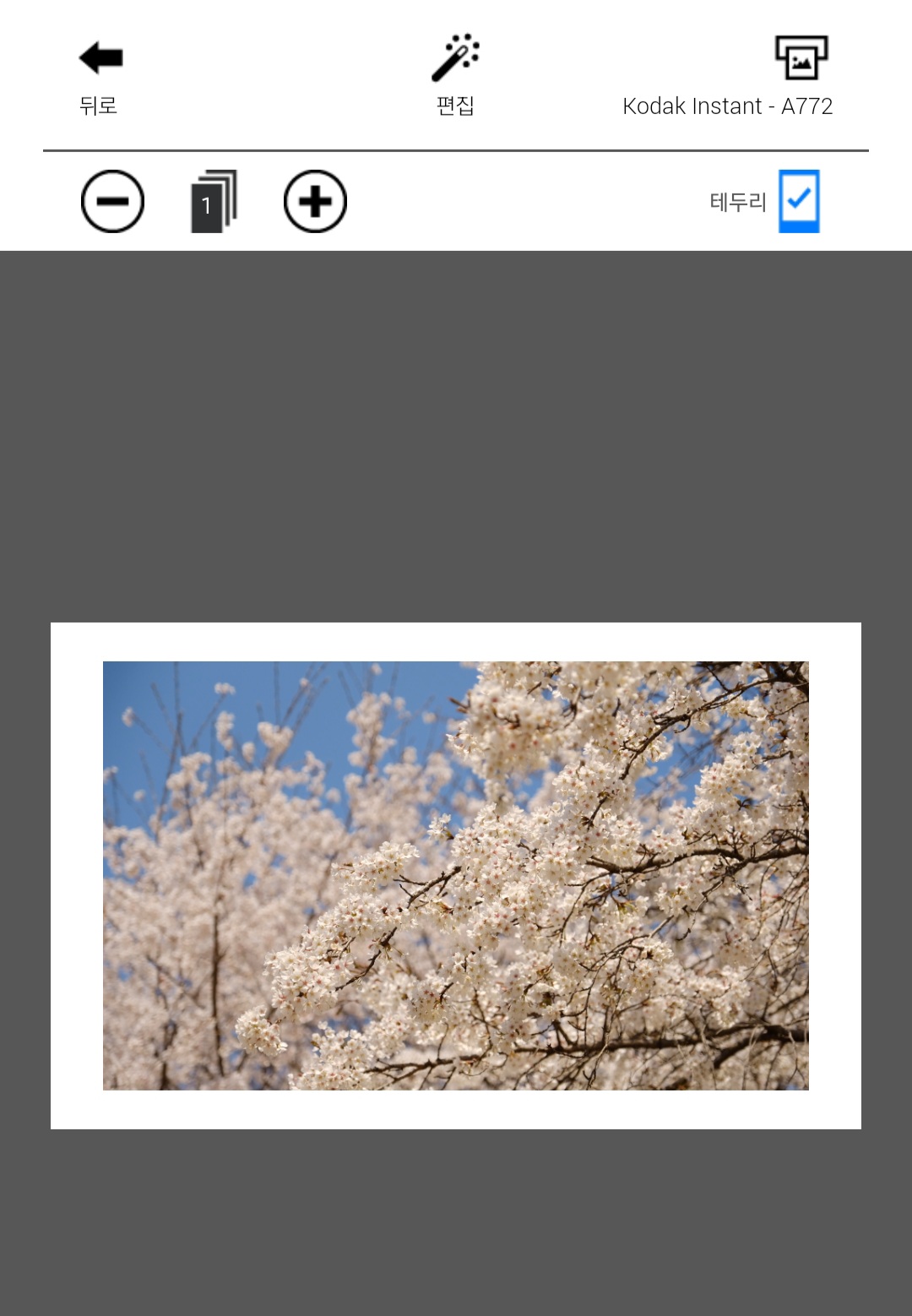 사진은 테두리를 넣을 수도, 테두리 없이도 인쇄할 수 있습니다. 약간 취향에 따라 갈리겠지만, 몇 번 인쇄해보니 저는 테두리가 없는 쪽이 더 좋은 것 같습니다. 테두리가 살~짝 삐뚤게 인쇄되는 것 같아서 뭔가 좀 인위적인 느낌이 들었어요.