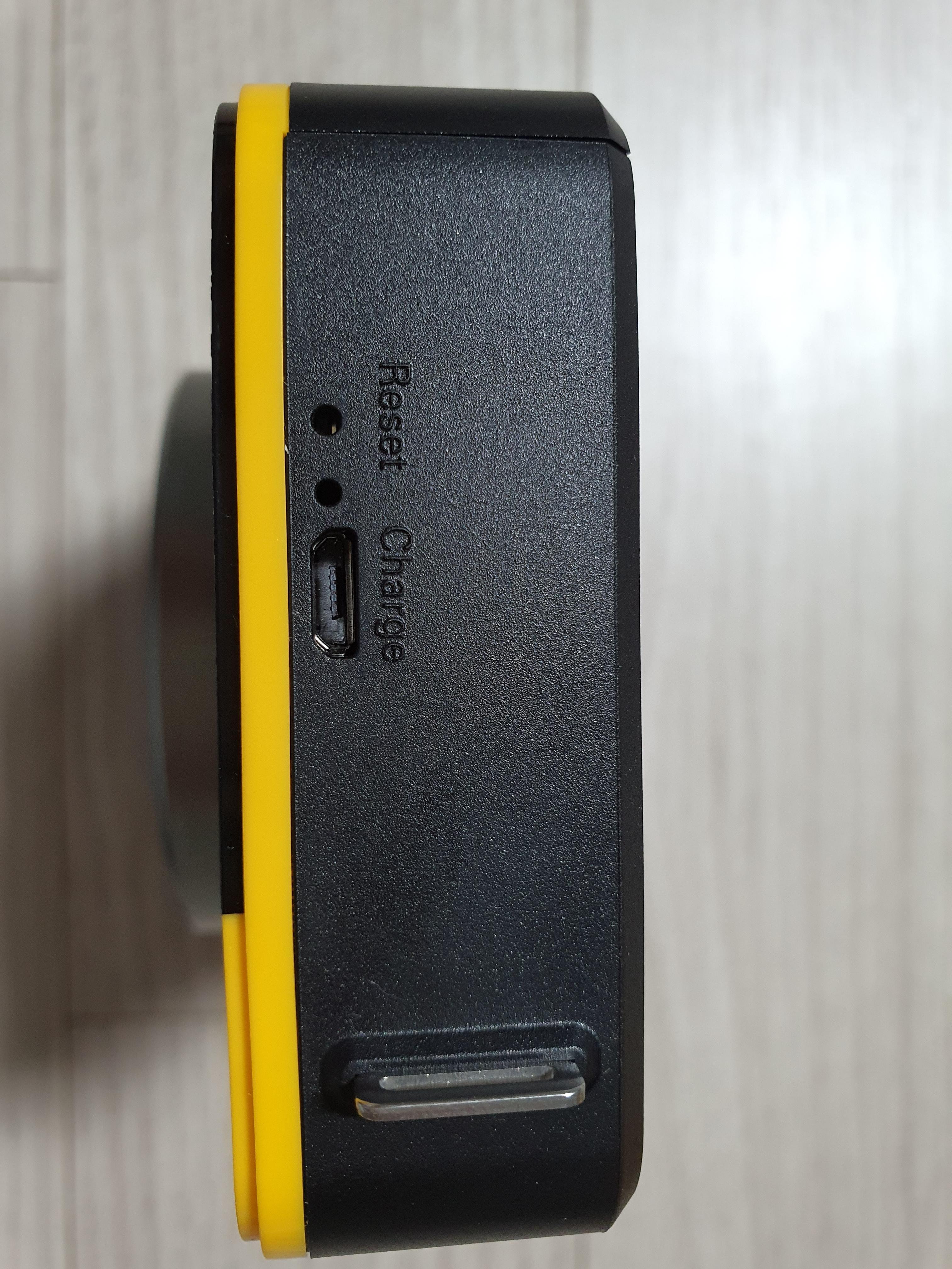 제품 오른쪽에는 사진이 프린트 되는 곳, 왼쪽에는 리셋버튼과 5핀 충전 포트를 꽂을 수 있는 곳이 있습니다.