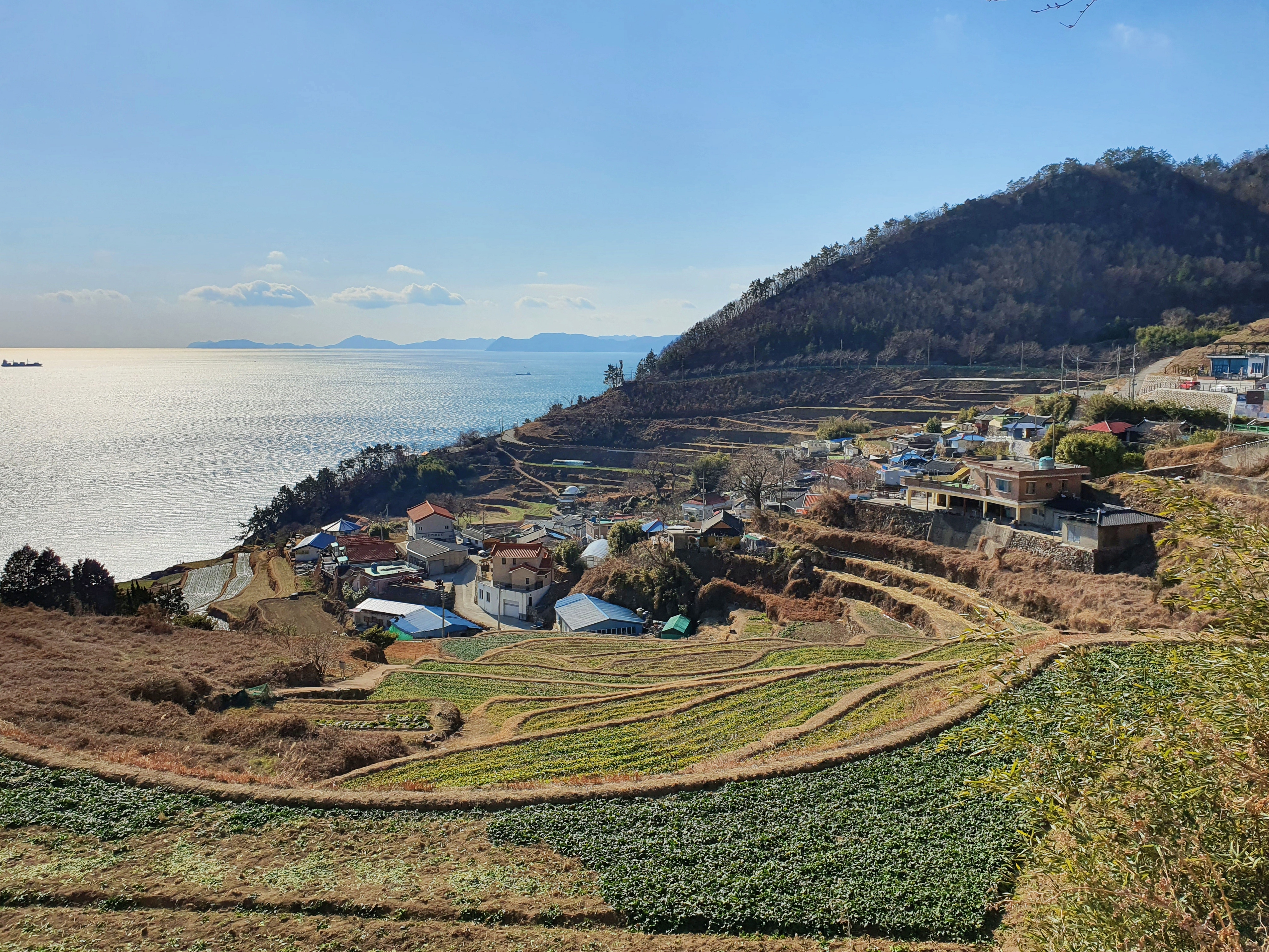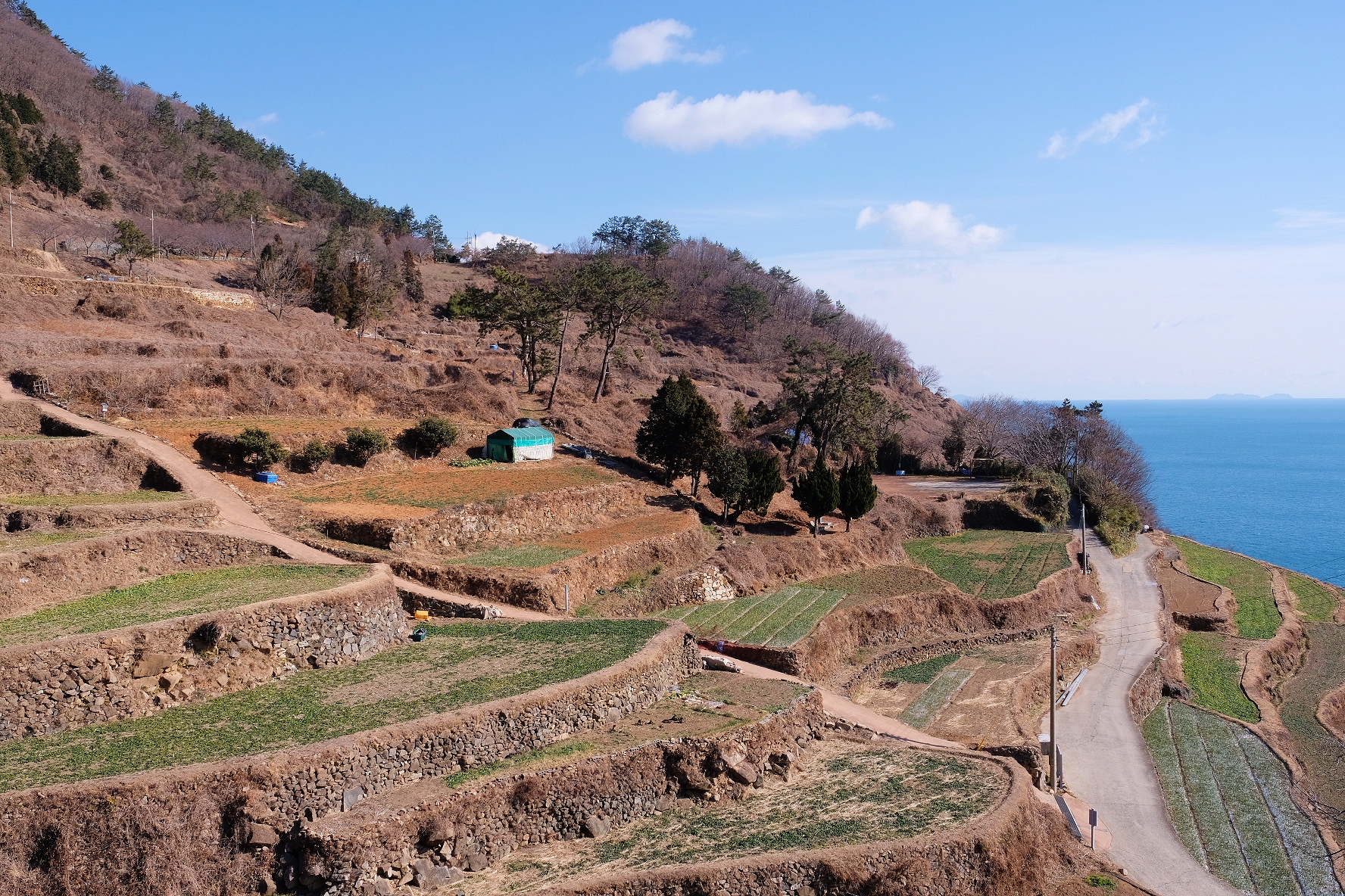 작은 공간도 아껴서 만든 계단식 논밭이 경이로워요. 그 옛날 선조들은 어떻게 다랭이논을 만들었을지 정말 신기합니다.