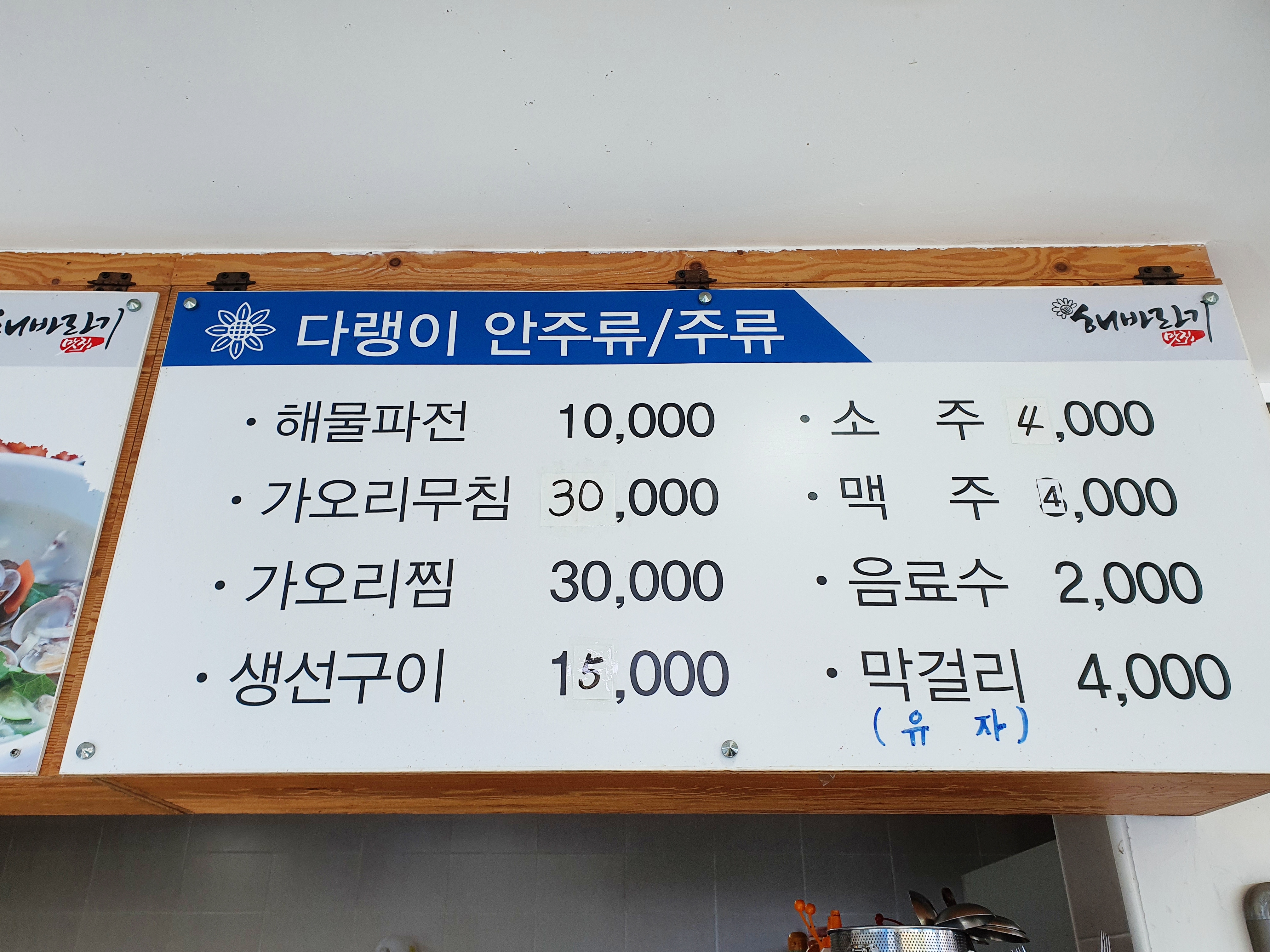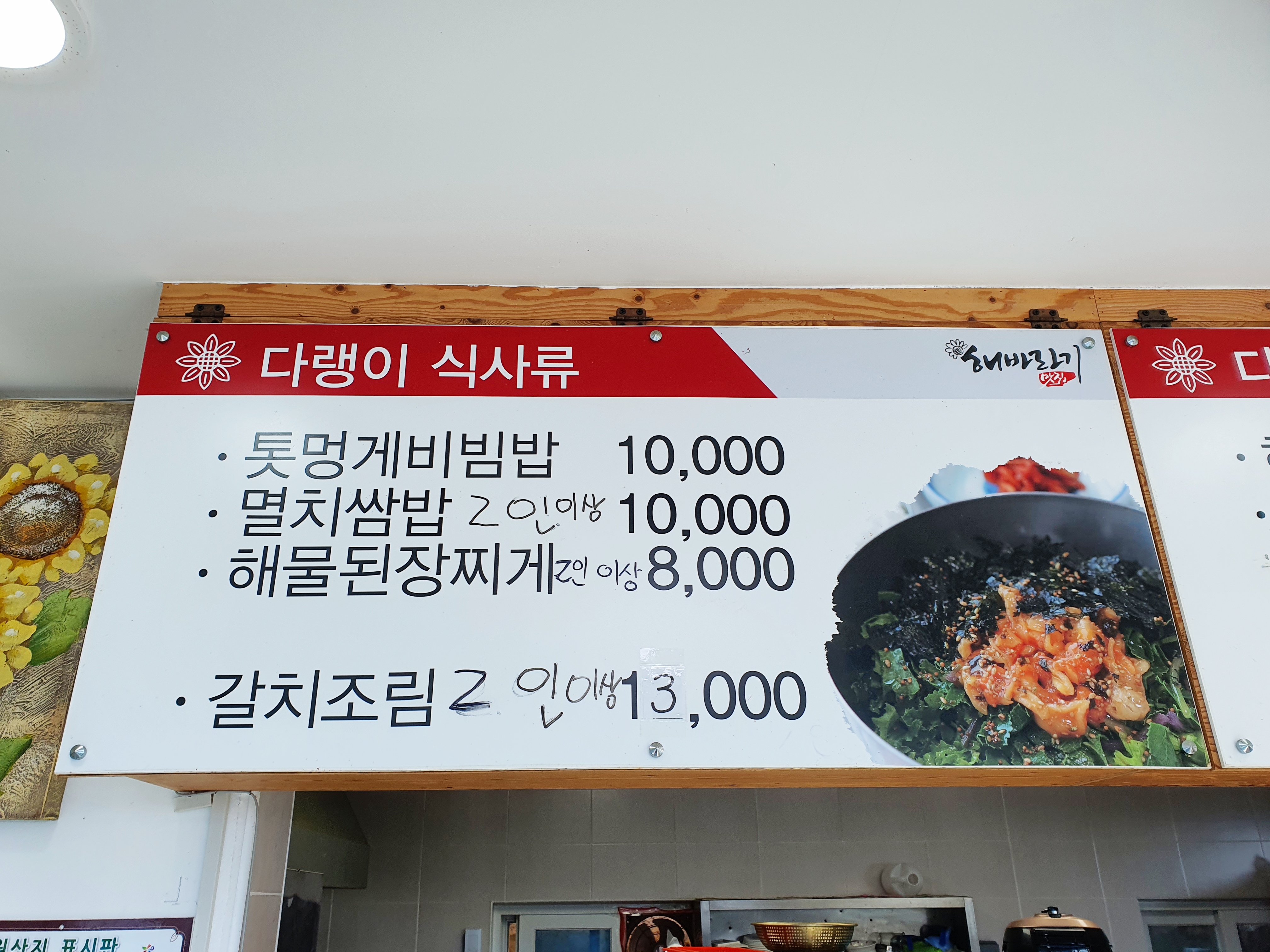 톳멍게비빔밥은 10,000원, 그 외 메뉴도 8,000~15,000원으로 가격대는 적당한 것 같습니다.