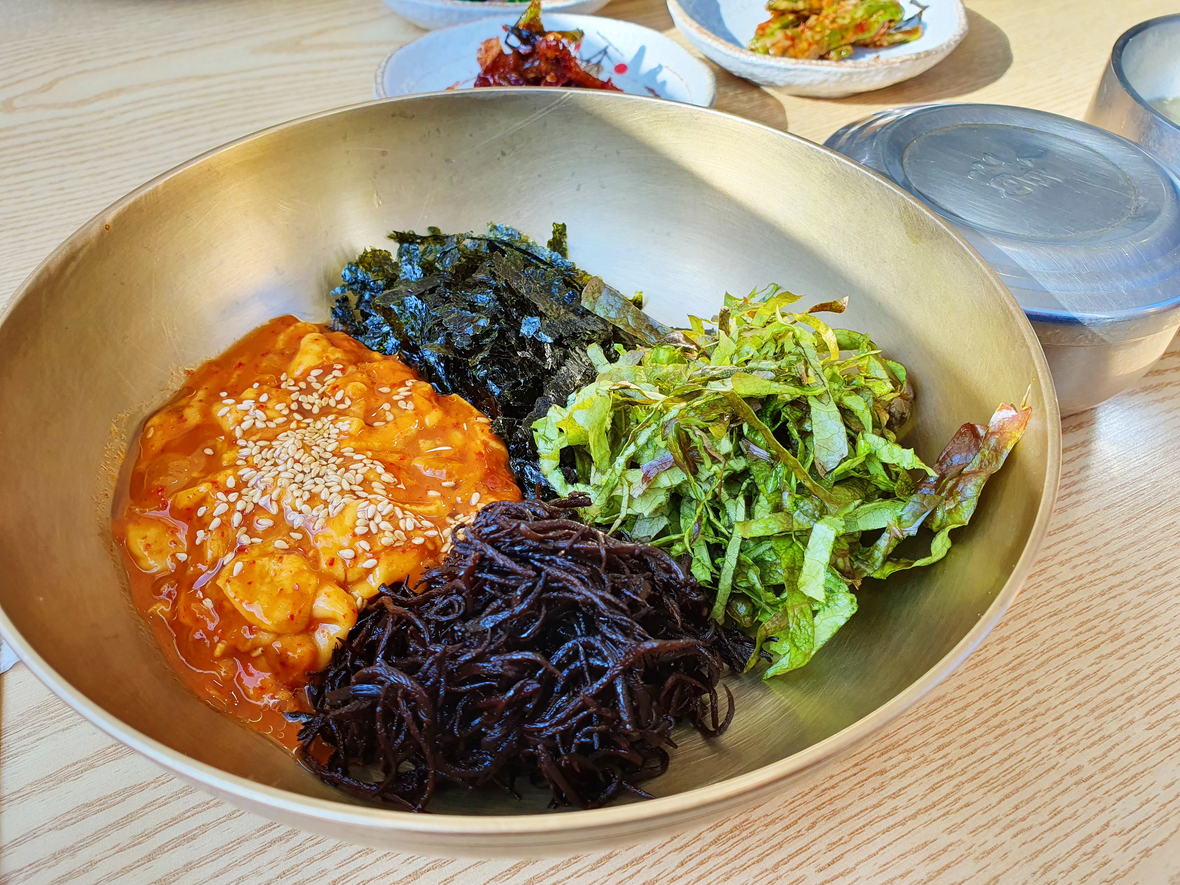 위치가 좋은데 있어서, 다른 식당보다 손님이 많이 찾아오는 듯했습니다. 저희는 톳멍게비빔밥을 주문했어요. 예전에 통영 가서 먹어본 후 반해서 제가 무척 좋아하는 음식이거든요.