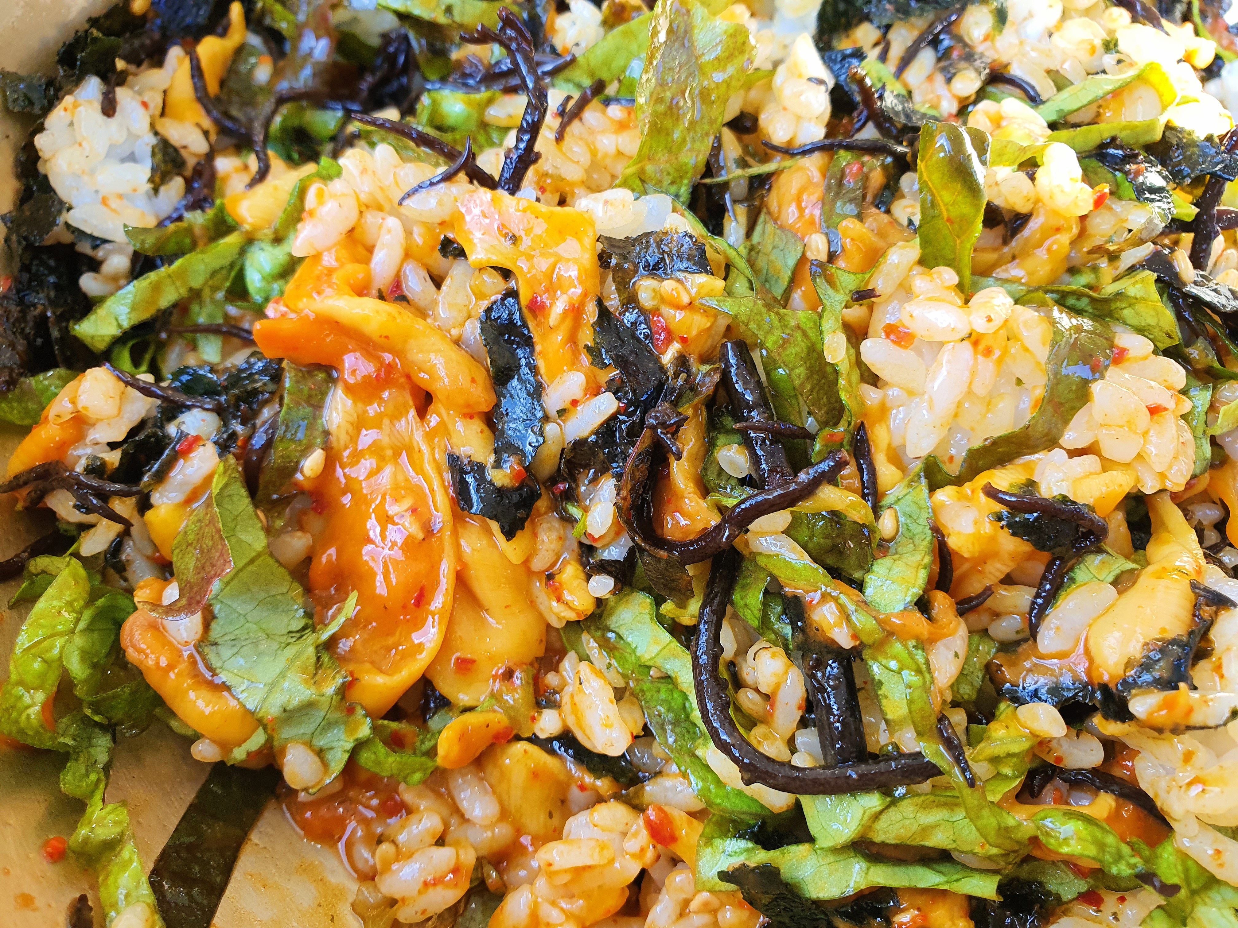 드디어 오늘의 메인, 톳멍게비빔밥입니다. 멍게와 톳이 정말 많이 들어가 있어서 좋았습니다. 바다내음이 진짜 물씬 풍겼어요.