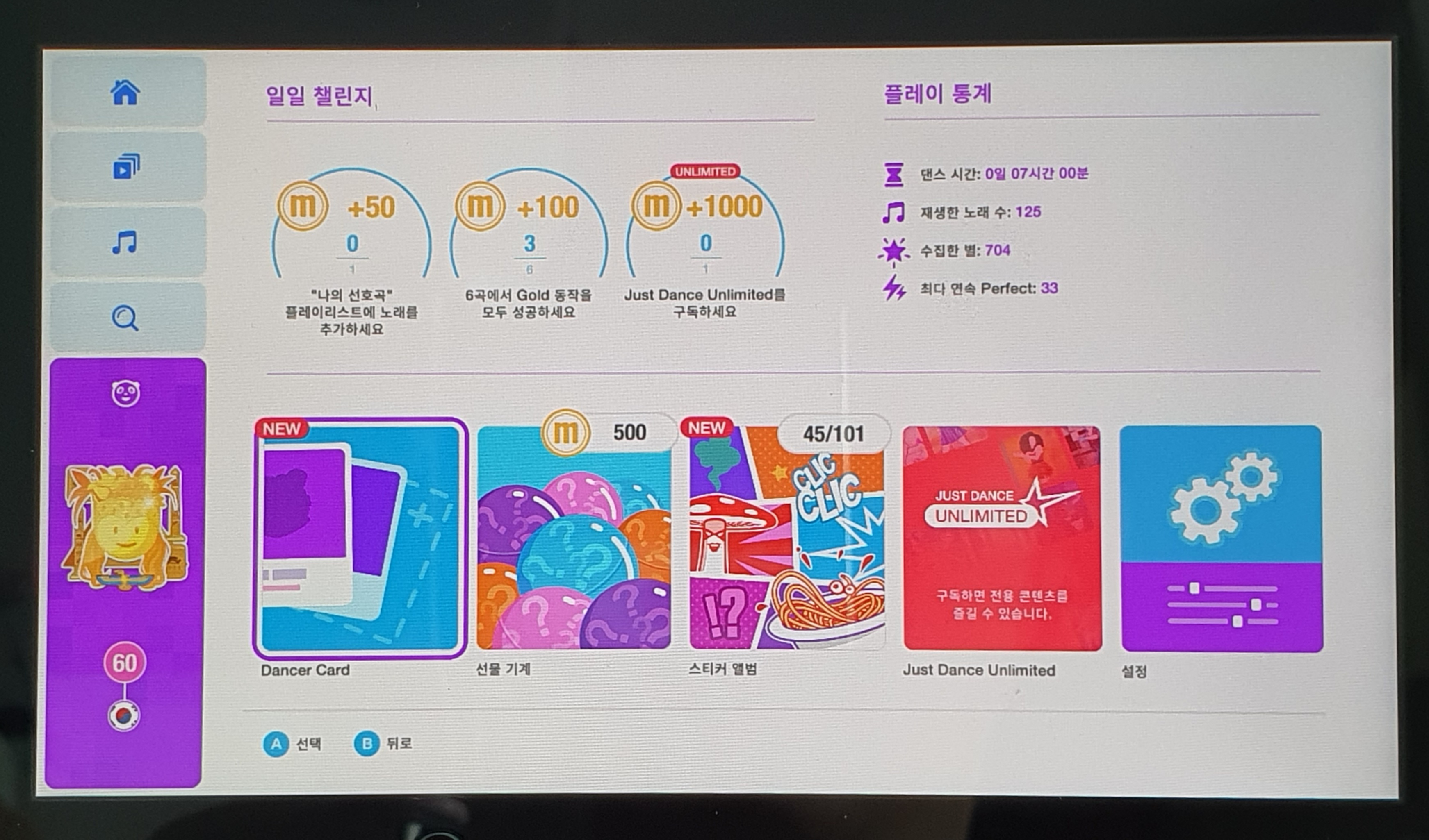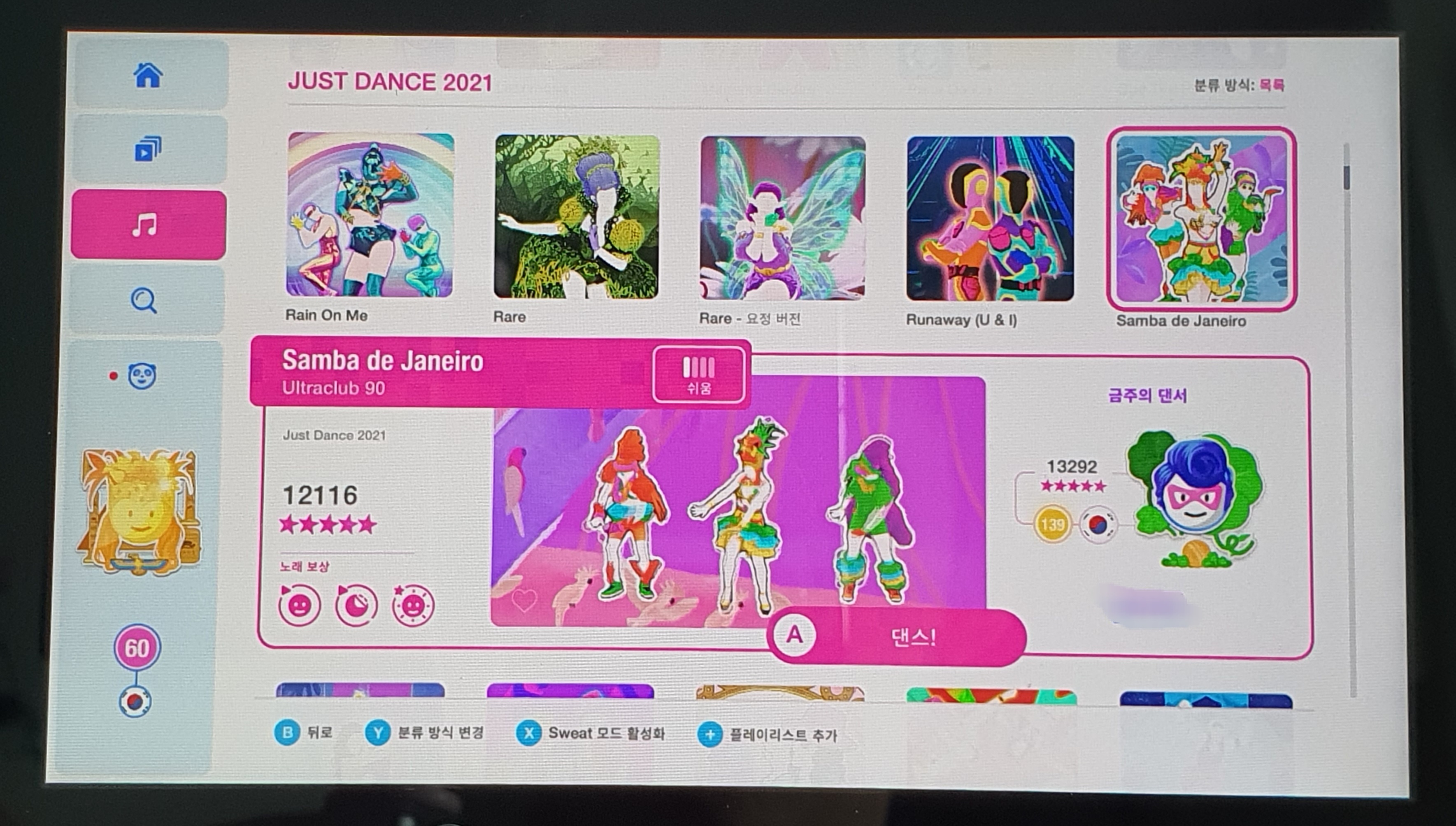 그리고 처음에는 한 3곡 추면 힘들다고 헥헥 거렸는데, 이제는 왠만하면 대여섯 곡도 거뜬히 춥니다. 춤 실력은 많이 늘어난 것 같진 않은데, 왠지 반사신경과 신체 반응속도가 빨라진 듯한 느낌입니다..! 운동은 확실히 되는 것 같습니다. 링피트보다 훨씬 재밌고요.