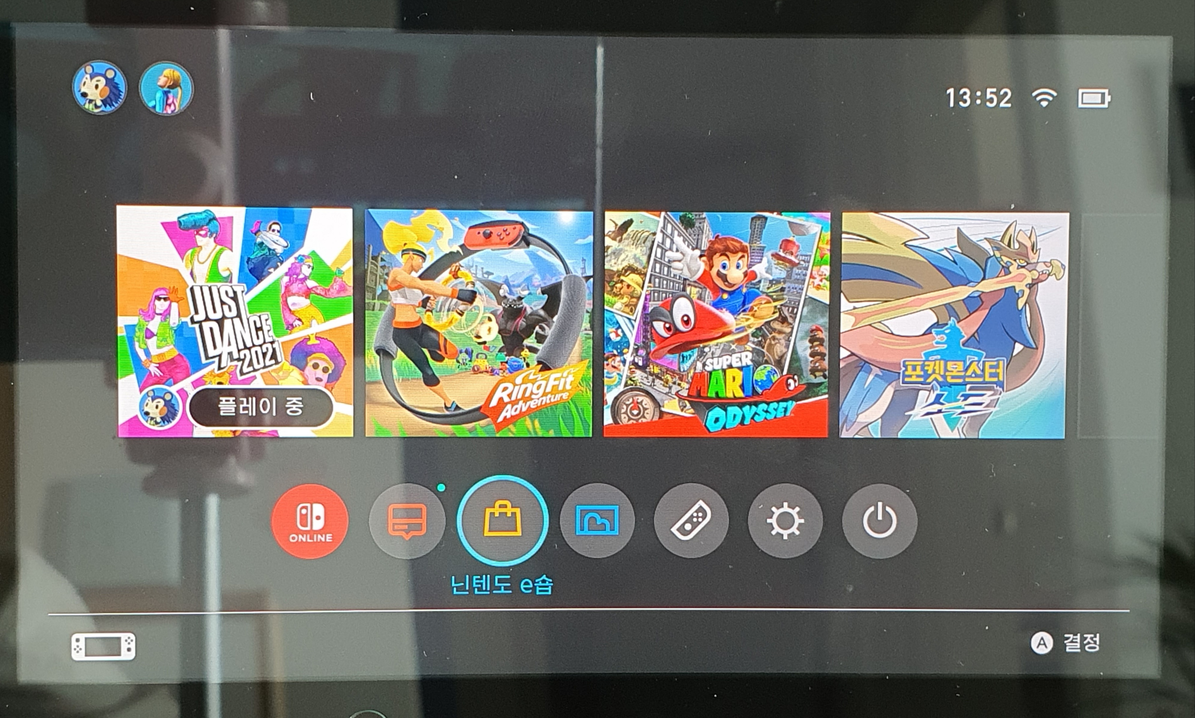 밑에 7개의 동그라미 중, 3번째 닌텐도 e숍으로 들어가야 합니다. 첫번째 동그라미는 닌텐도 스위치 온라인인데, 한국에서는 이용 불가입니다. 처음에 닌텐도 스위치 온라인으로 들어가지지 않아서 국가를 변경해야 하나 고심했는데, 닌텐도 e샵이 따로 있었더라고요.