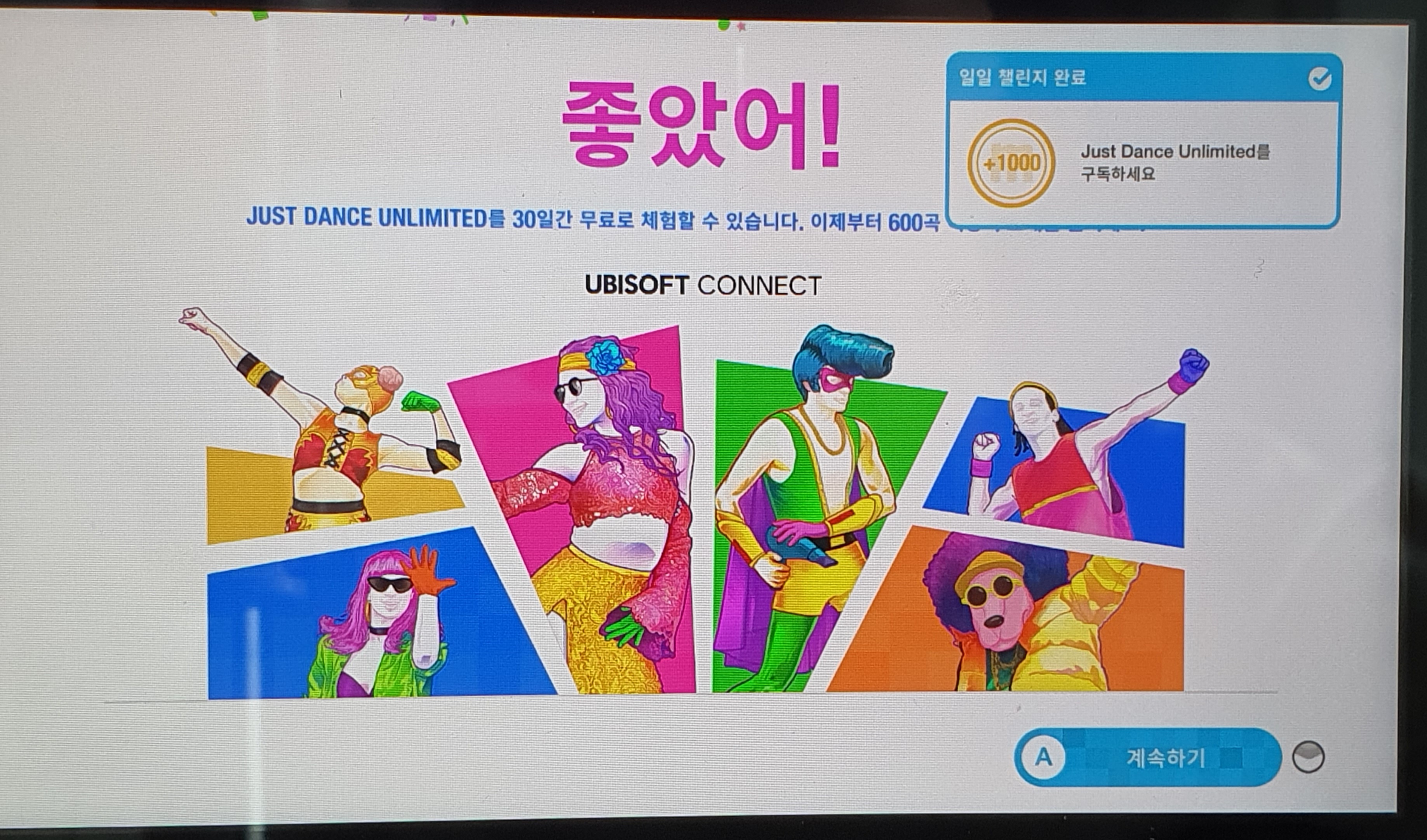 저스트댄스에서는 자꾸 언리미티드 등록을 강요(?)합니다... 아직 언리미티드 체험판 활성화 전인데, 자꾸 언리미티드 곡이 나옵니다. 일단 오른쪽 아래 잠금 해제를 들어가서 체험판 활성화를 시작해 봅니다.