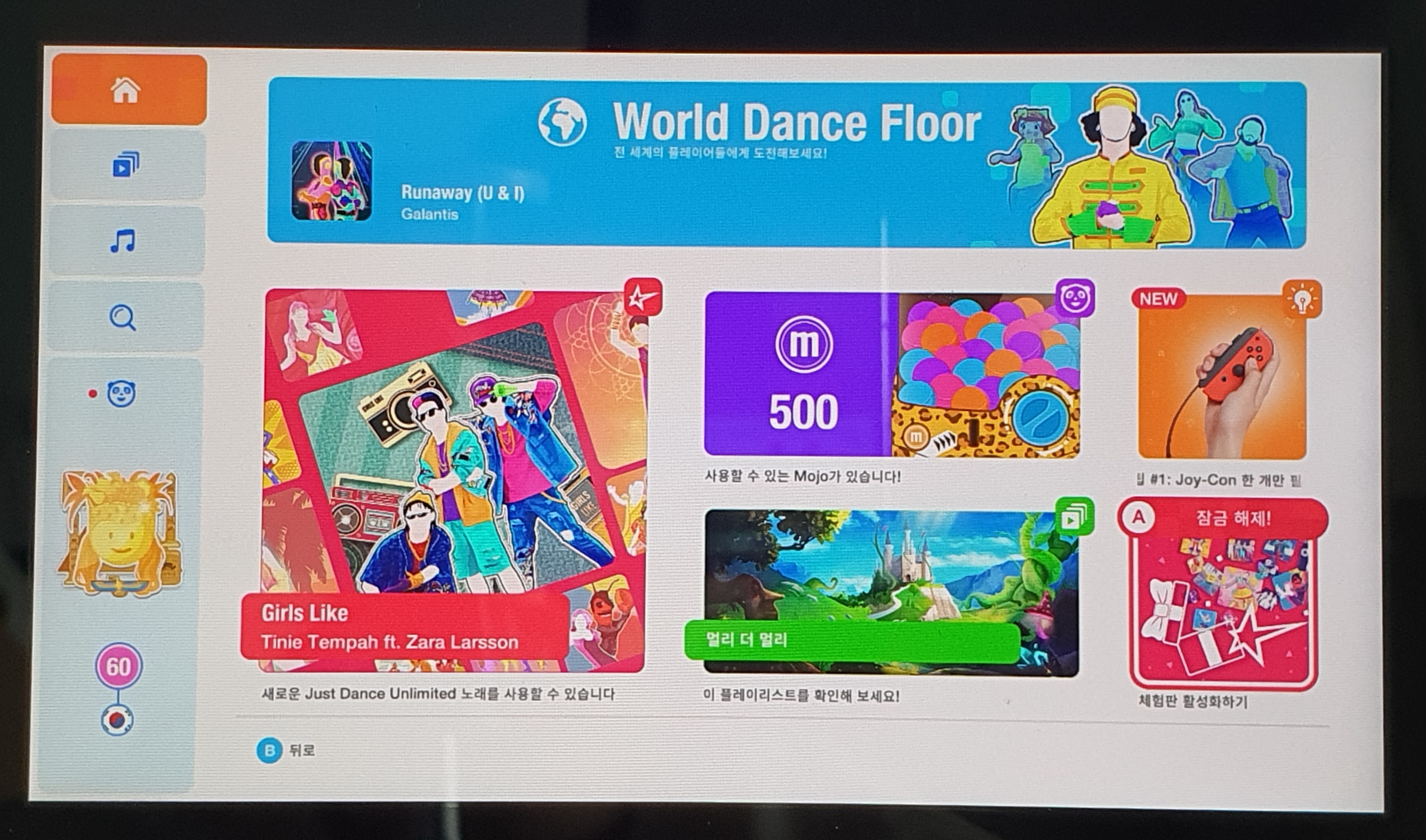*저스트댄스는 캡처를 막아놓은 것 같습니다. 그래서 화면을 직접 찍었기 때문에 화질이 좋지 않습니다.