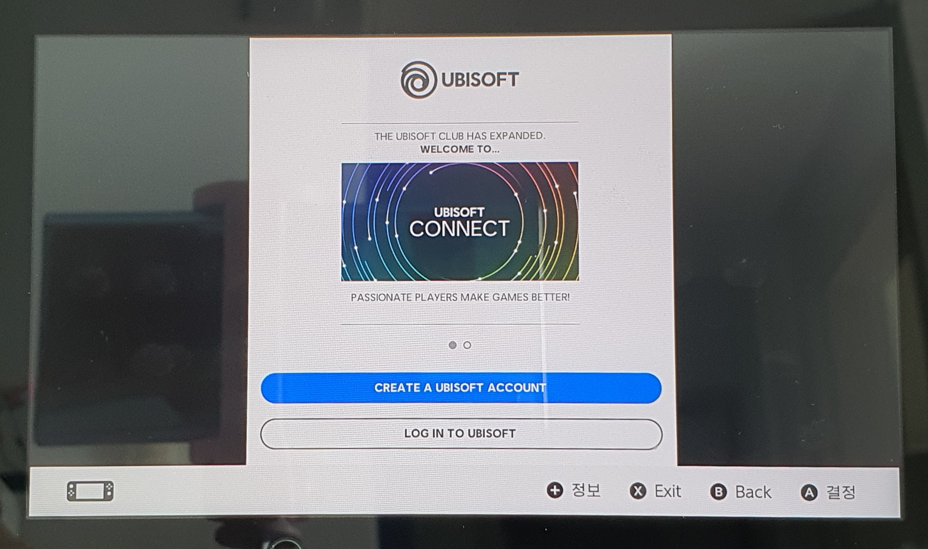UBISOFT CONNECT가 뜹니다. 닌텐도 e숍에 닌텐도 계정 로그인이 되어 있다면, 바로 체험판 활성화가 됩니다. 그렇지만 제 닌텐도 기기에서는 e숍을 한 번도 들어간 적이 없어서 홈 화면으로 갔습니다.