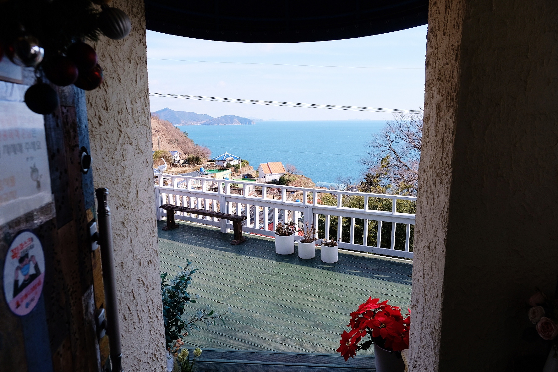 카페 입구에서 뒤를 돌아보았더니 풍경이 세상에, 정말 예쁘더라고요! 그래서 한 컷 남겨보았습니다.