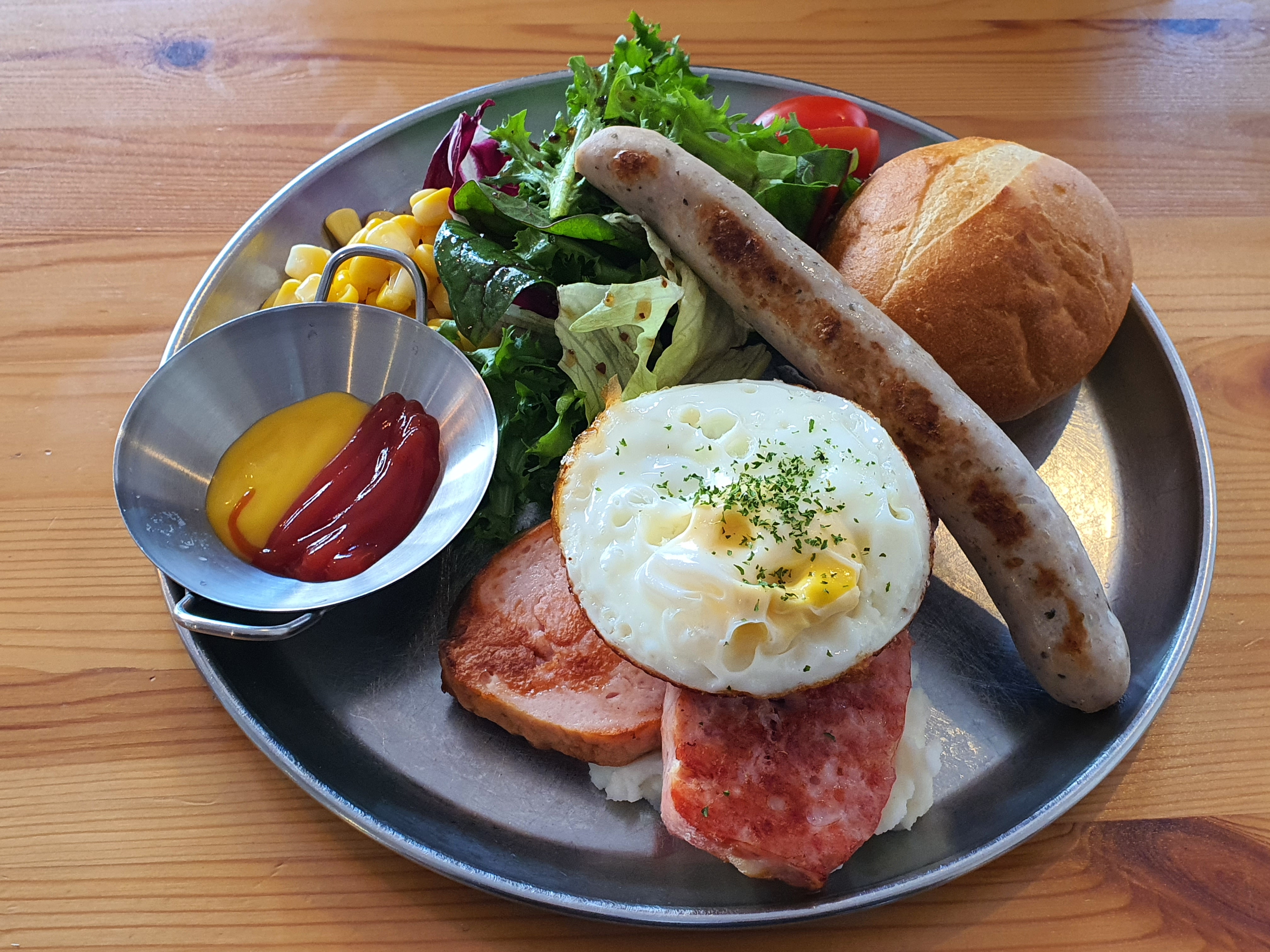 드디어 음식이 나왔습니다. 위 사진이 독일 가정식 플래터, 아래 사진이 커리부어스트입니다. 음식 가격이 각각 10,000원이라 양은 푸짐한 편은 아니지만, 점심에 먹기에는 괜찮았습니다.