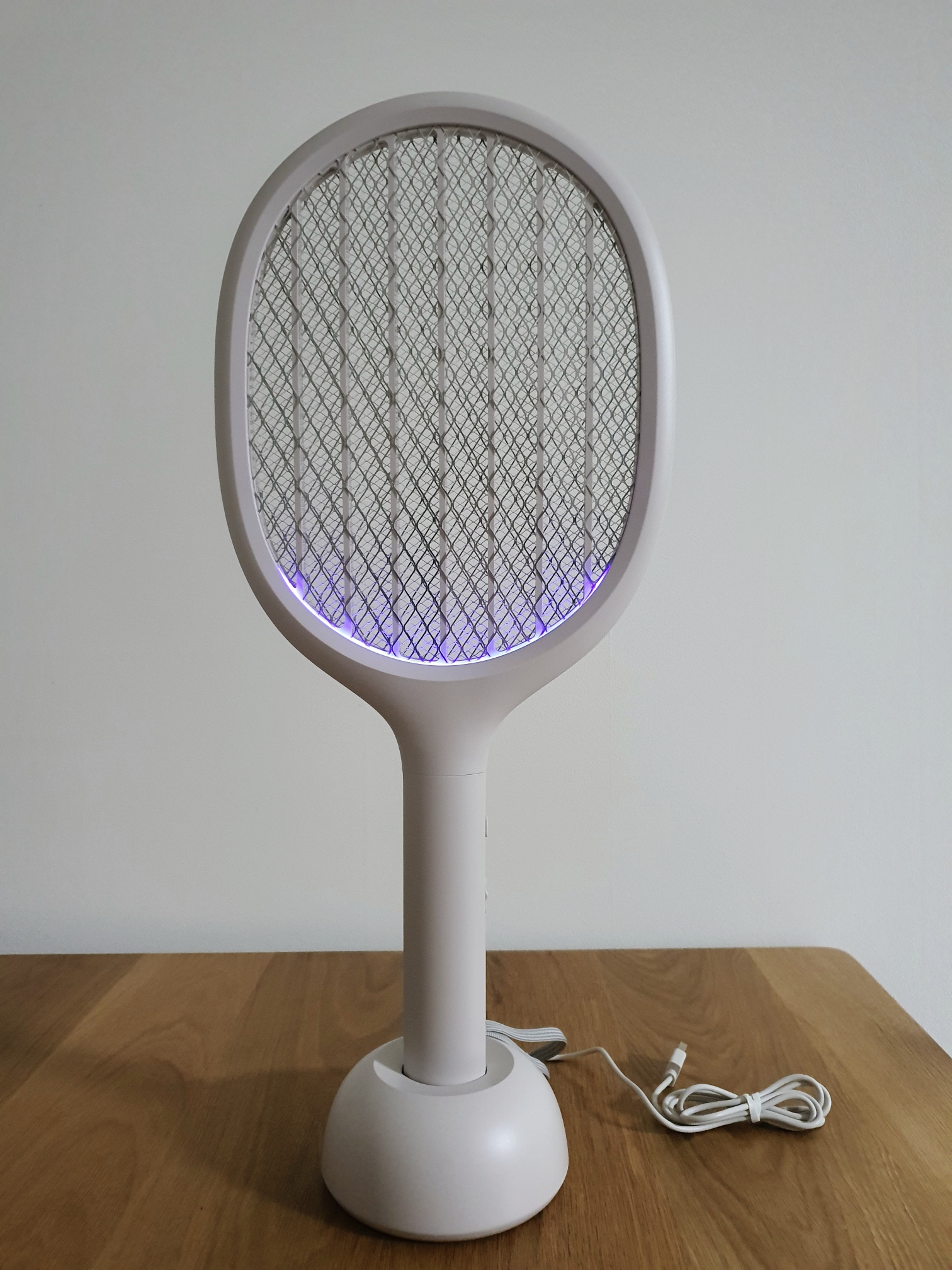 전기모기채 반대쪽에 충전기를 꽂을 수 있다.