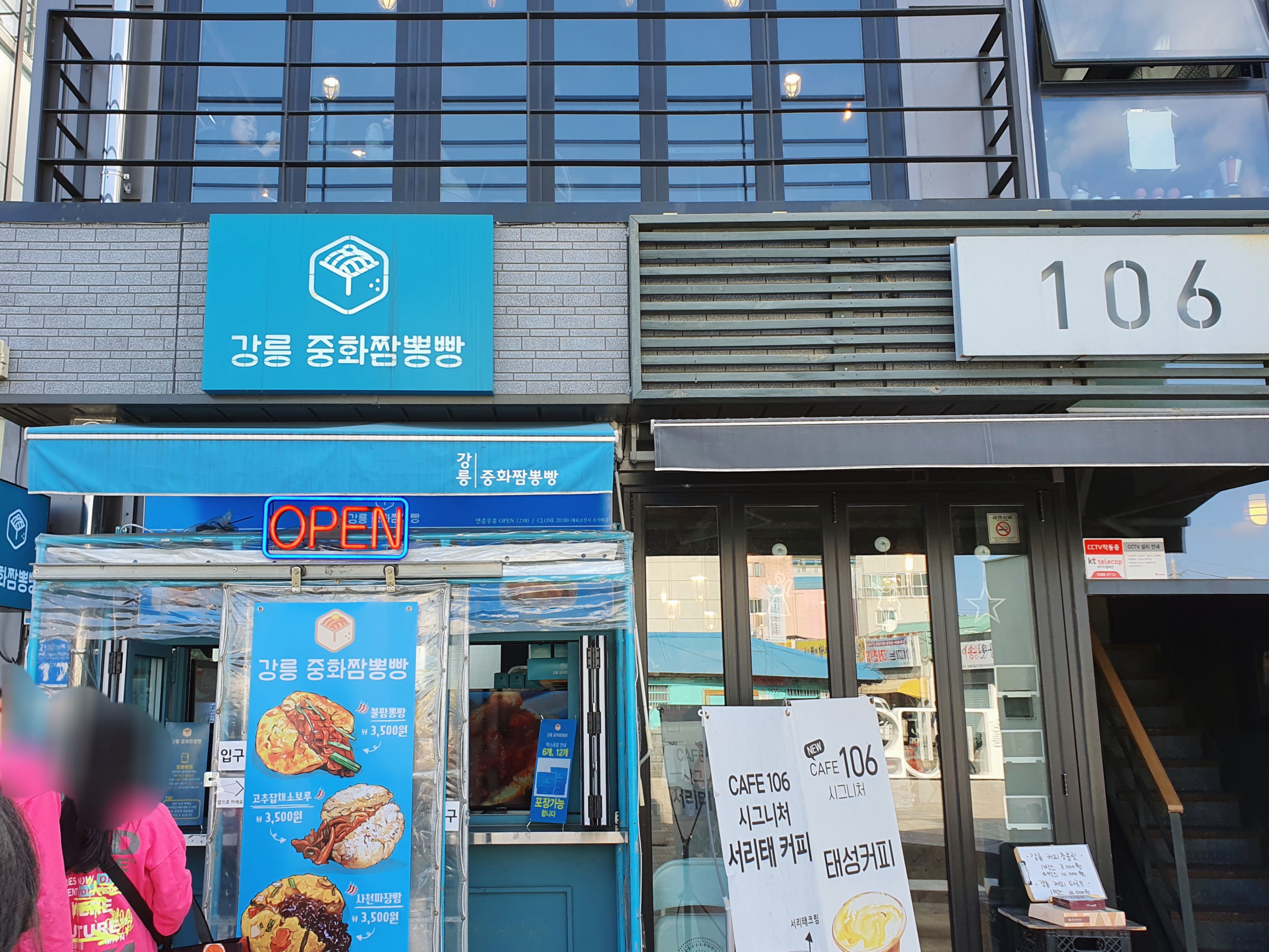 강릉중화짬뽕빵집입니다! 바로 옆집은 CAFE106으로 서리태커피를 팔고 있어요. 빵과 커피를 나란히 사서 먹으면 좋아요. 빵이 중화요리 베이스라 맛이 자극적인데, 서리태커피가 그 맛을 눌러주거든요.