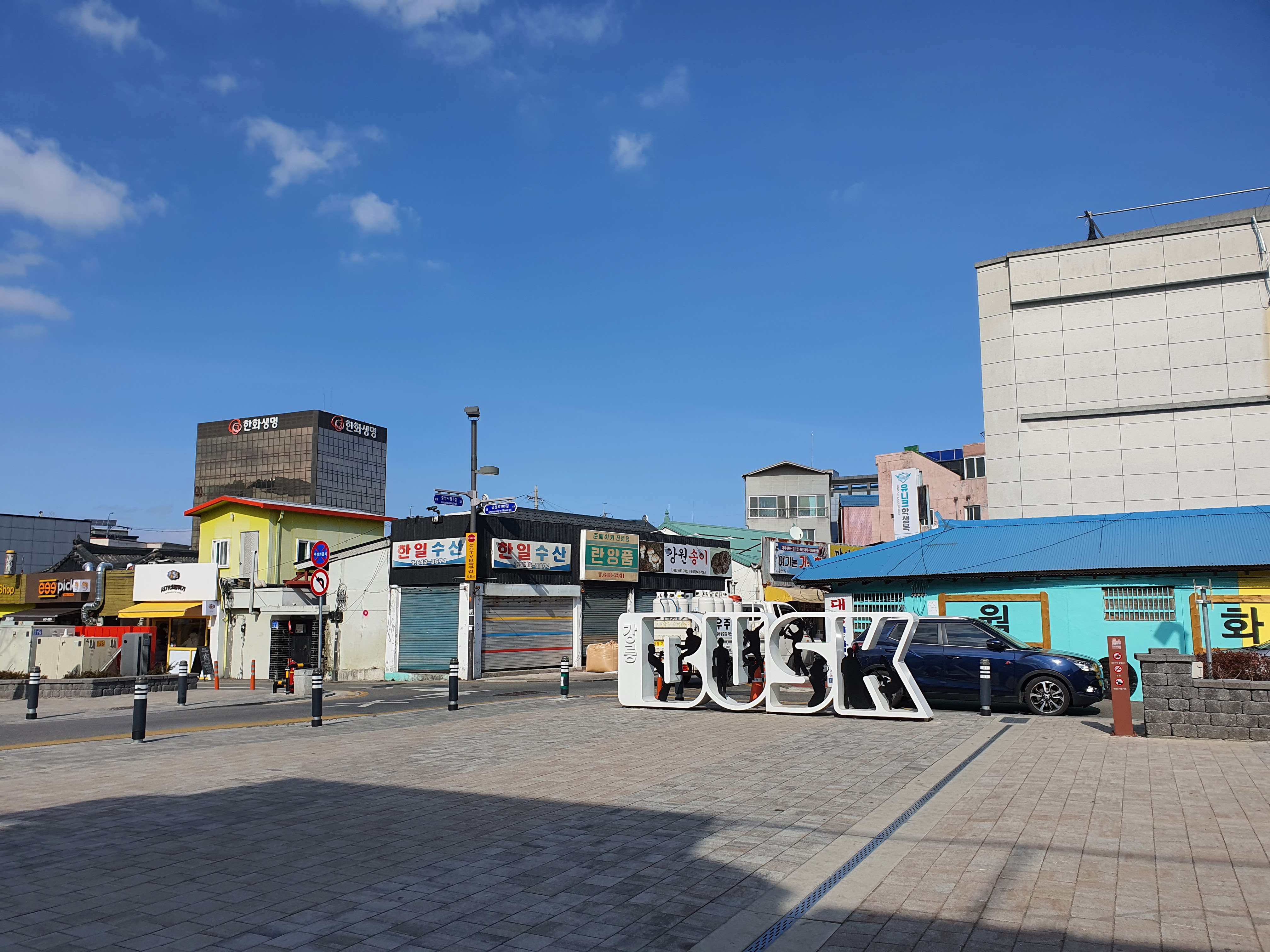 마지막으로 강릉중앙시장에 들렀습니다! 맛있는 먹거리가 가득한 강릉중앙시장을 빼놓을 순 없겠지요! 도착하고 보니 시간은 2시를 가리키고 있었습니다. 중앙시장 공용주차장에 차를 주차하고, 바로 목적지로 향했습니다. 그 목적지는 바로...!