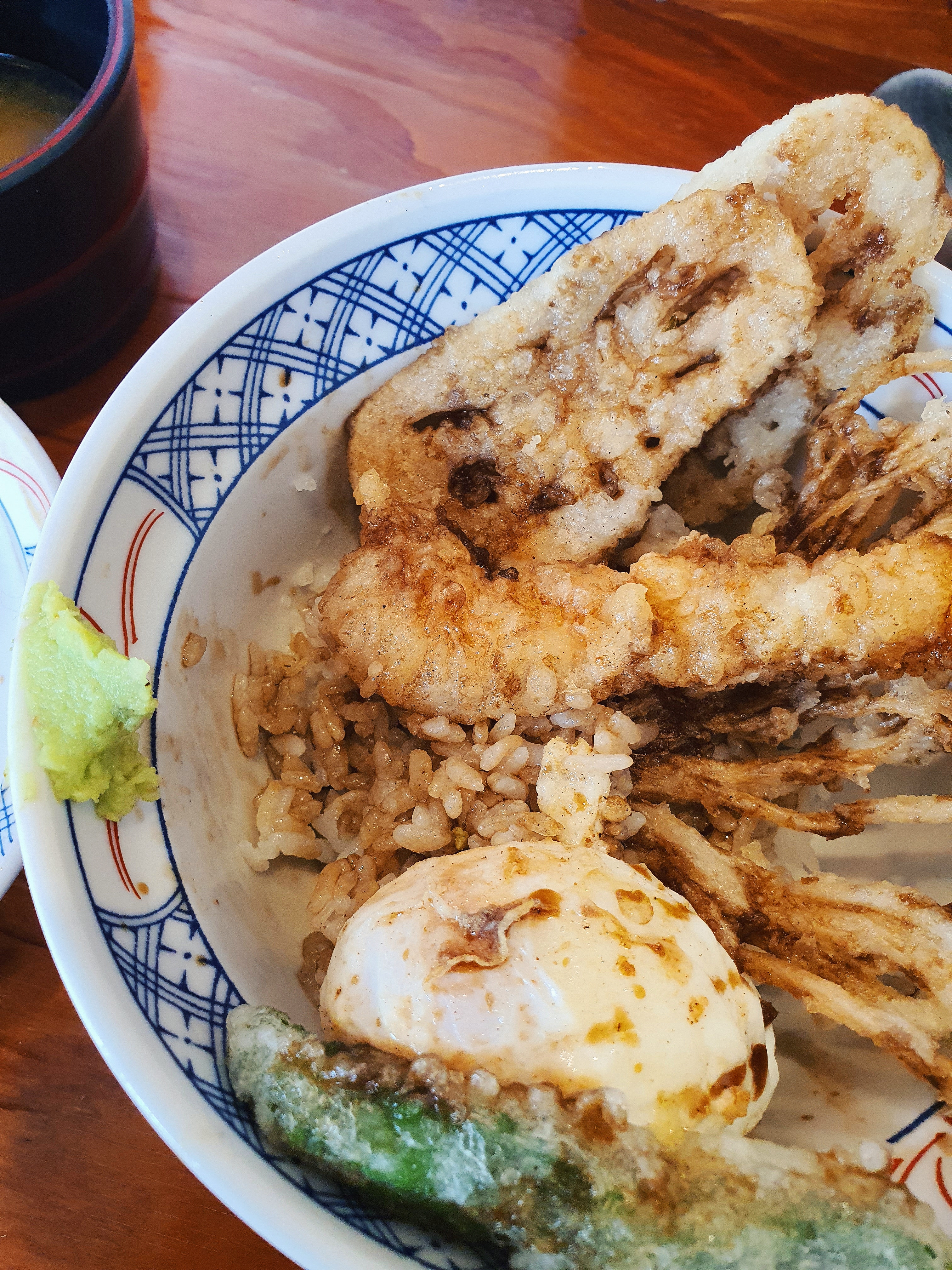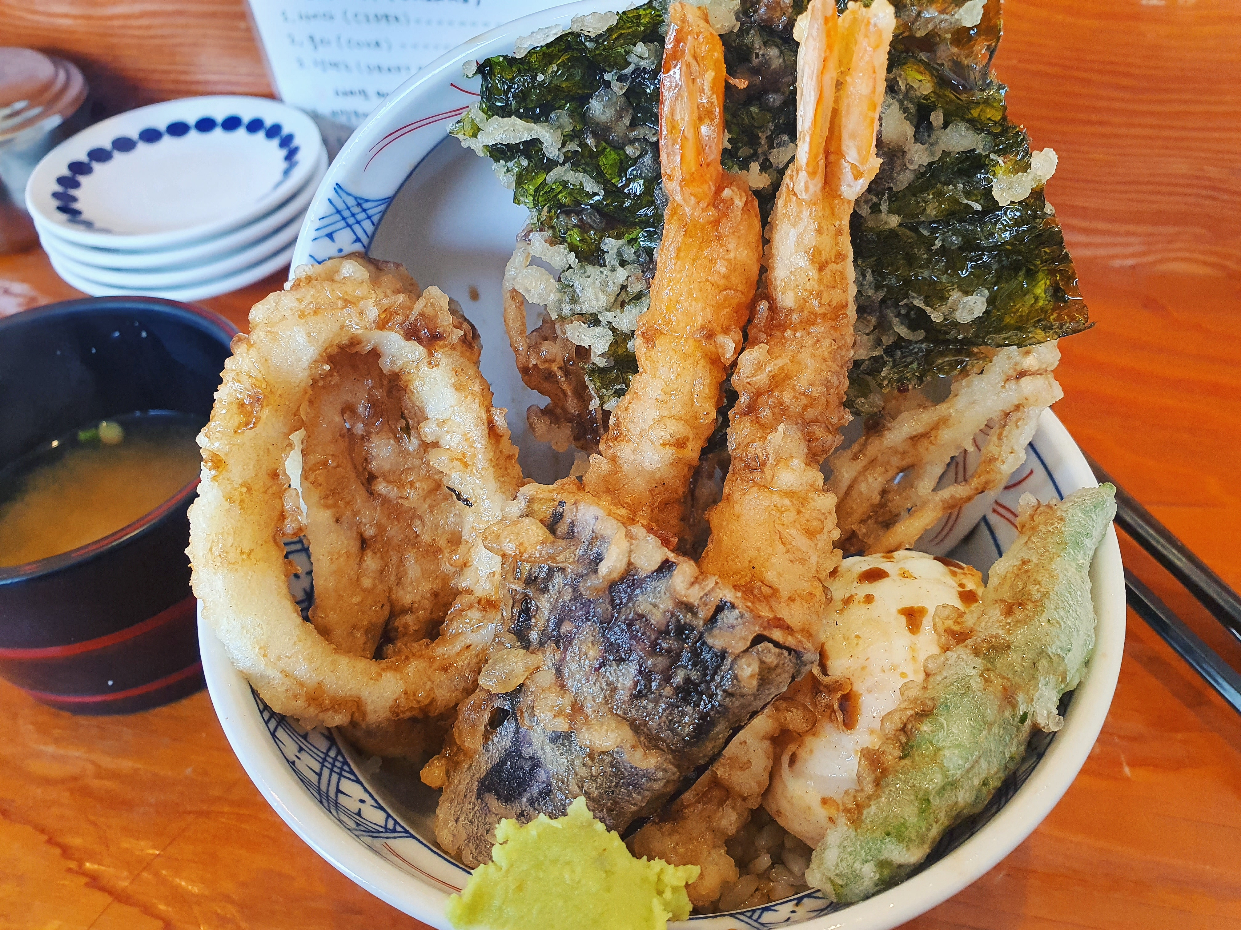 텐동을 자주, 그리고 즐겨먹은 음식이 아니라 비교는 하기 어렵지만 제 입맛에는 정말 맛있었습니다. 소스가 튀김하고 아주 잘 어울렸고, 와사비와 함께 먹어도 좋았습니다.