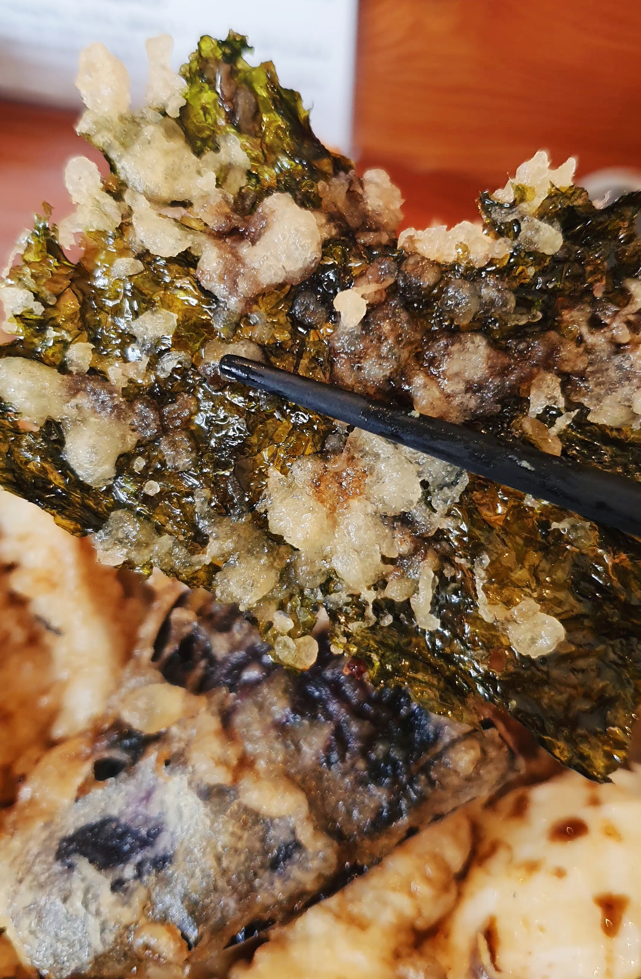 튀긴 김은 금방 눅눅해지기 때문에 제일 먼저 먹었는데, 바삭해서 식감도 좋고 아주 맛있었어요.